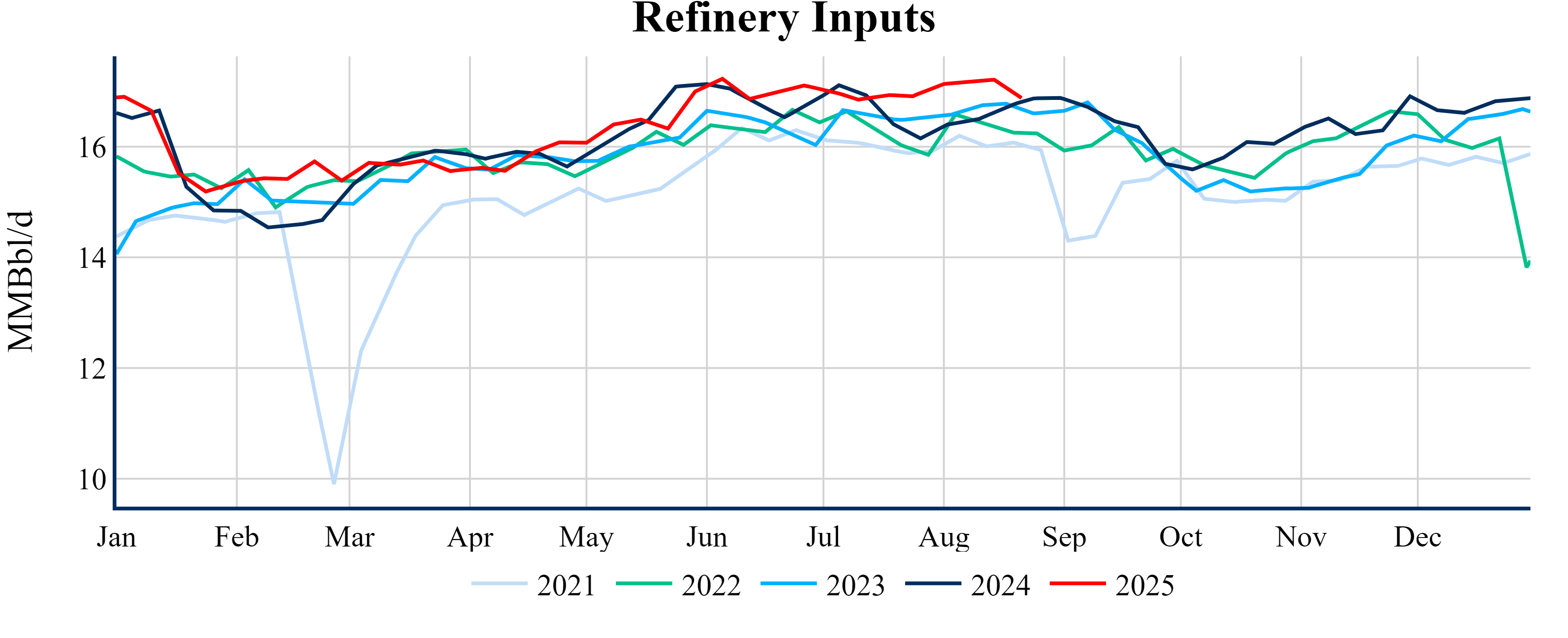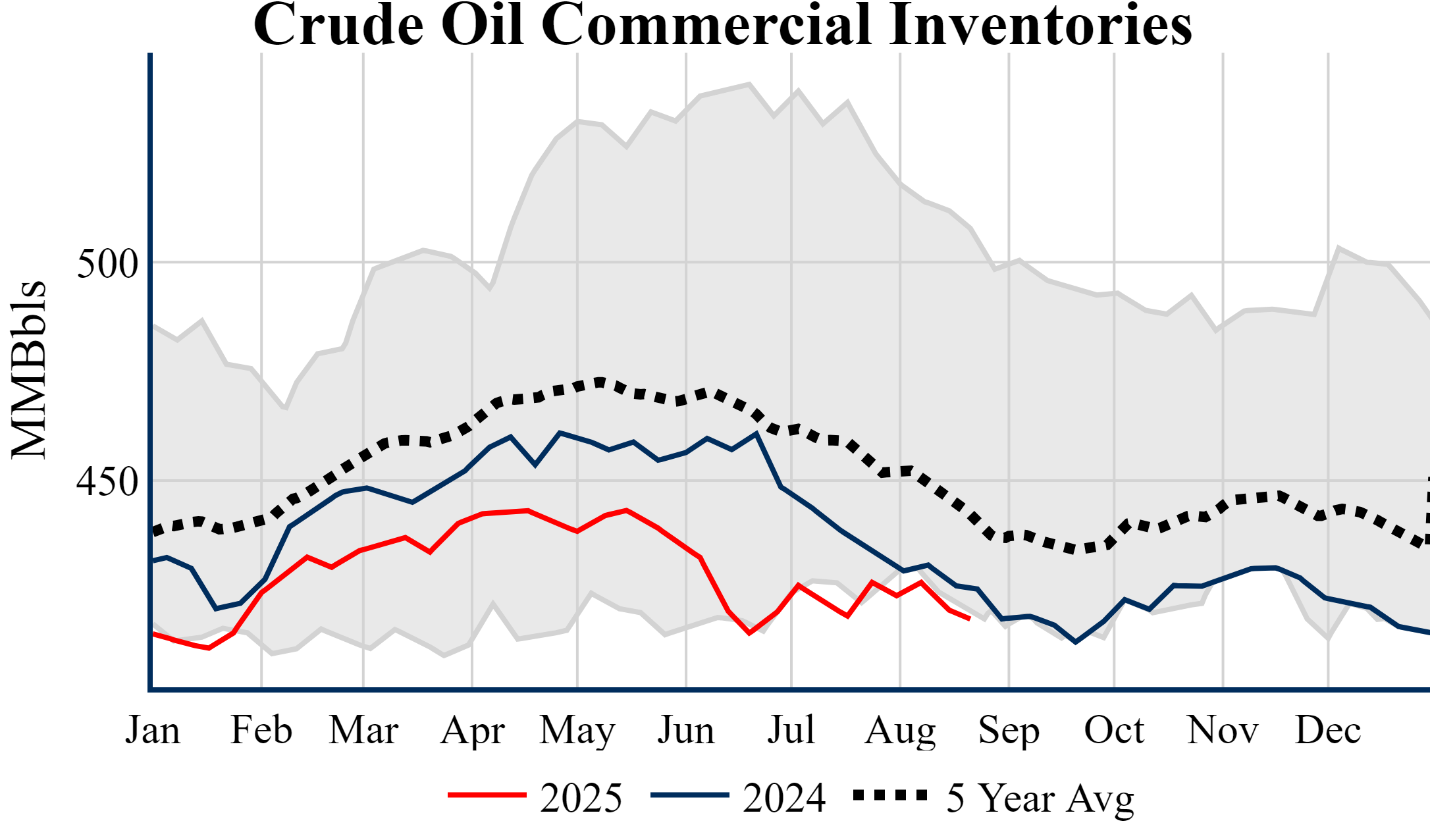 Inventories for the U.S. are now at a deficit of 7.10 MMBbls (-1.7%) to last year, and a deficit of 24.00 MMBbls (-5.4%) to the five-year average.
