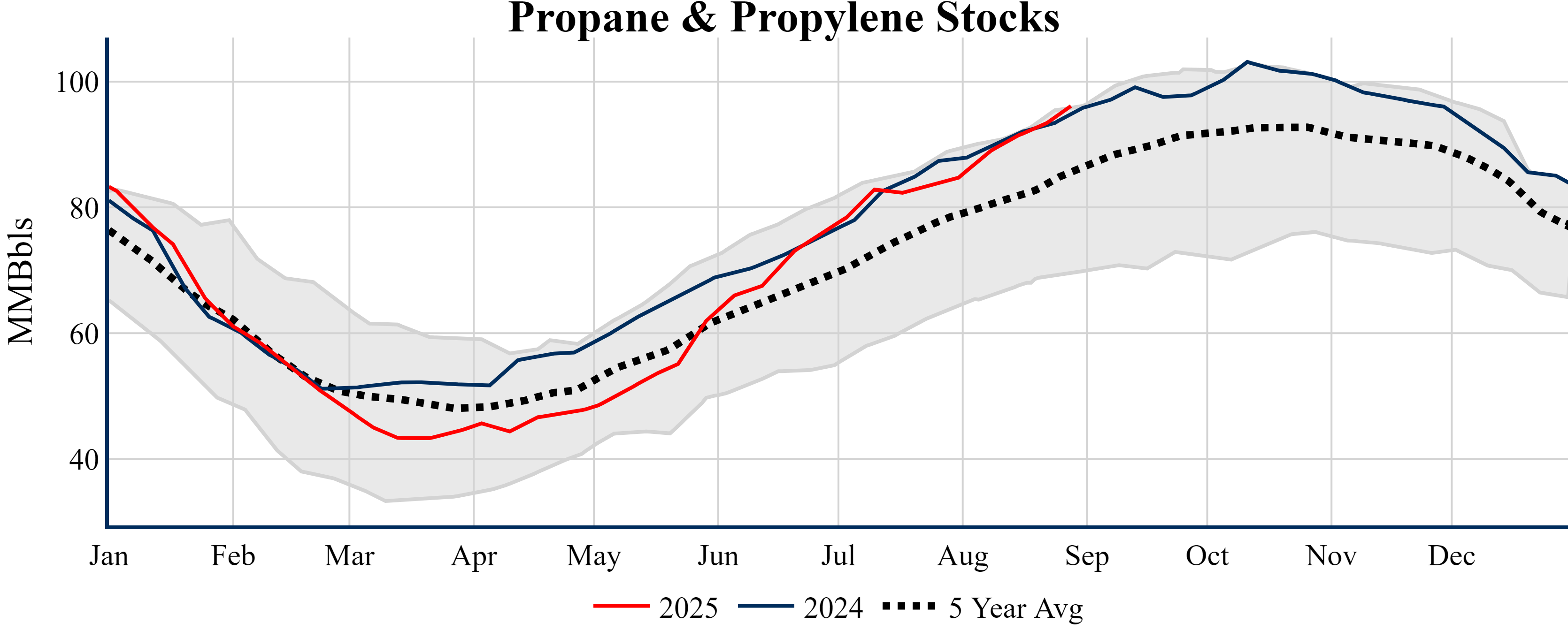 Inventories for the U.S. are now at a deficit of 0.40 MMBbls (-0.1%) to last year, and a deficit of 16.30 MMBbls (-3.7%) to the five-year average.