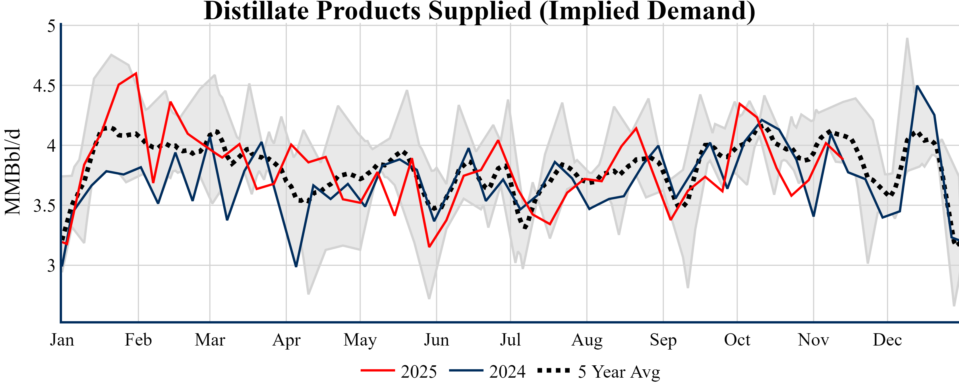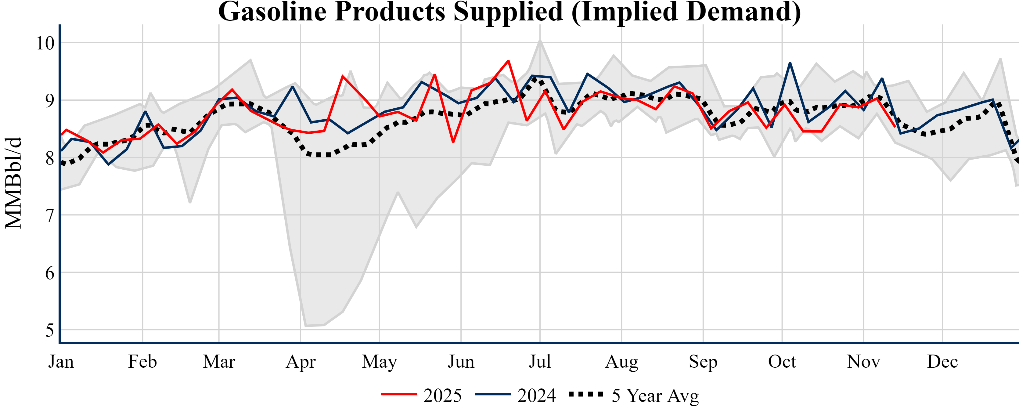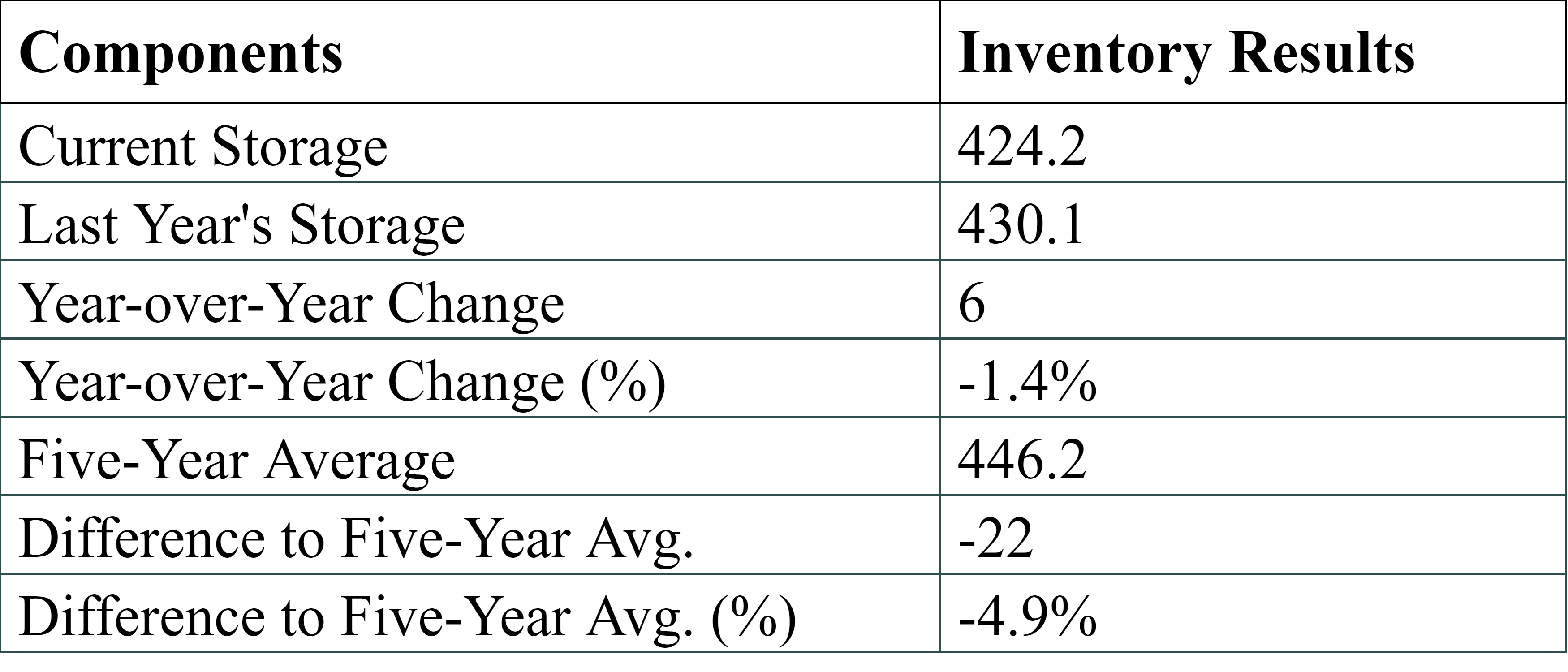 Inventories for the U.S. are now at a deficit of 6.00 MMBbls (-1.4%) to last year, and a deficit of 22.00 MMBbls (-4.9%) to the five-year average.