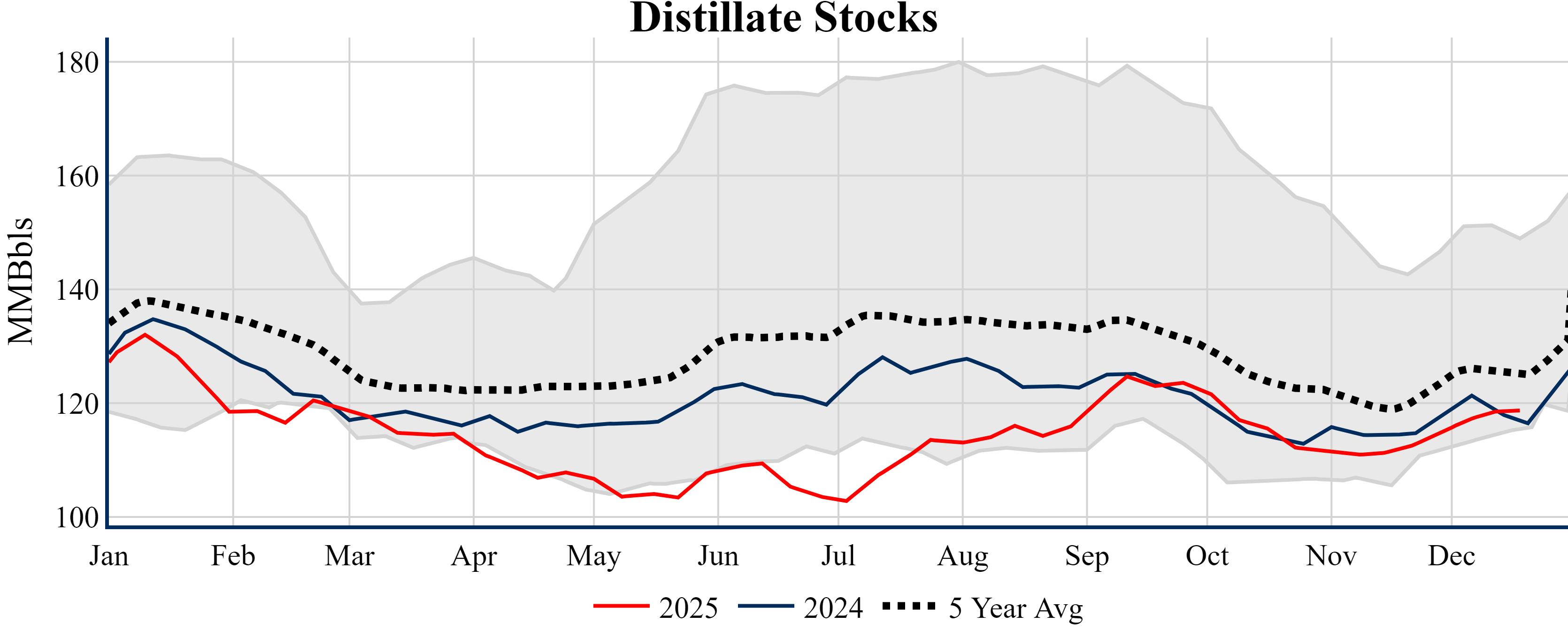The EIA reported a build of 405 MBbls in U.S. crude-oil inventories. In contrast, the market expected a draw of -3,282 MBbls as reported by Bloomberg. Inventories for the U.S. are now at a surplus of 6.80 MMBbls (1.6%) to last year, and a deficit of 14.80 MMBbls (-3.4%) to the five-year average.