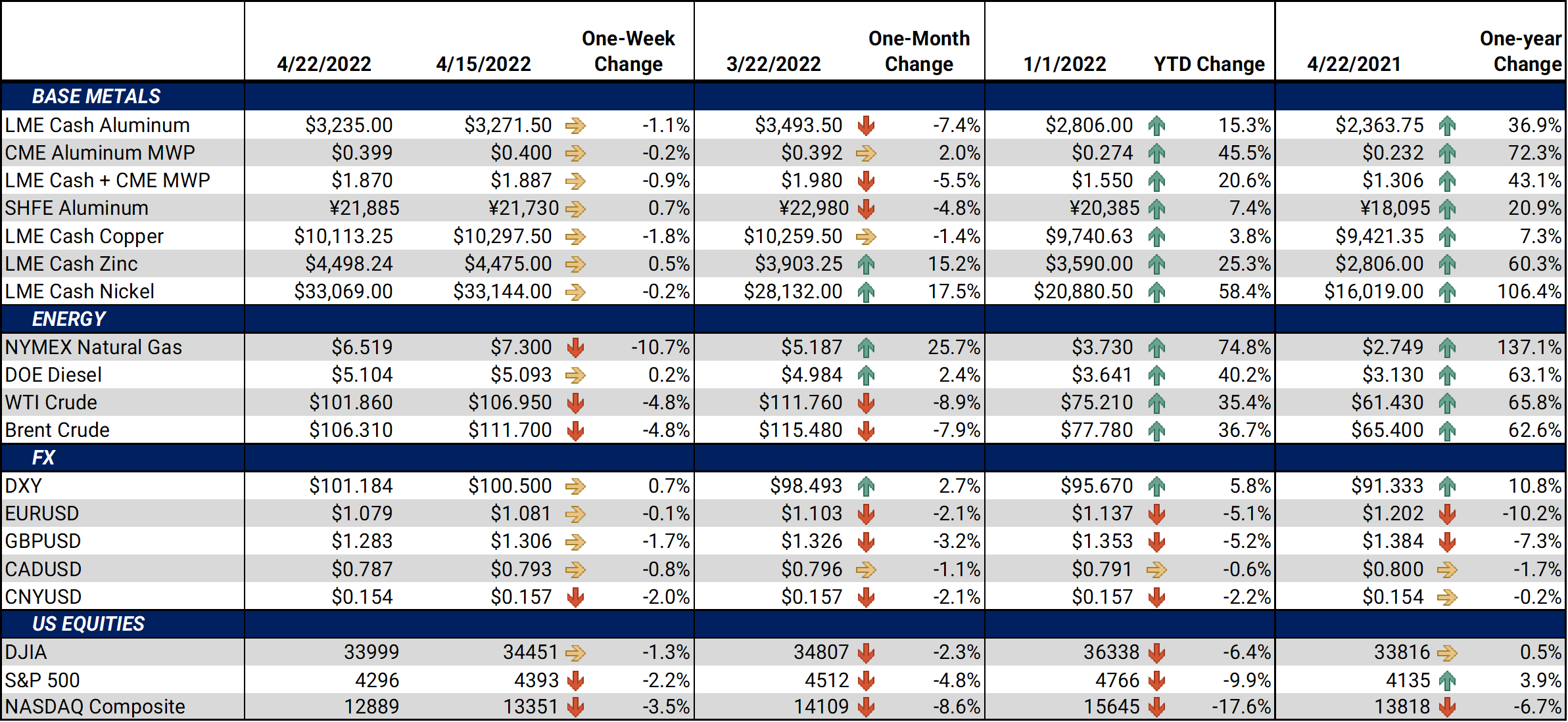04/20/2022: AEGIS Factor Matrices: Most important variables affecting metals prices 04/21/2022: Russian Metals Production and Related News: Most Recent Developments (AEGIS Reference) |