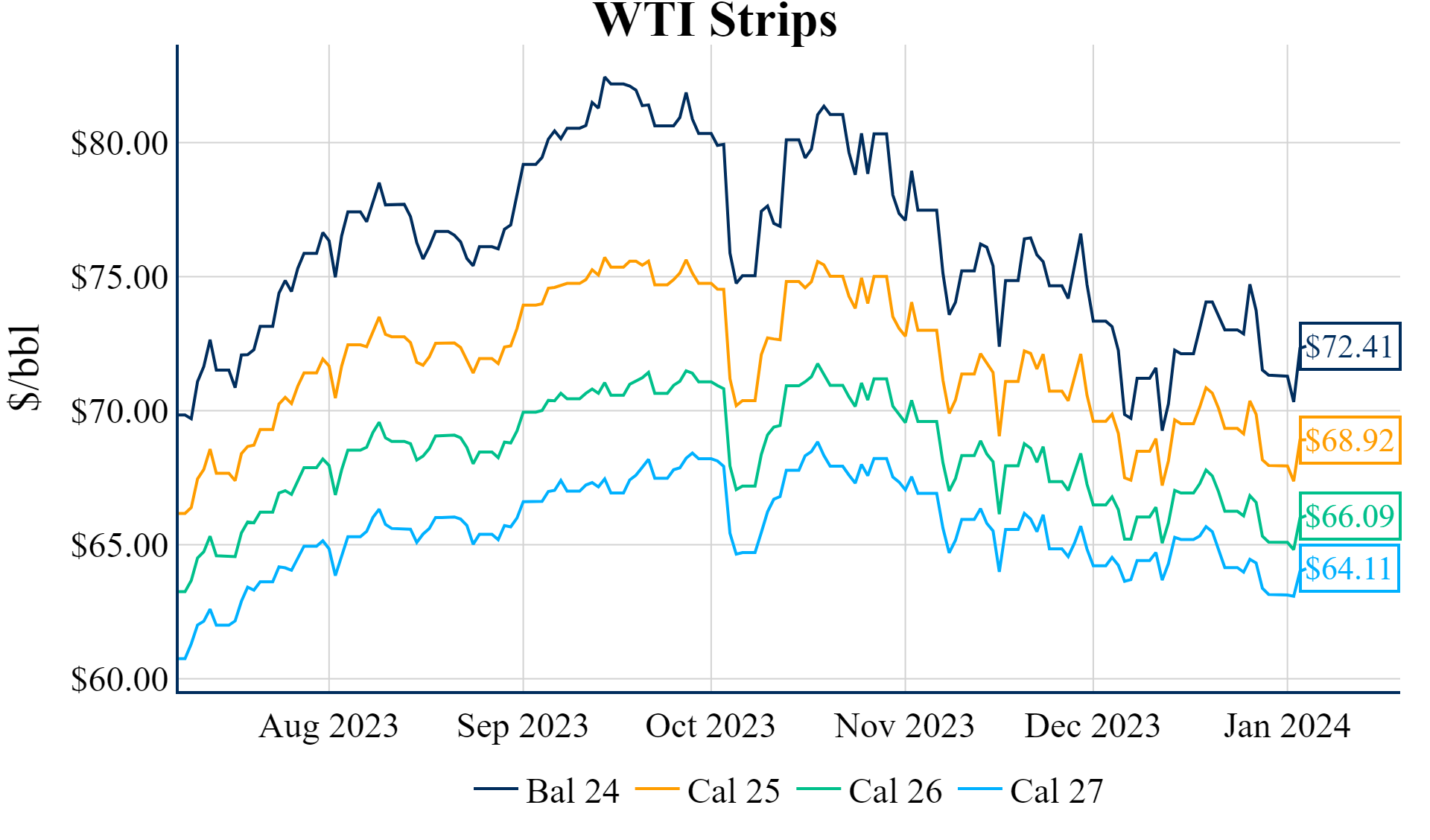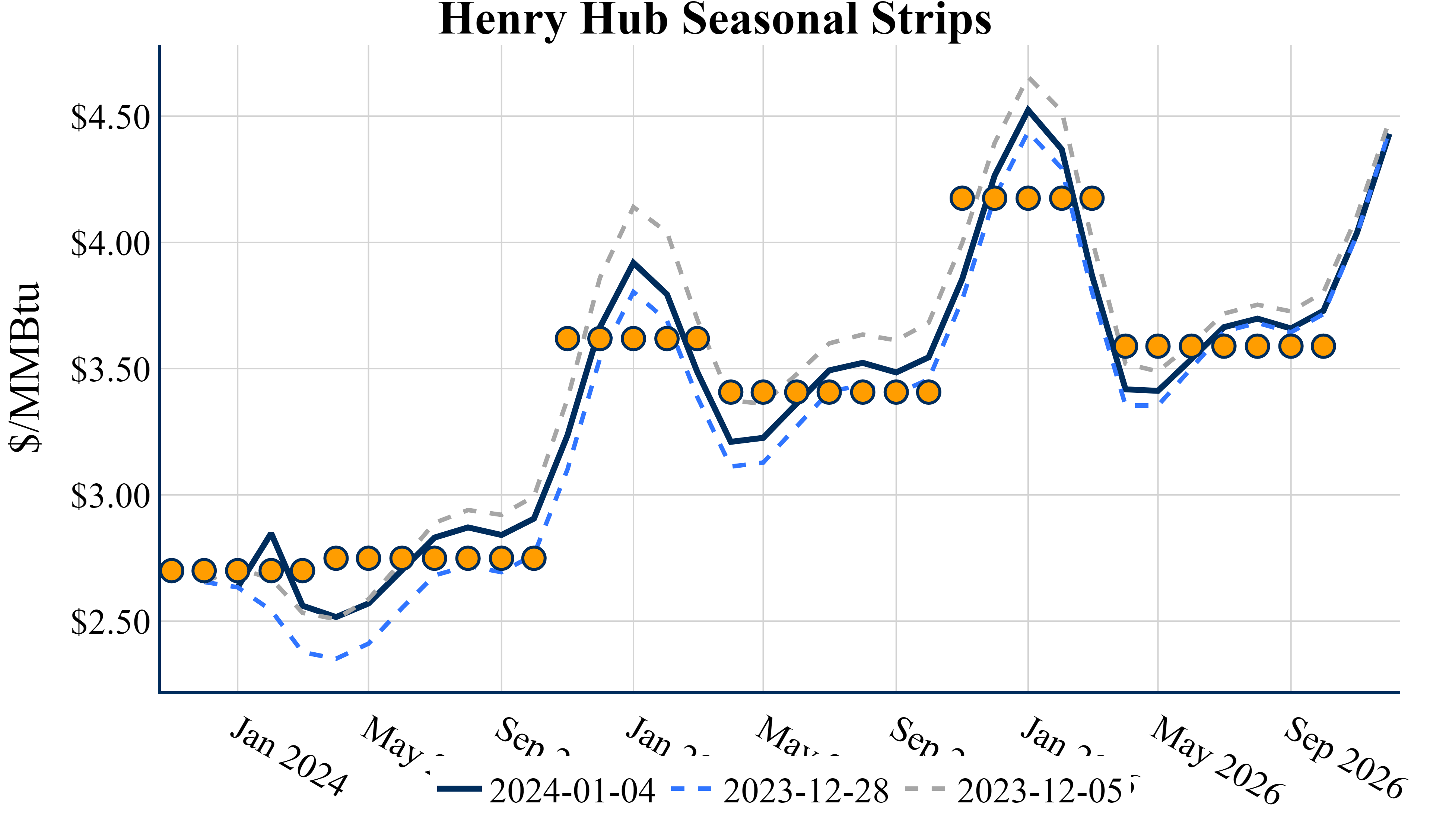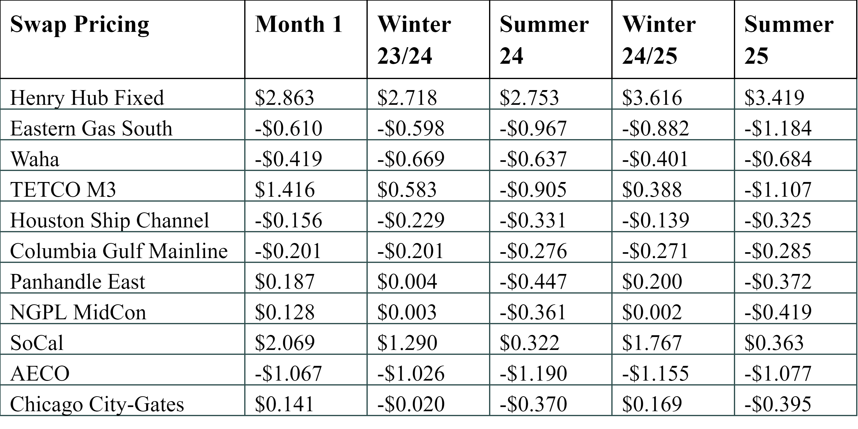 The Winter ‘23/’24 strip is up 13.1c to $2.703, and the Summer ’24 strip is up 7.1c to $2.750
