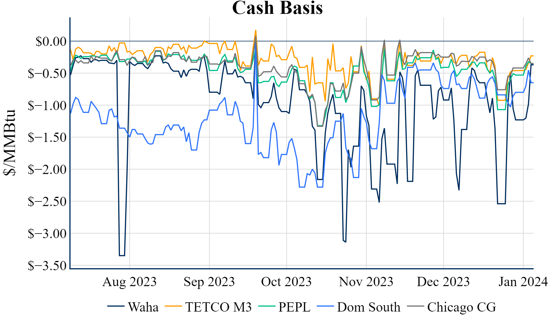 Natural gas prices at East Texas' Carthage hub were over 60% lower in 2023 than in 2022