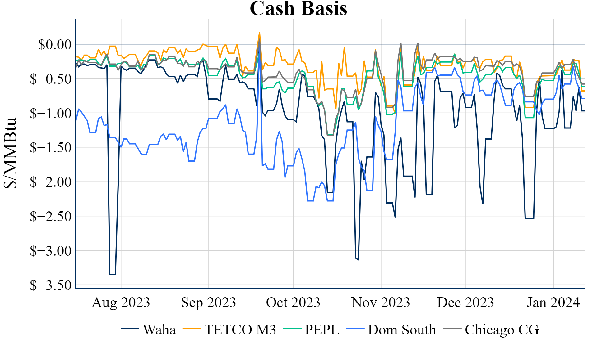 Rockies saw a notable reduction from 11.45 Bcf/d in early January to 10.46 Bcf/d currently, with further declines expected next week due to freeze-offs
