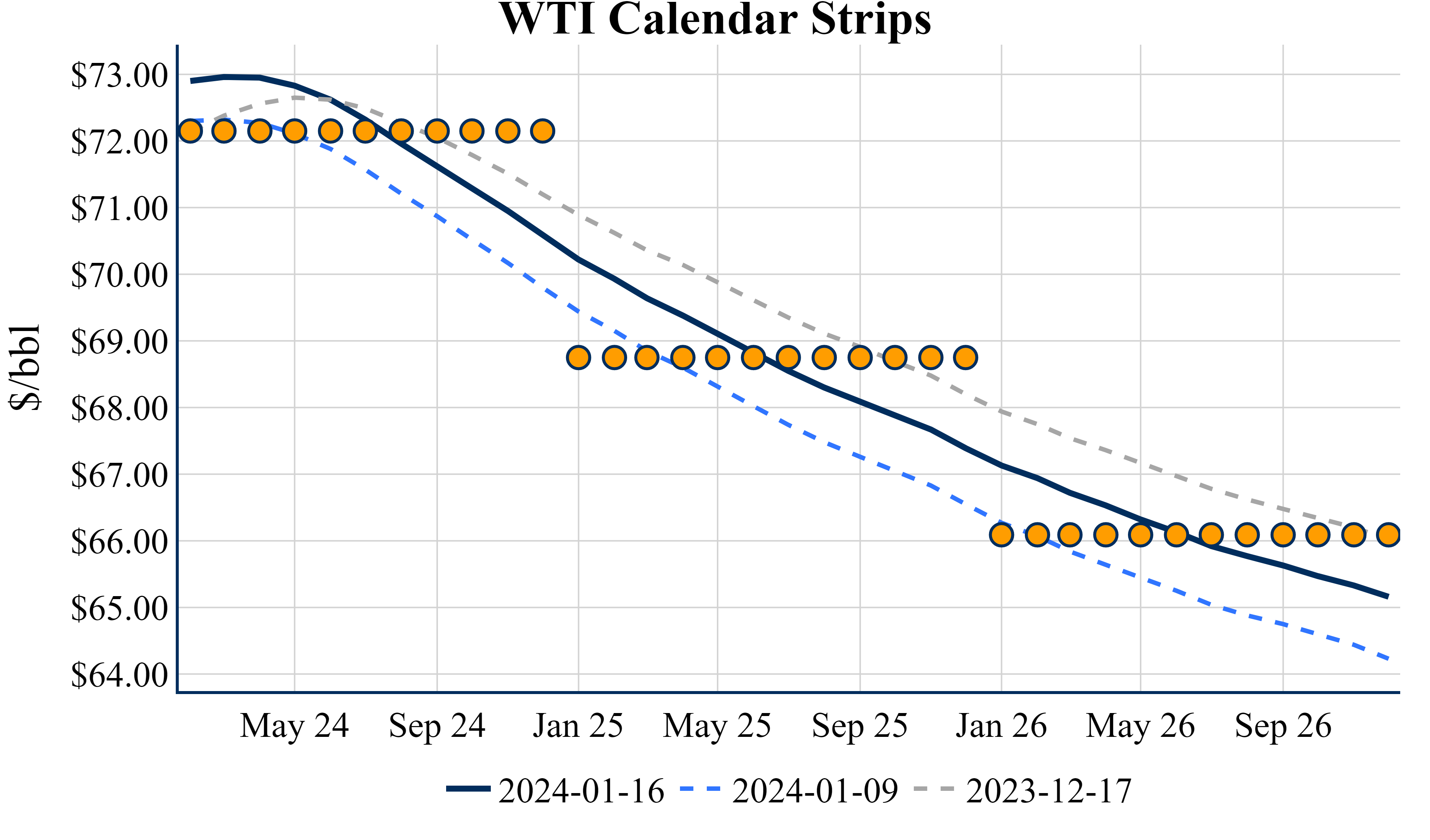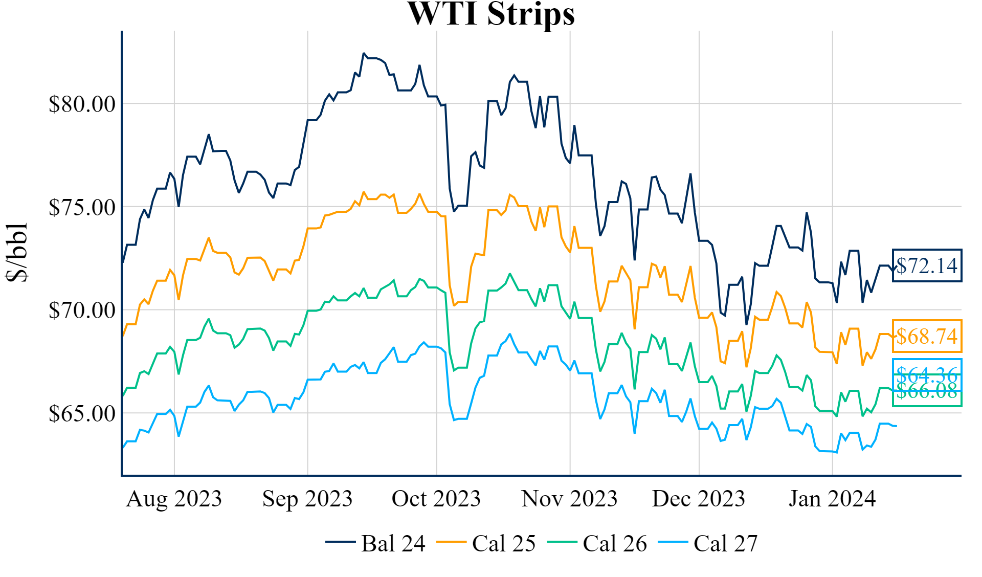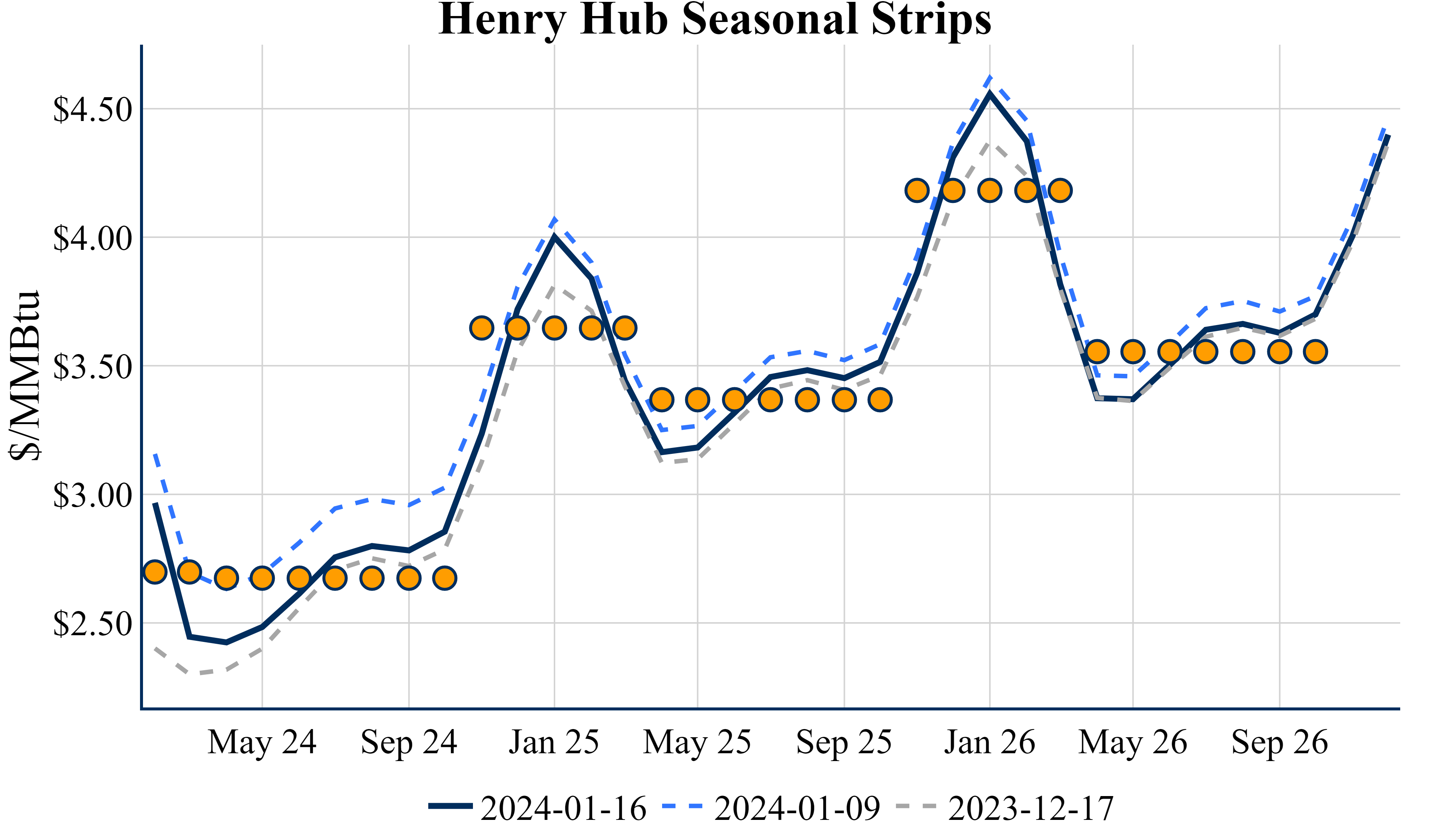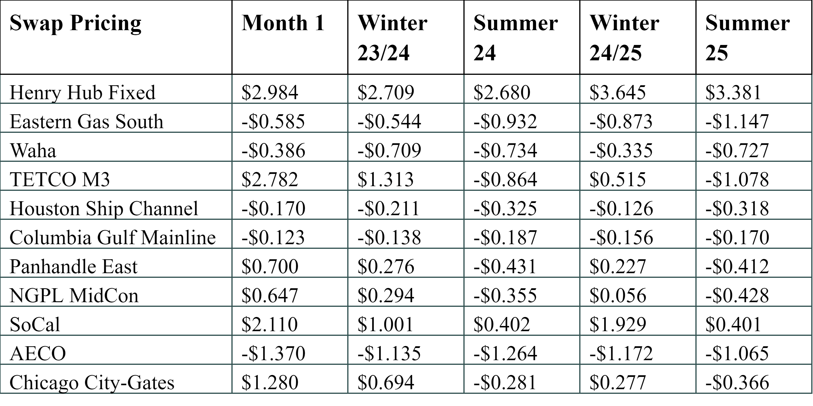 The Winter ‘23/’24 strip is down 10.6c to $2.747, and the Summer ’24 strip is down 5.3c to $2.679