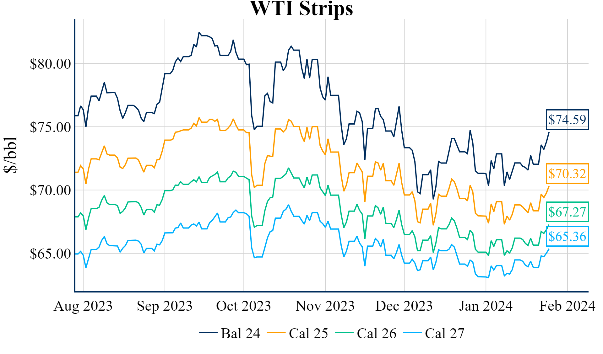 The Winter ‘23/’24 strip is up 4.6c to $2.522, and the Summer ’24 strip is down 0.7c to $2.595