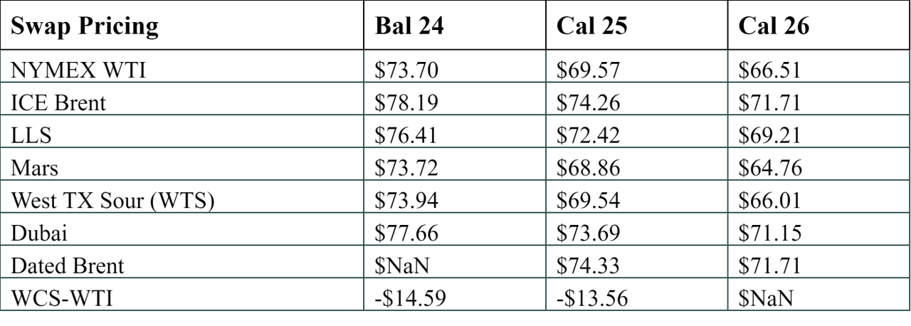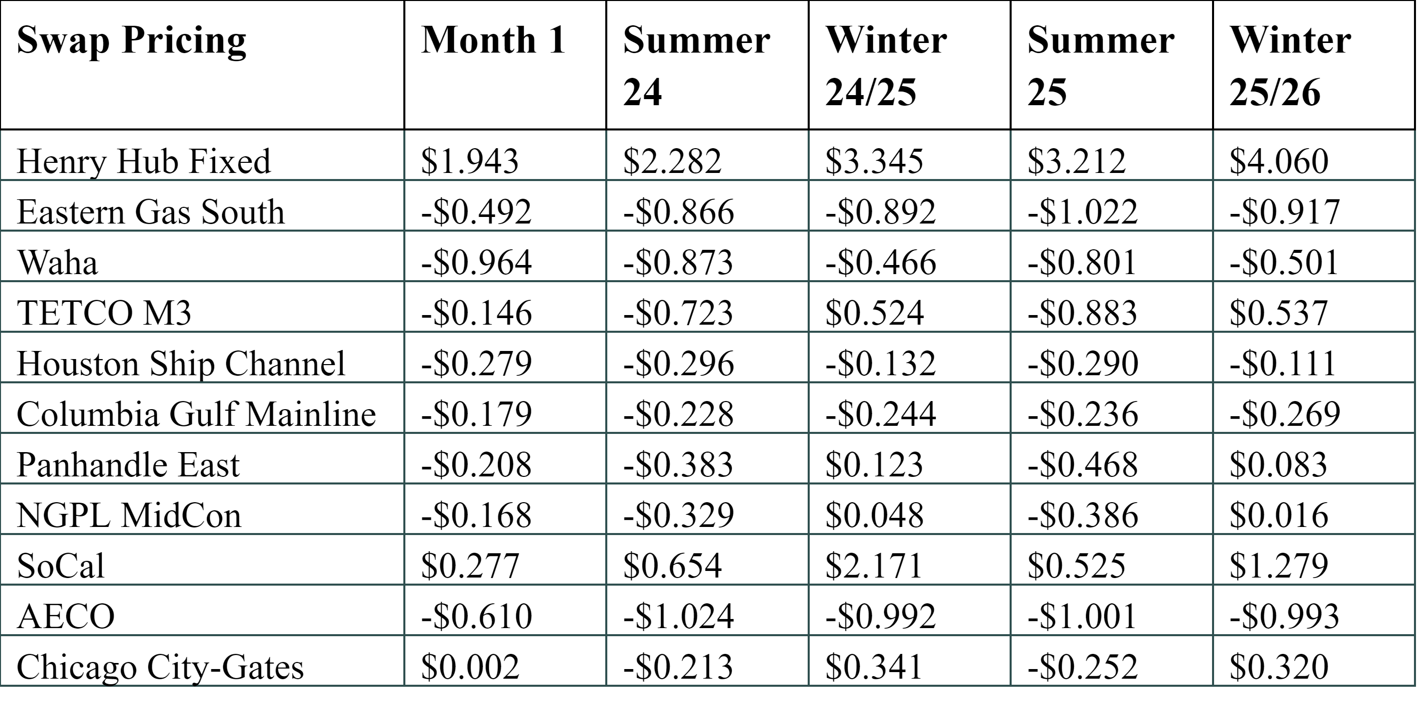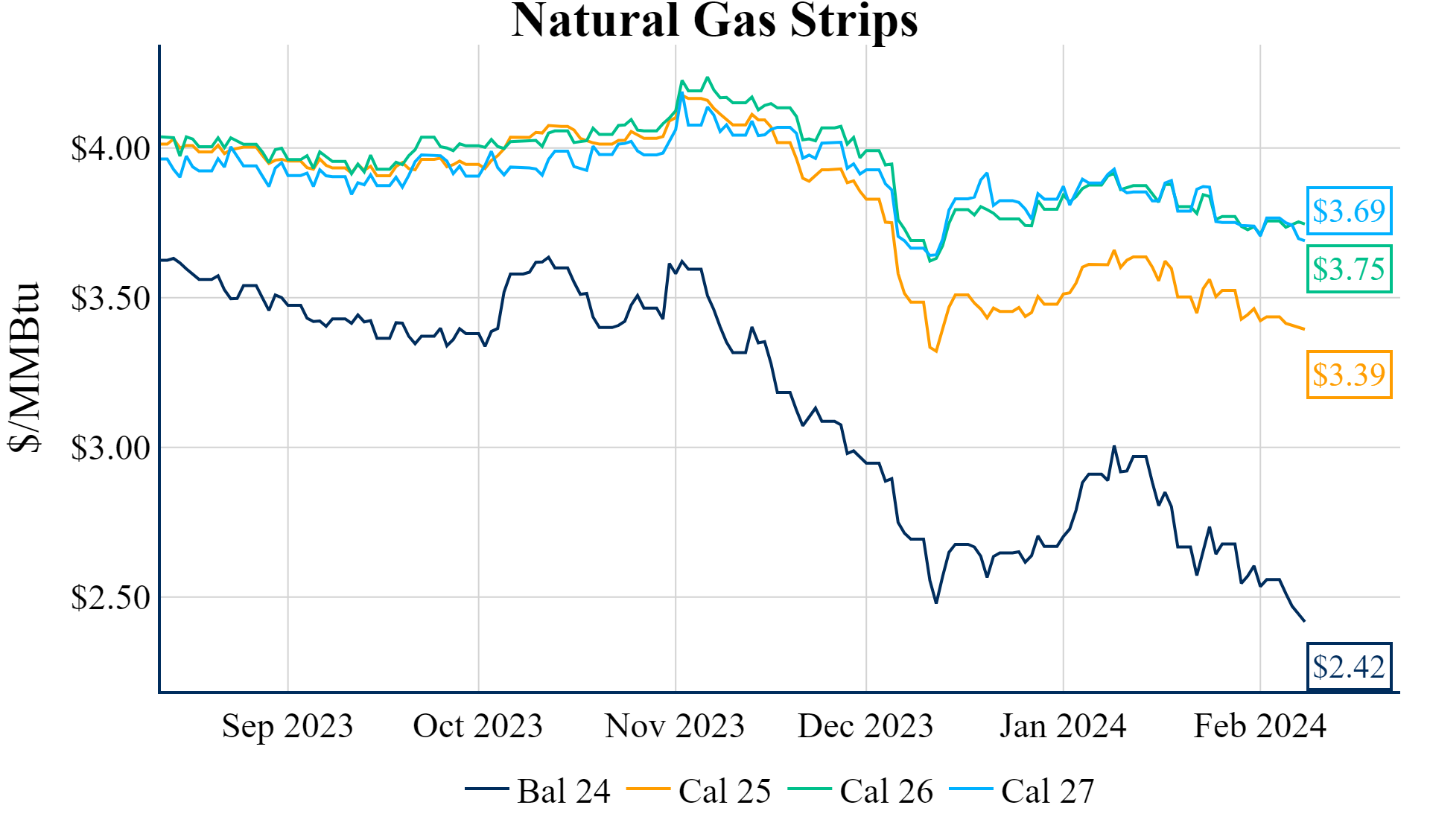 The Summer ’24 strip is down 1.9c to $2.281, and the Winter ‘24/’25 strip is down 0.9c to $3.345