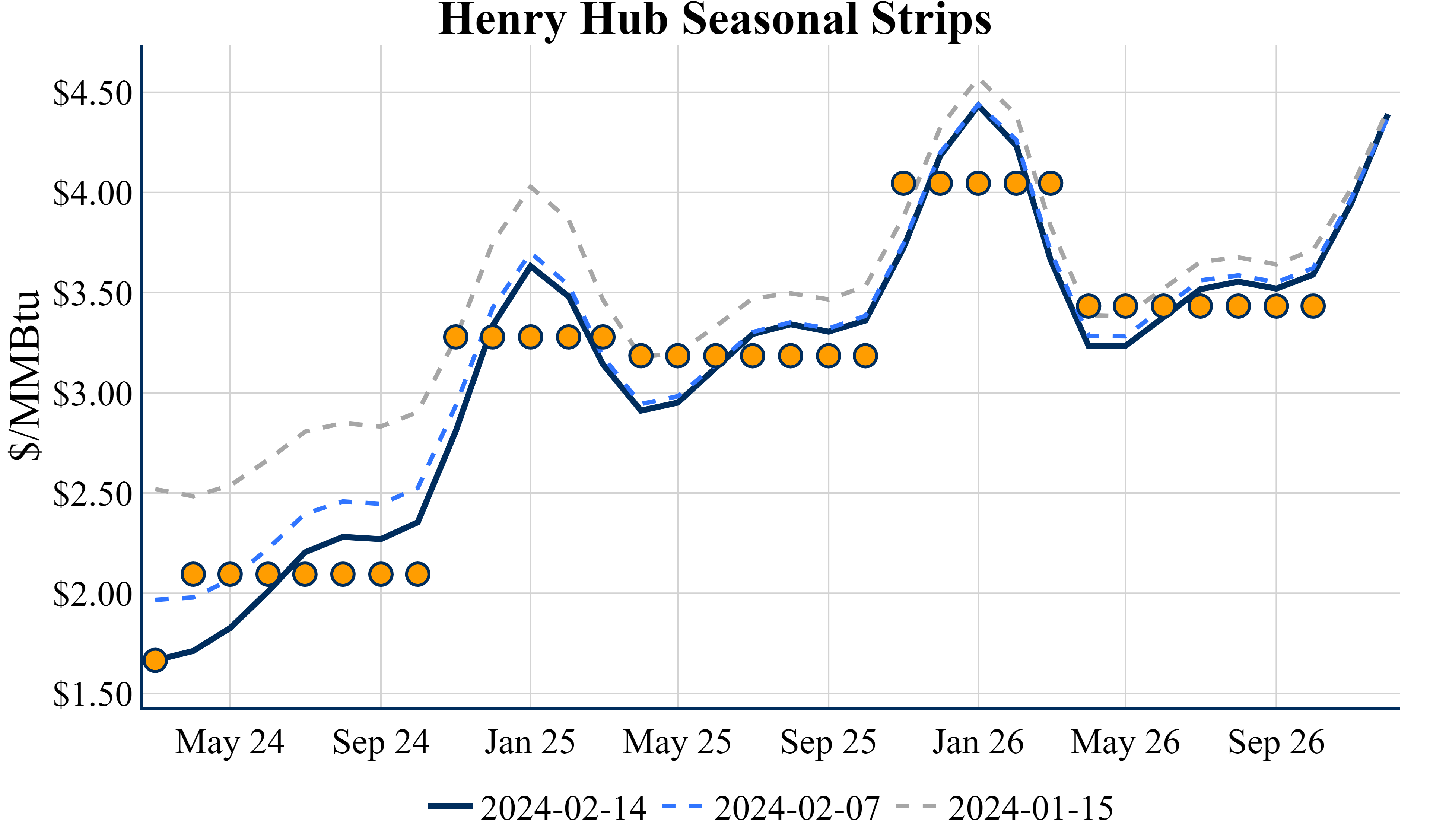 The Summer ’24 strip is down 3.2c to $2.092, and the Winter ‘24/’25 strip is down 5.3c to $3.274