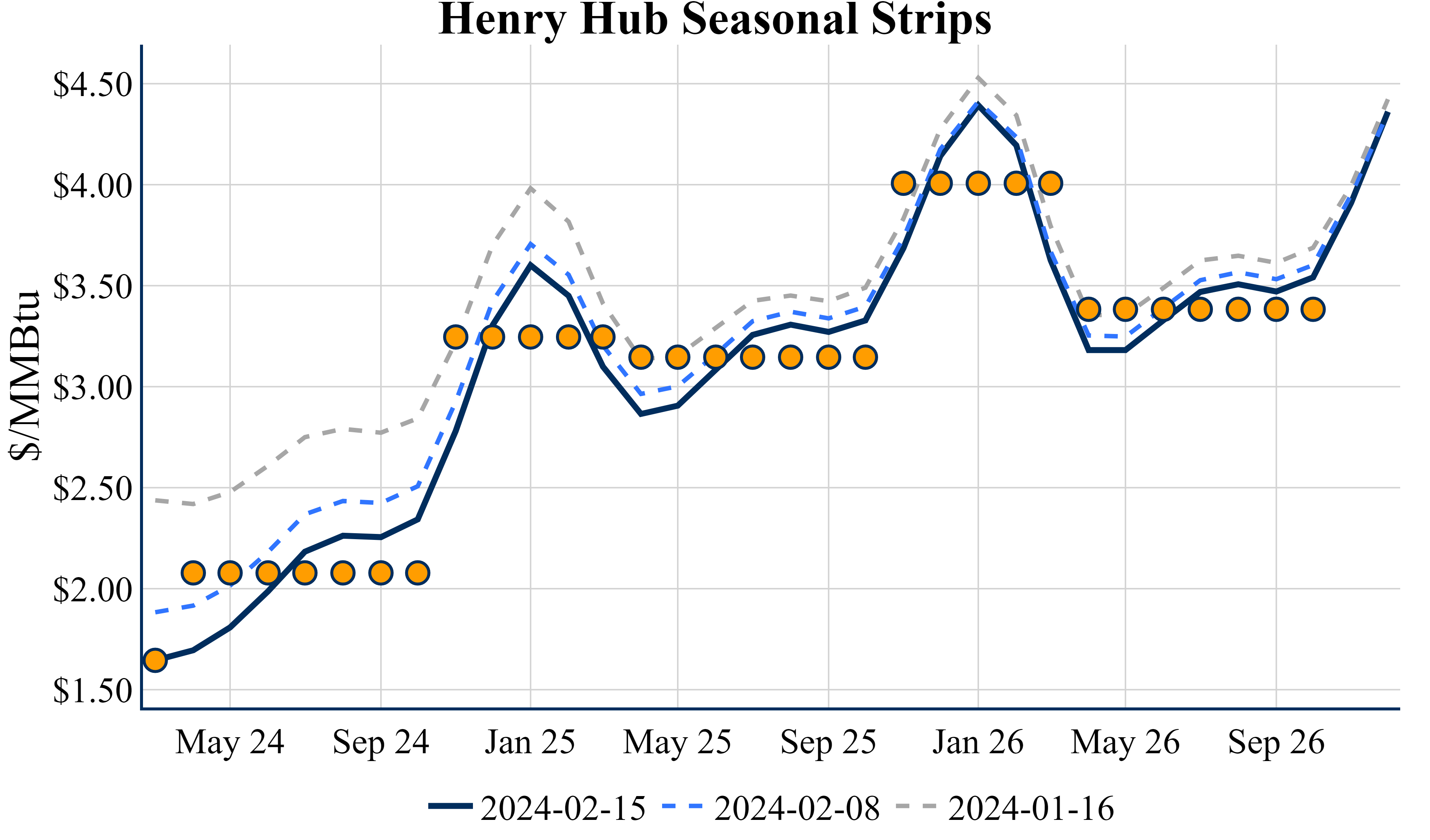The Summer ’24 strip is up 2.7c to $2.077, and the Winter ‘24/’25 strip is up 2.5c to $3.247