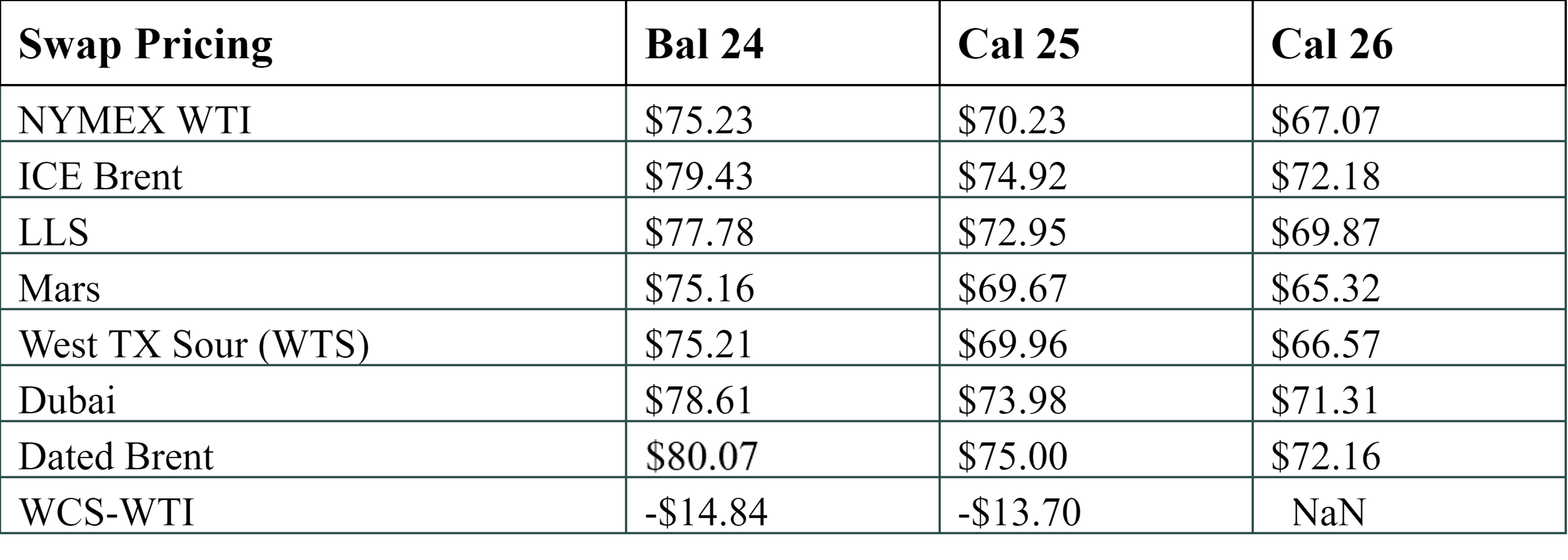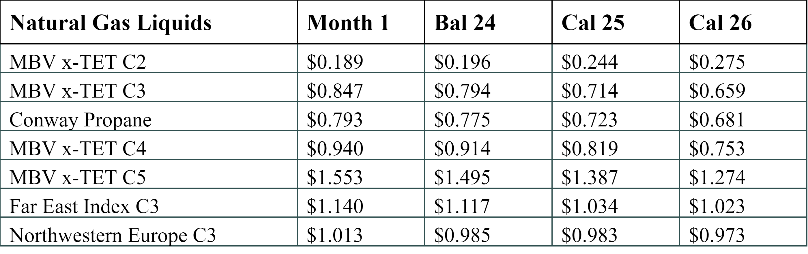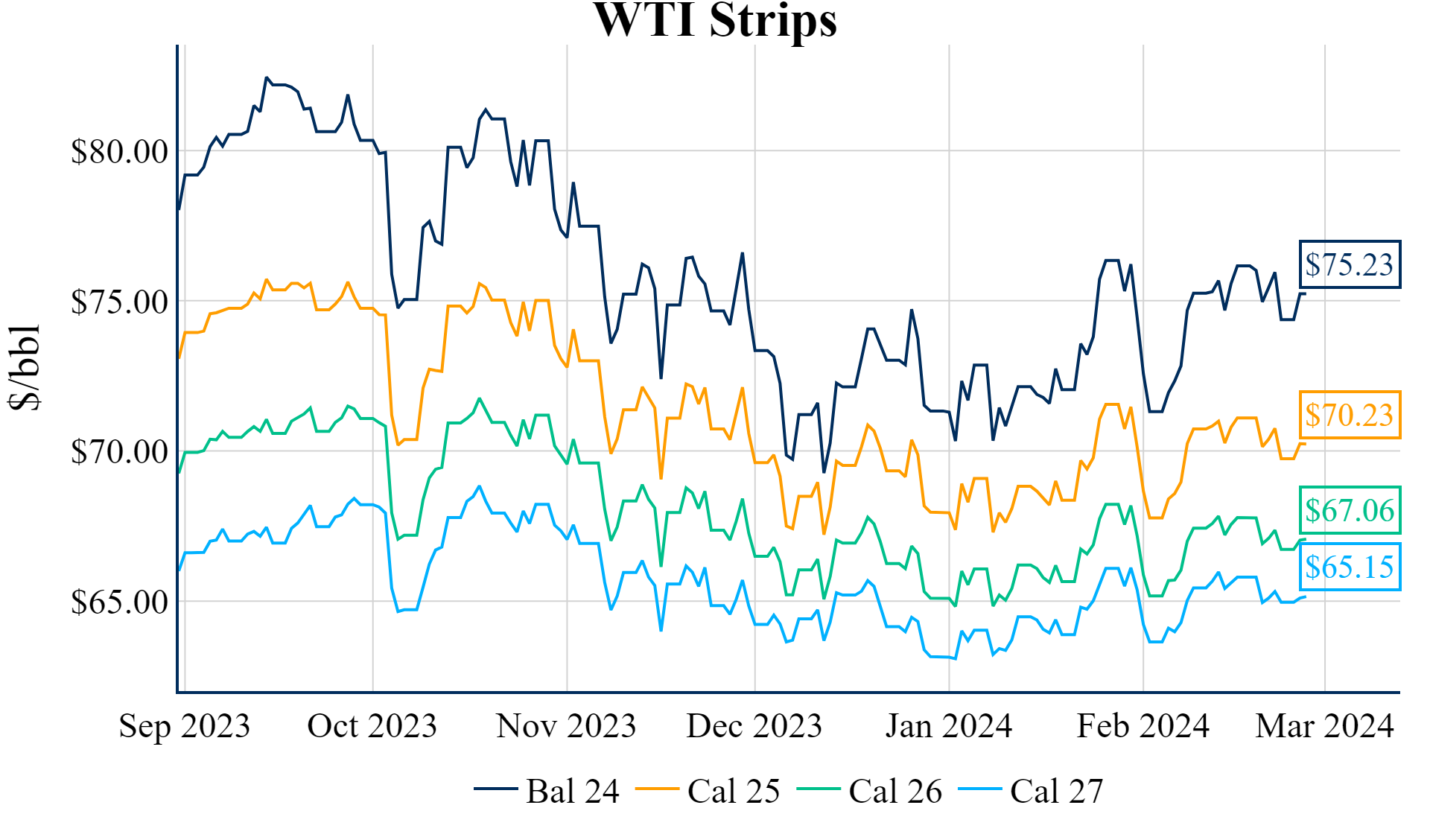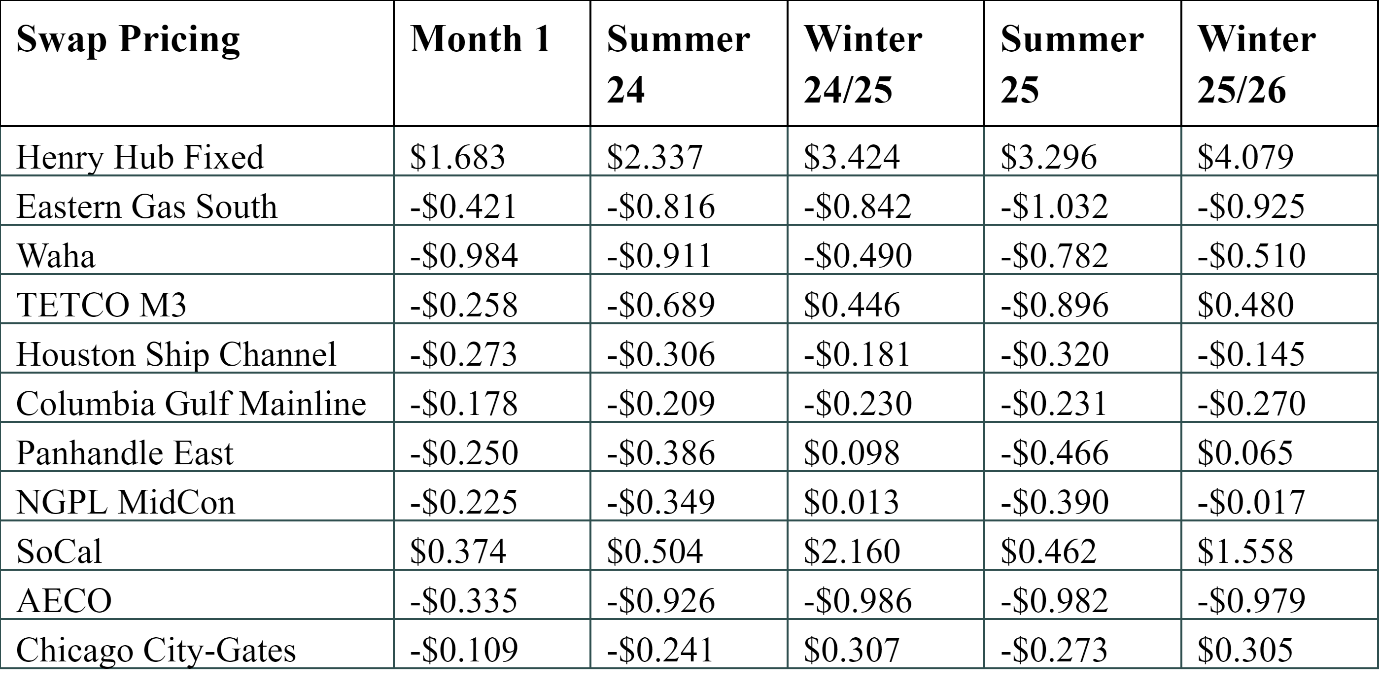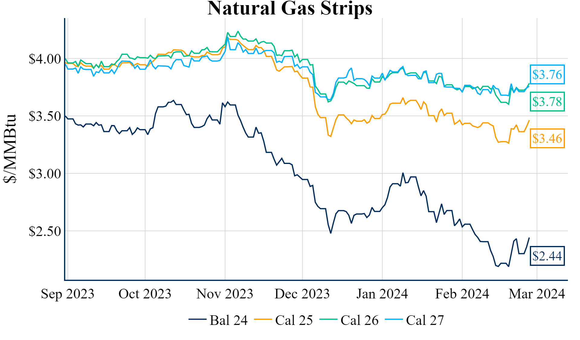 The Summer ’24 strip is up 6.8c to $2.308, and the Winter ‘24/’25 strip is up 5.6c to $3.406