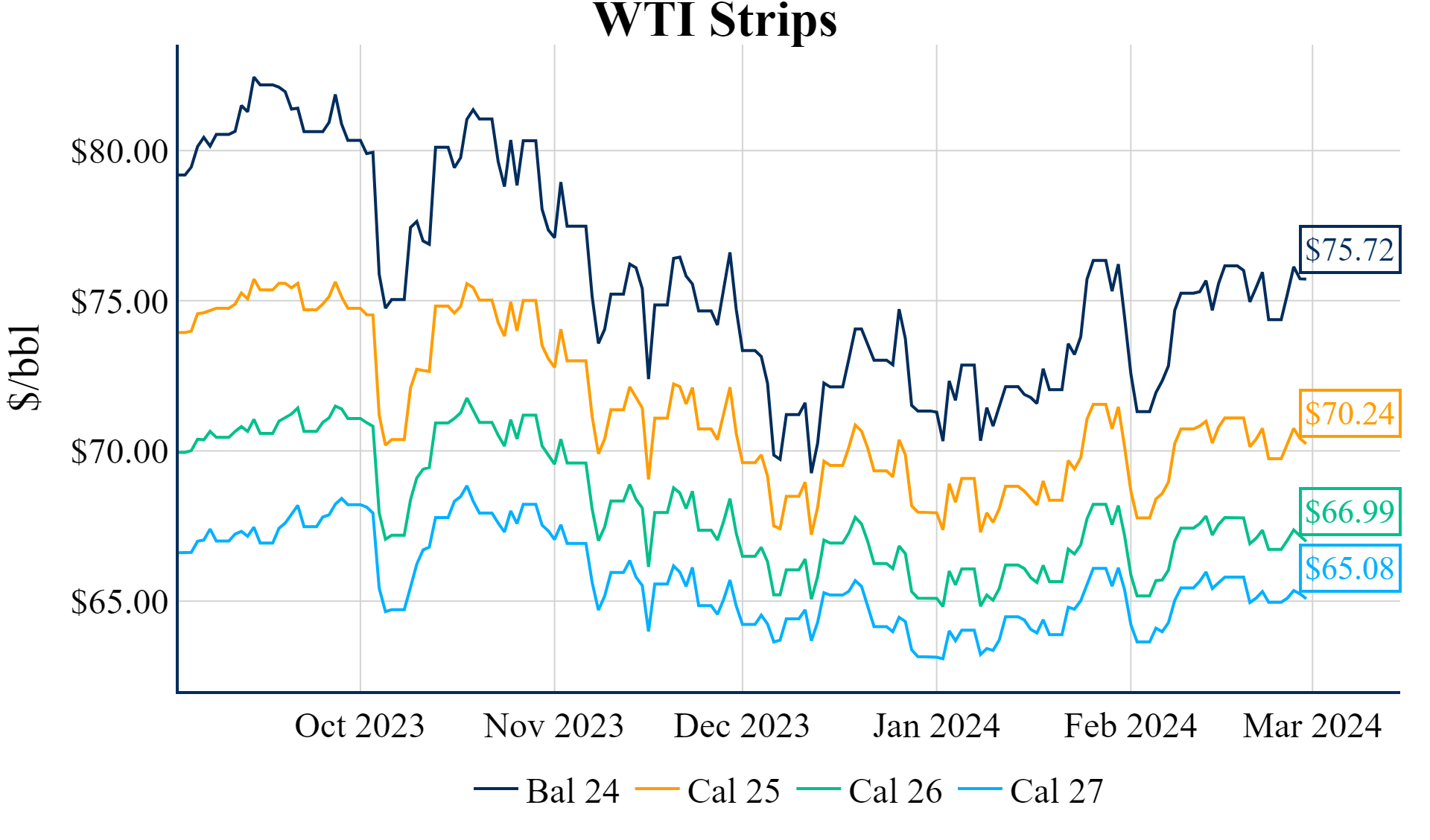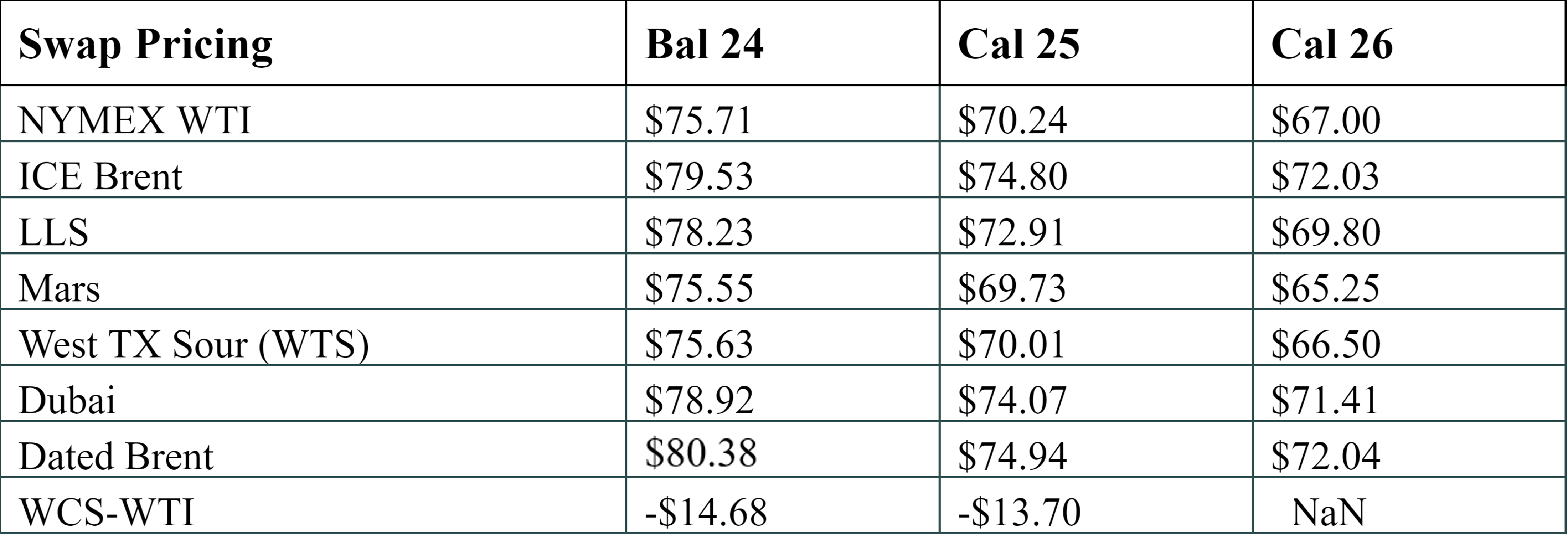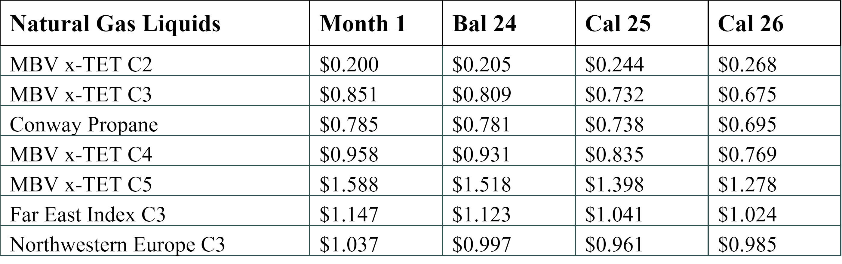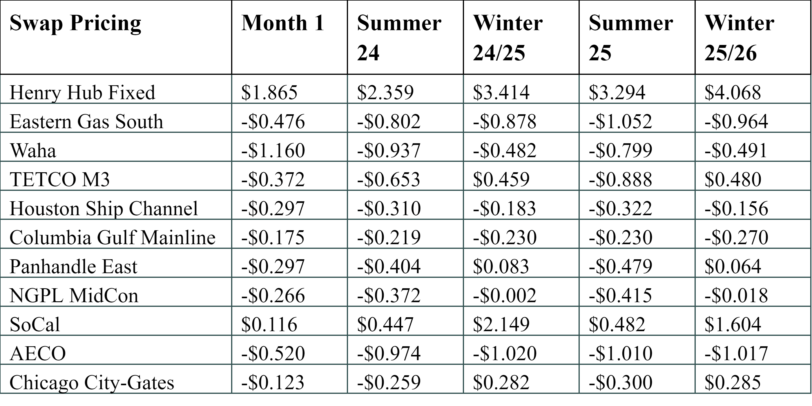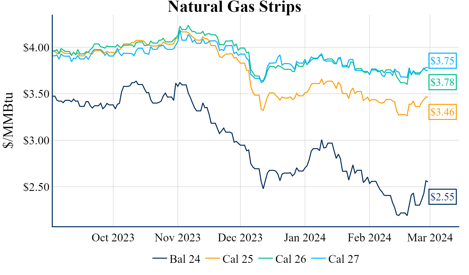 The Summer ’24 strip is down 0.7c to $2.361, and the Winter ‘24/’25 strip is down 0.9c to $3.421