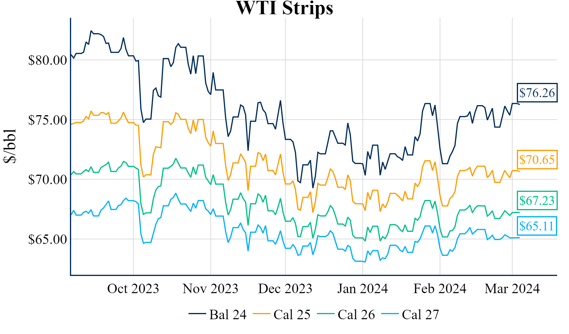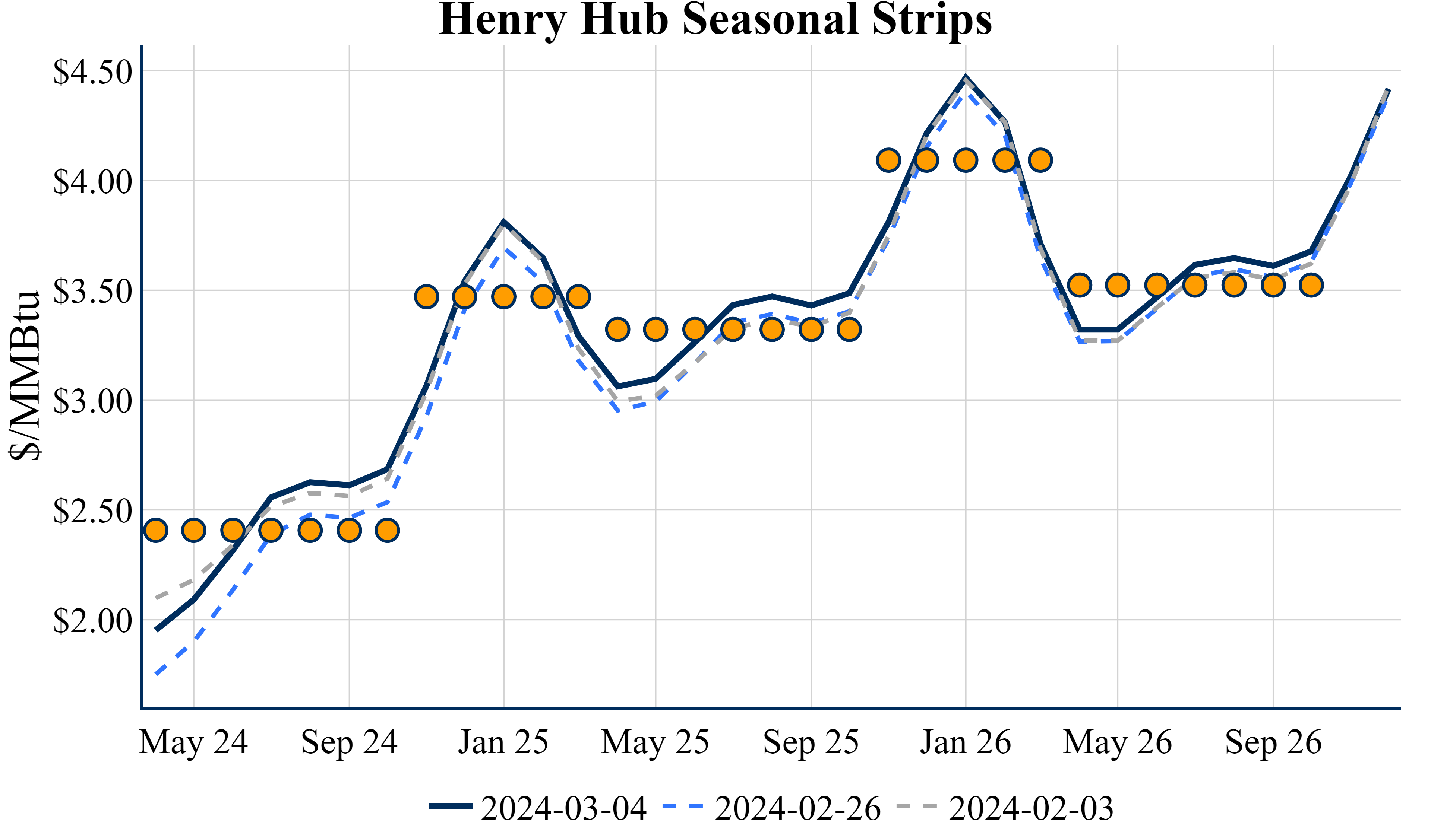 The Summer ’24 strip is up 10.8c to $2.423, and the Winter ‘24/’25 strip is up 7.5c to $3.480