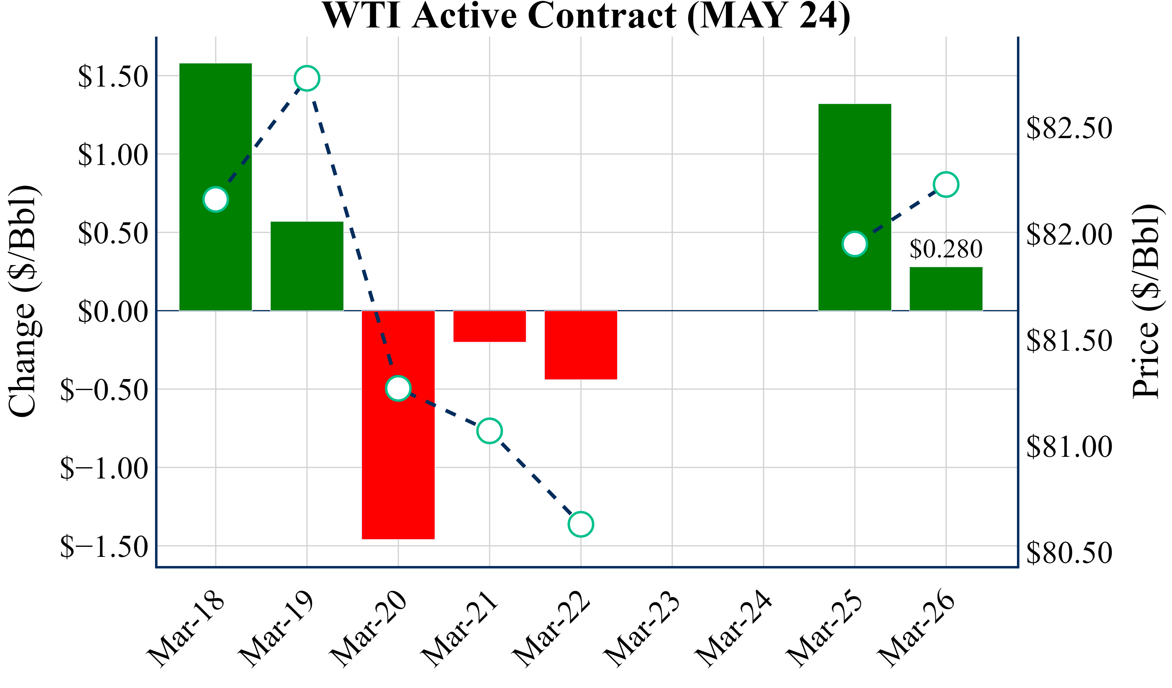 Over the seven days ending March 19, speculators purchased the equivalent of 140 MMBbls, across WTI and Brent futures and options