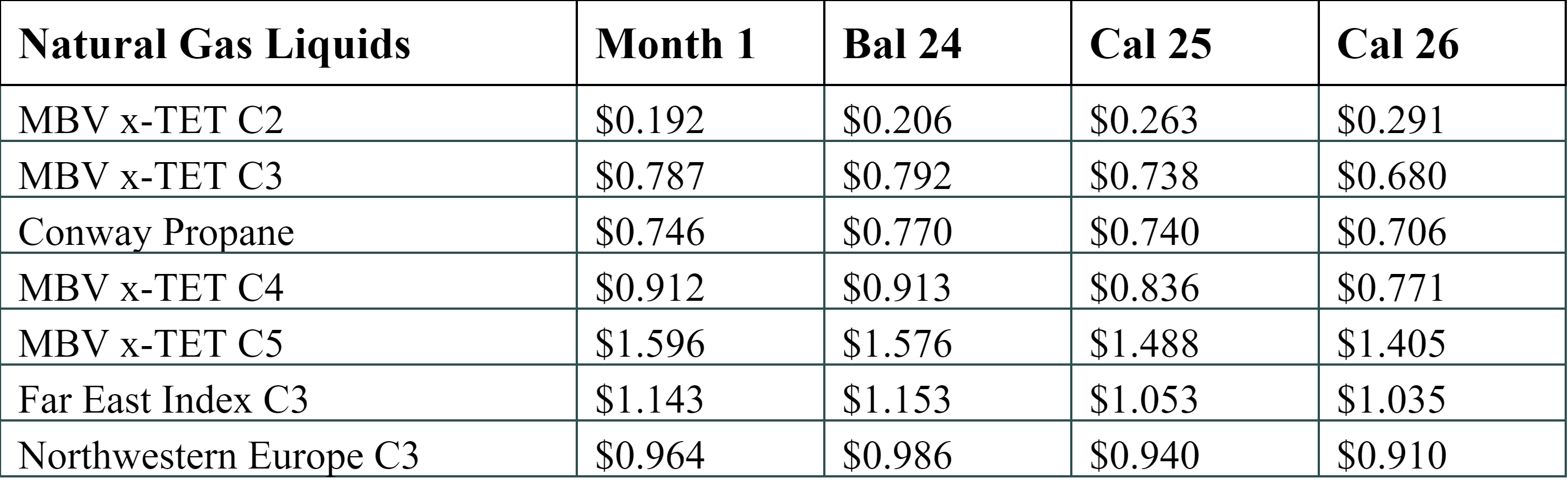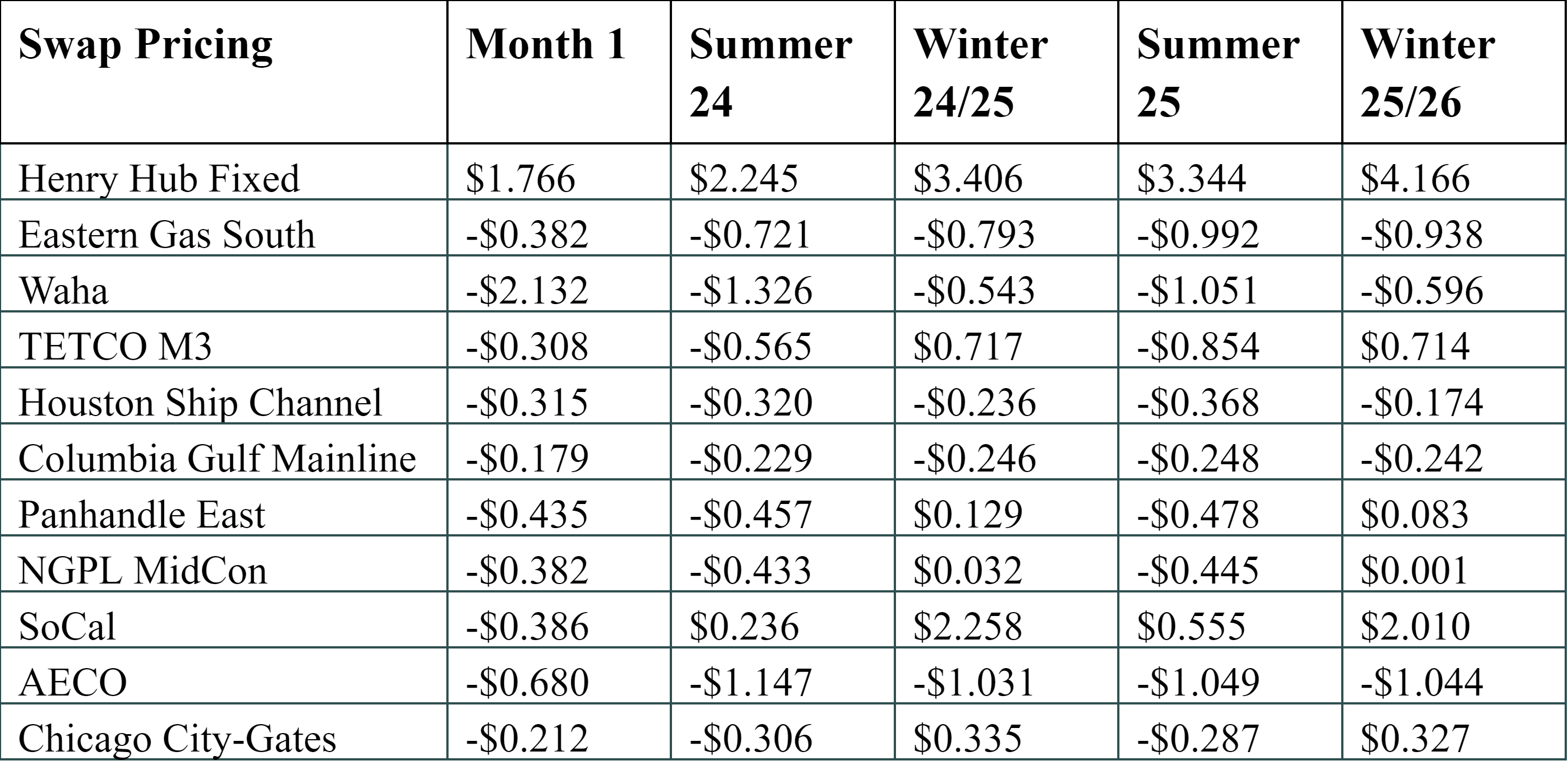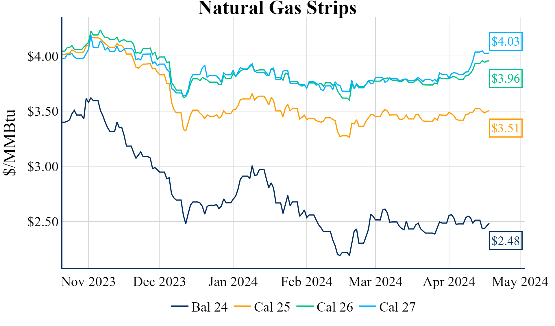The Summer ’24 strip is up 2.5c to $2.243 and Winter ‘24/’25 strip is up 1.5c to $3.399