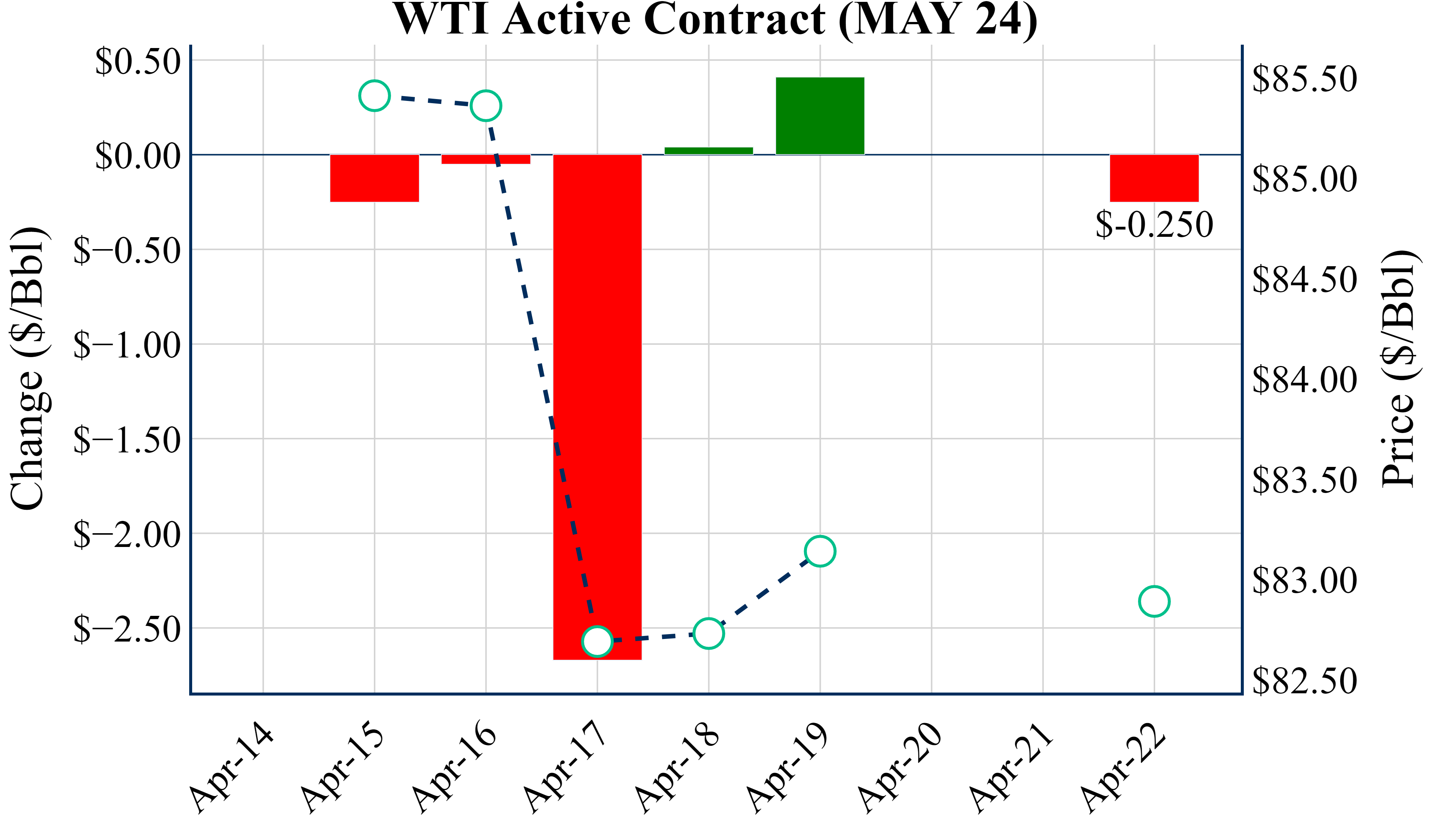 Last week, prices fell by more than $2.50/Bbl as geopolitical risk premium eased somewhat following an Iranian attack on Israel and the subsequent Israeli response