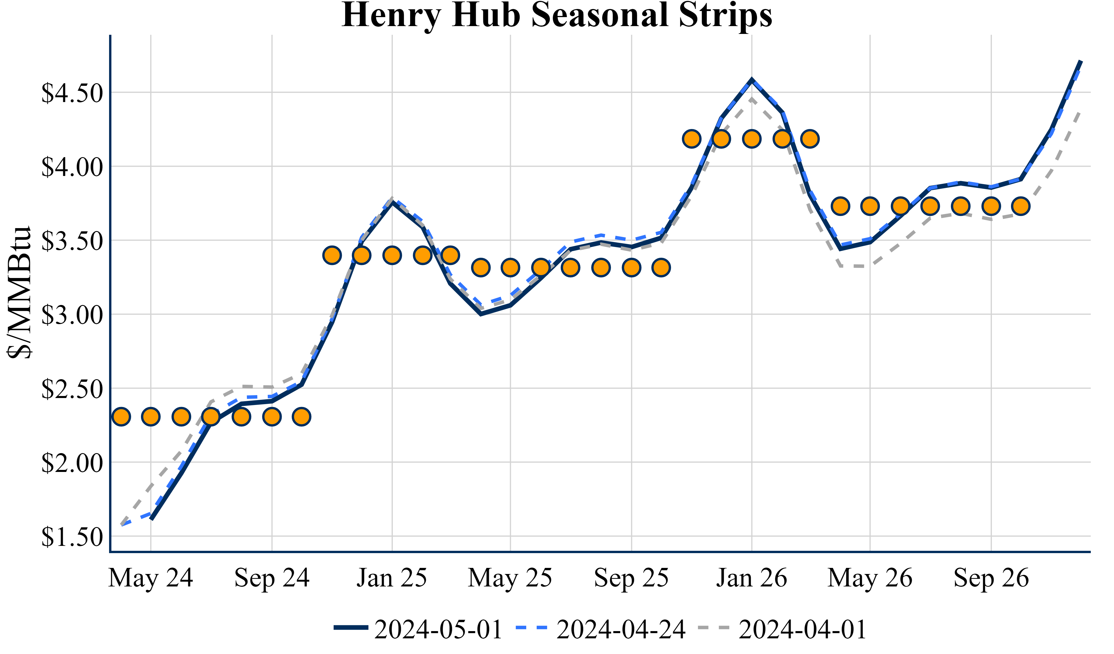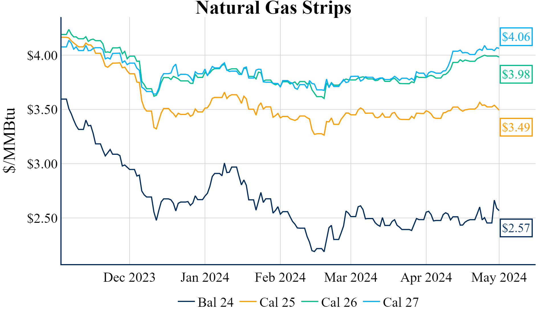 The Summer ’24 strip is down 1.5c to $2.329 and Winter ‘24/’25 strip is down 1.8c to $3.411