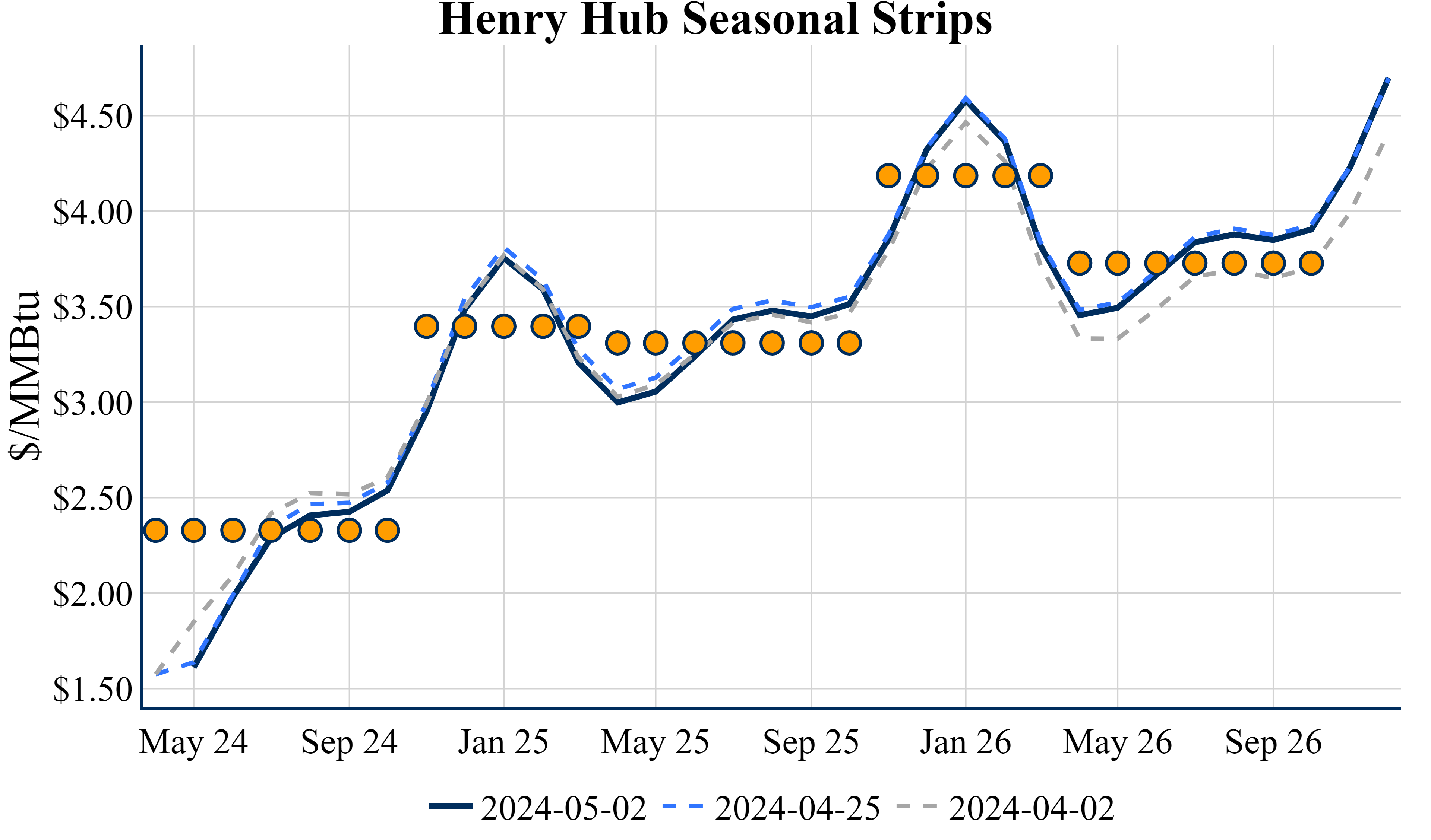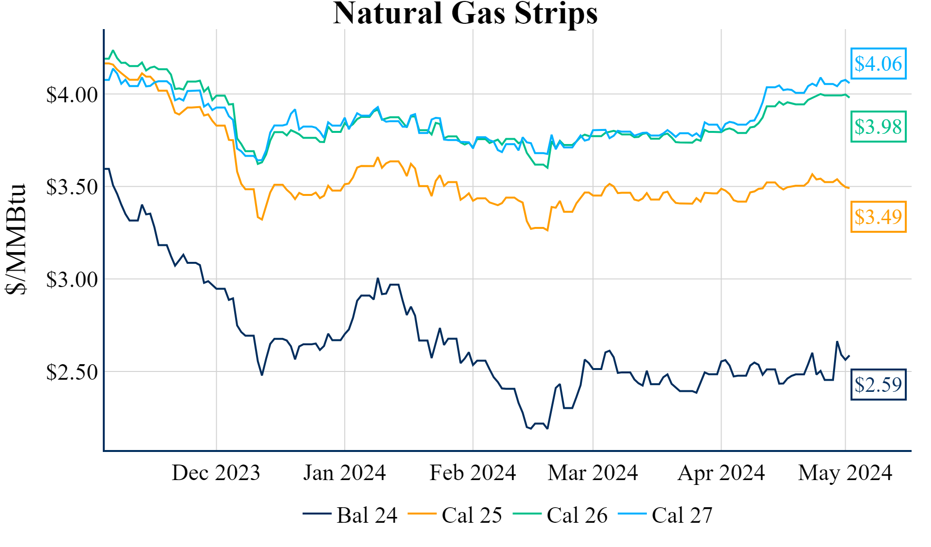 The Summer ’24 strip is up 2.4c to $2.329 and Winter ‘24/’25 strip is up 0.9c to $3.397