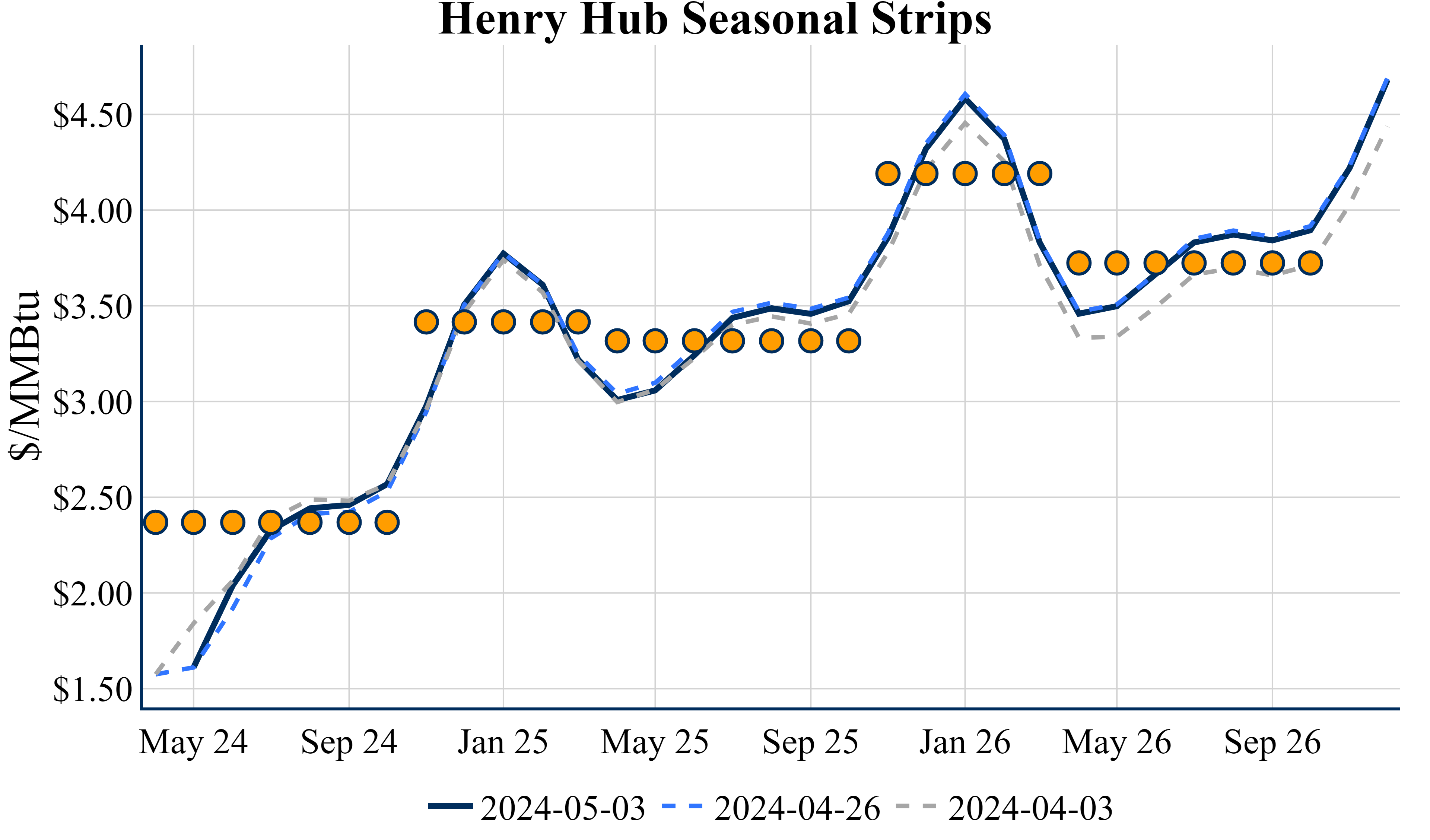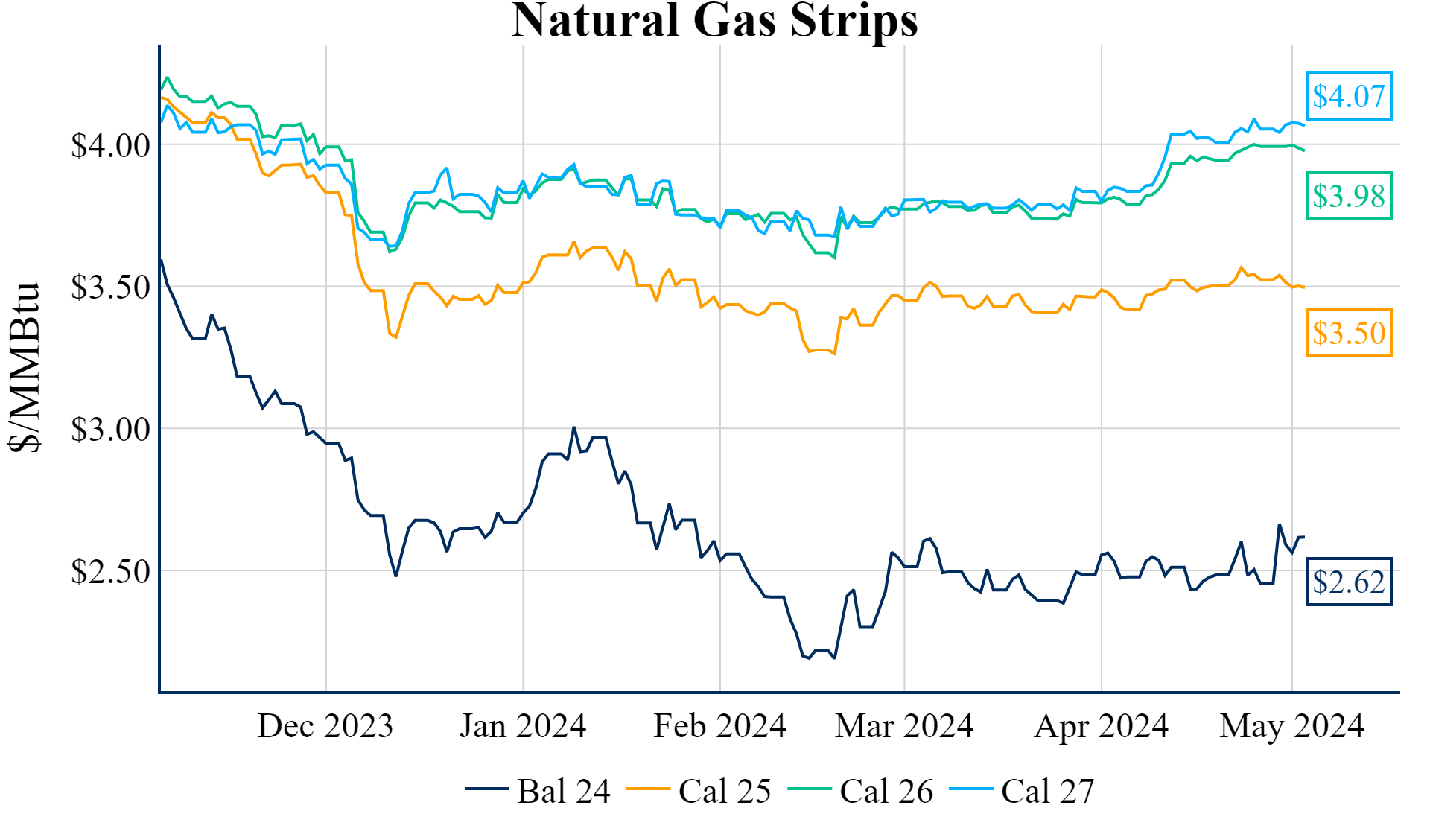 The Summer ’24 strip is down 0.5c to $2.354 and Winter ‘24/’25 strip is down 0.9c to $3.408