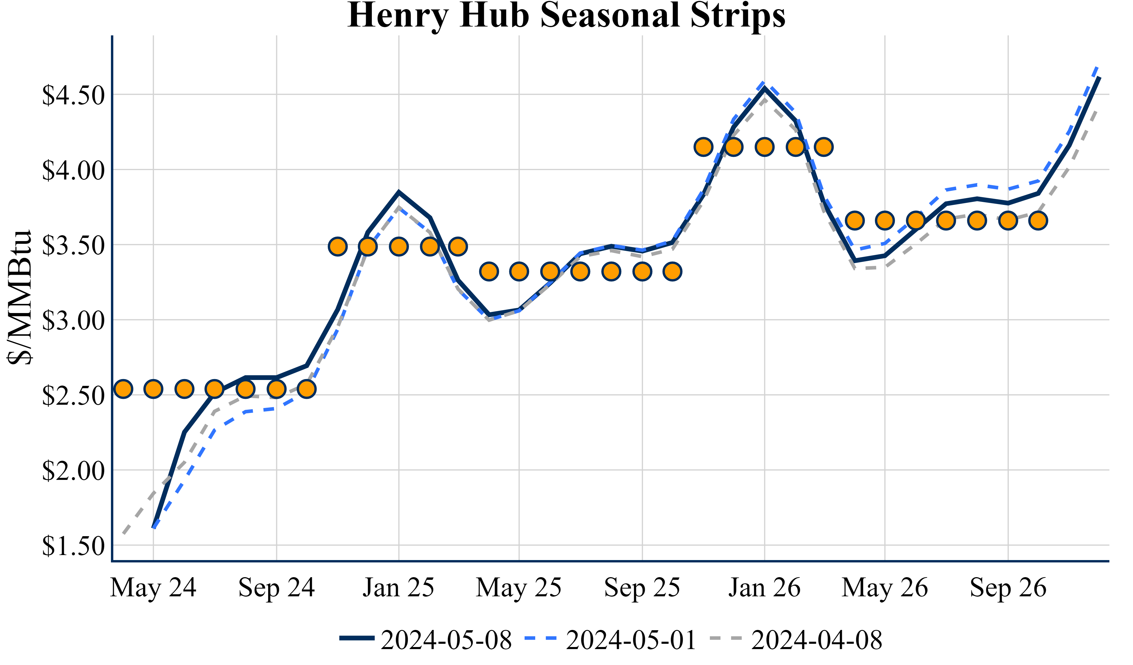 The Summer ’24 strip is up 3.1c to $2.555 and Winter ‘24/’25 strip is up 2.4c to $3.496