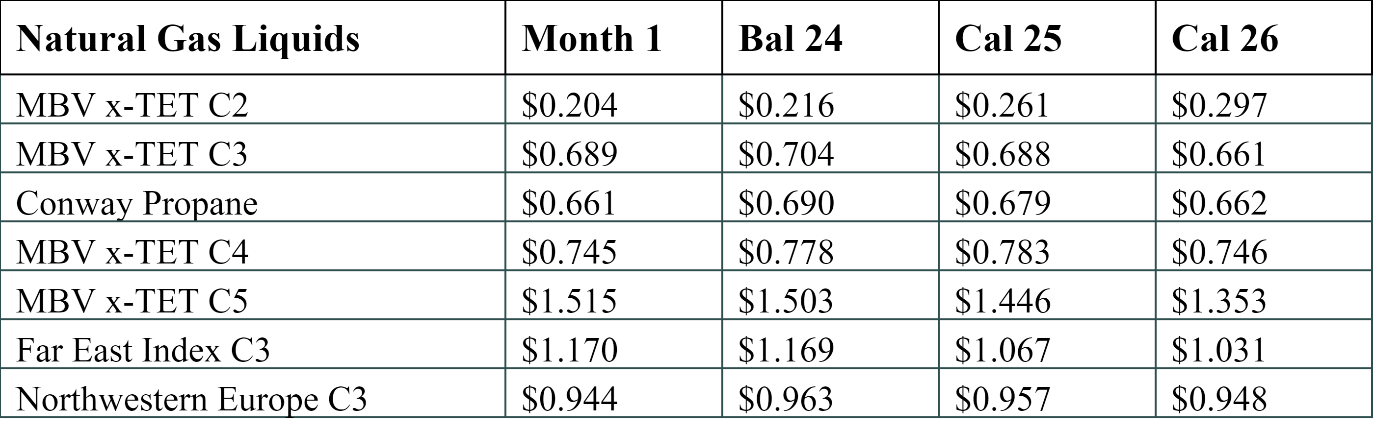 The Summer ’24 strip is up 3.5c to $2.719 and Winter ‘24/’25 strip is up 2.2c to $3.533