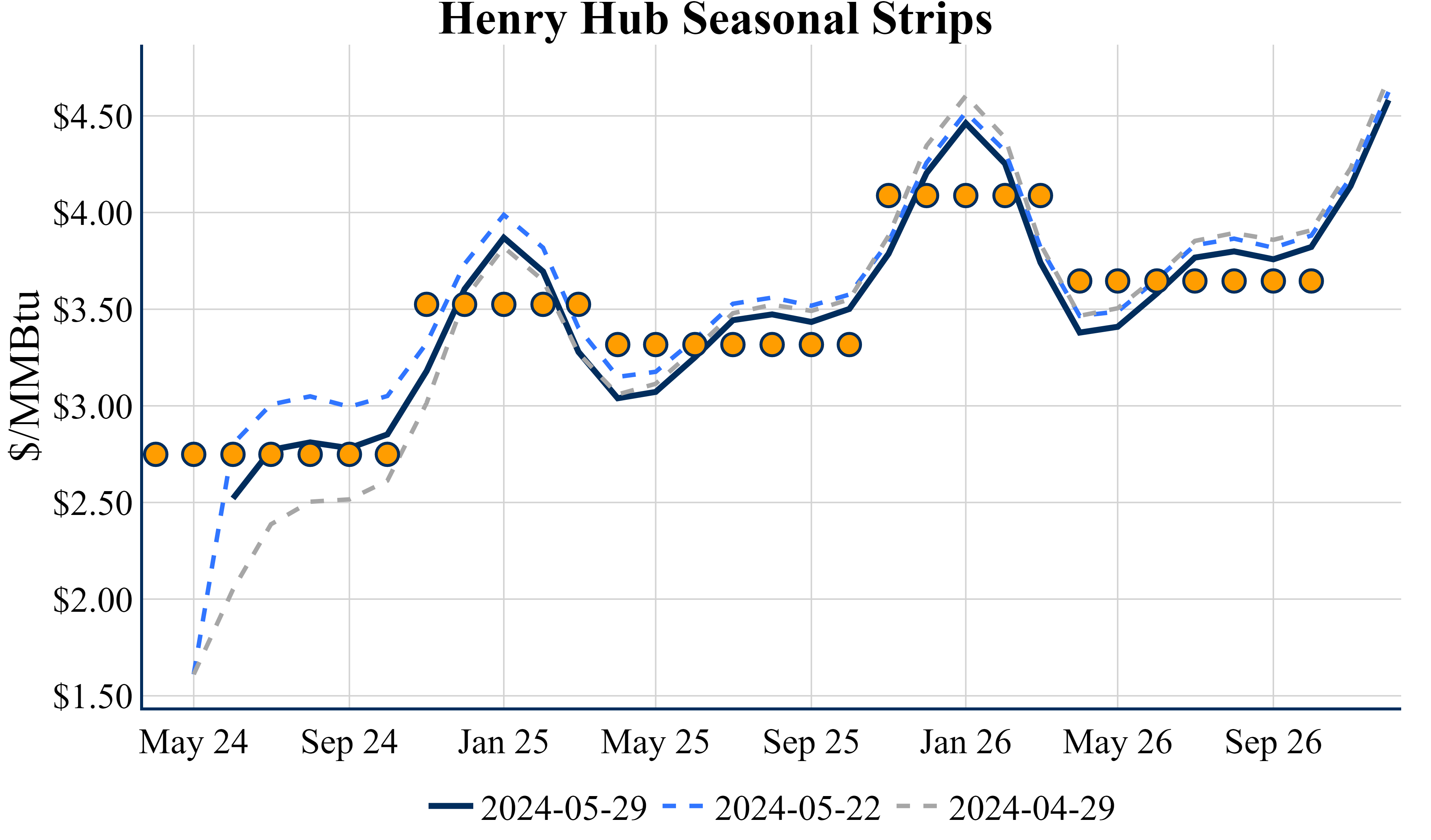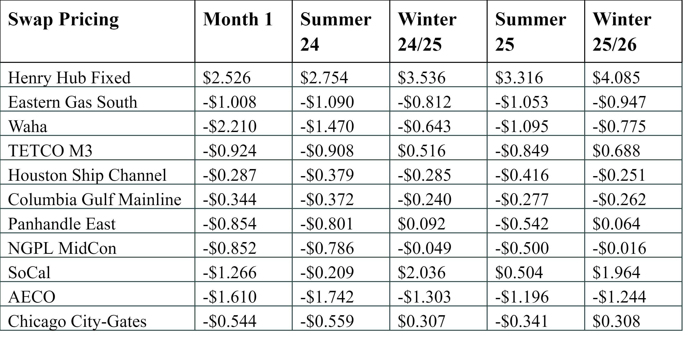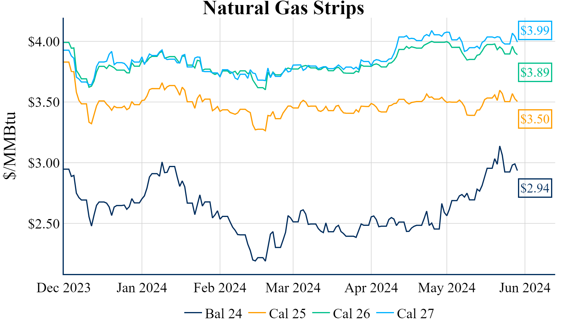The Summer ’24 strip is down 5.7c to $2.754 and Winter ‘24/’25 strip is down 3.6c to $3.525