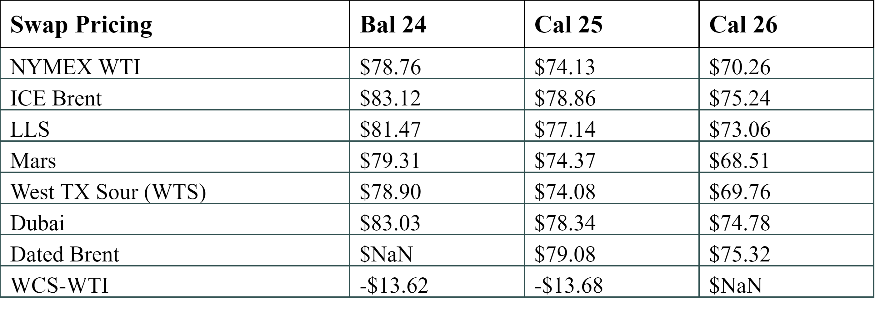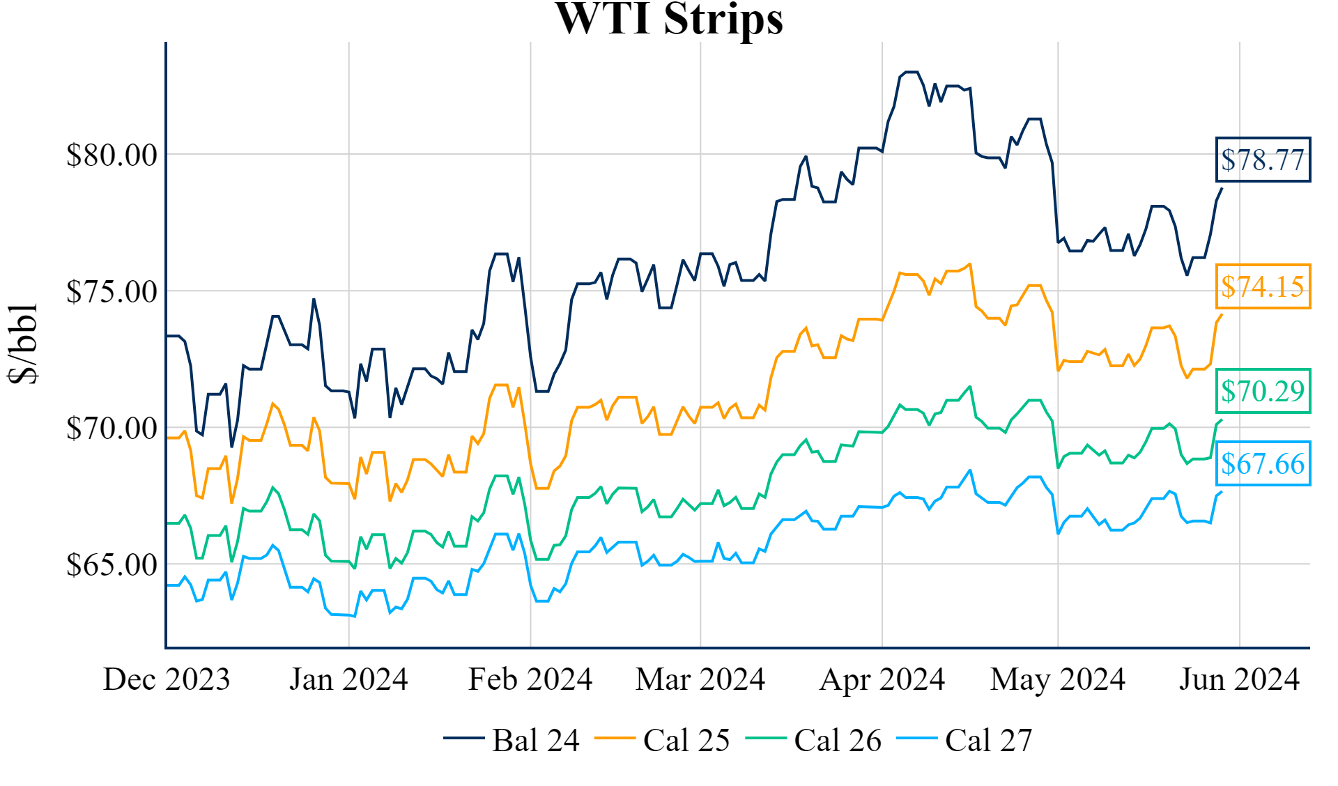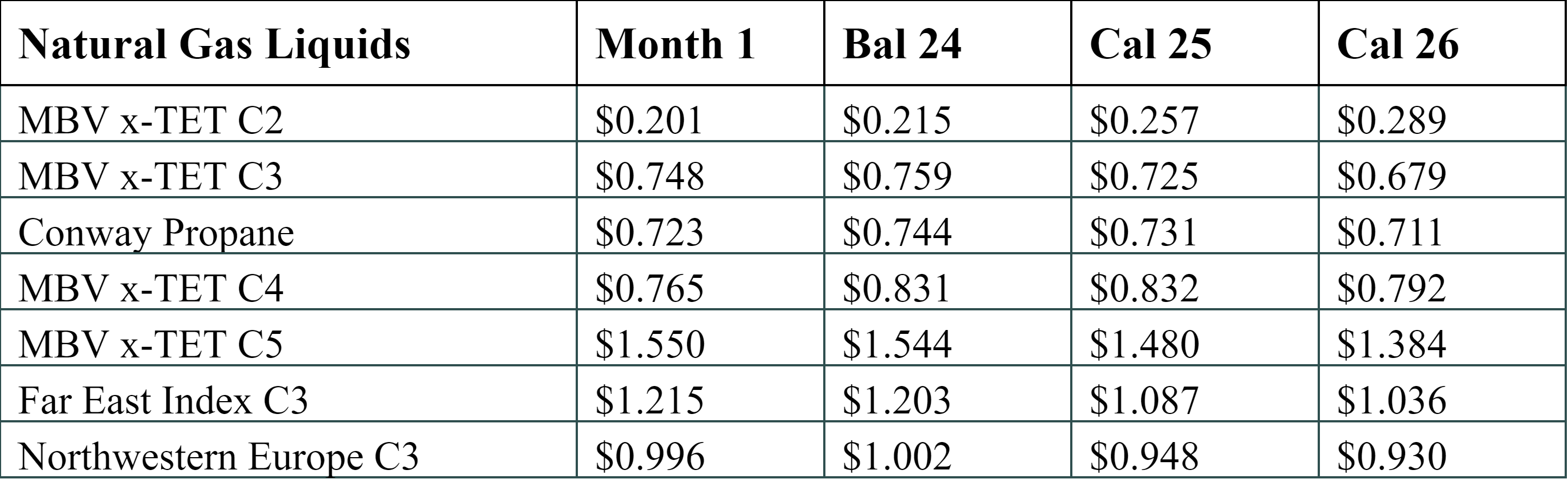 The Summer ’24 strip is down 5.7c to $2.754 and Winter ‘24/’25 strip is down 3.6c to $3.525