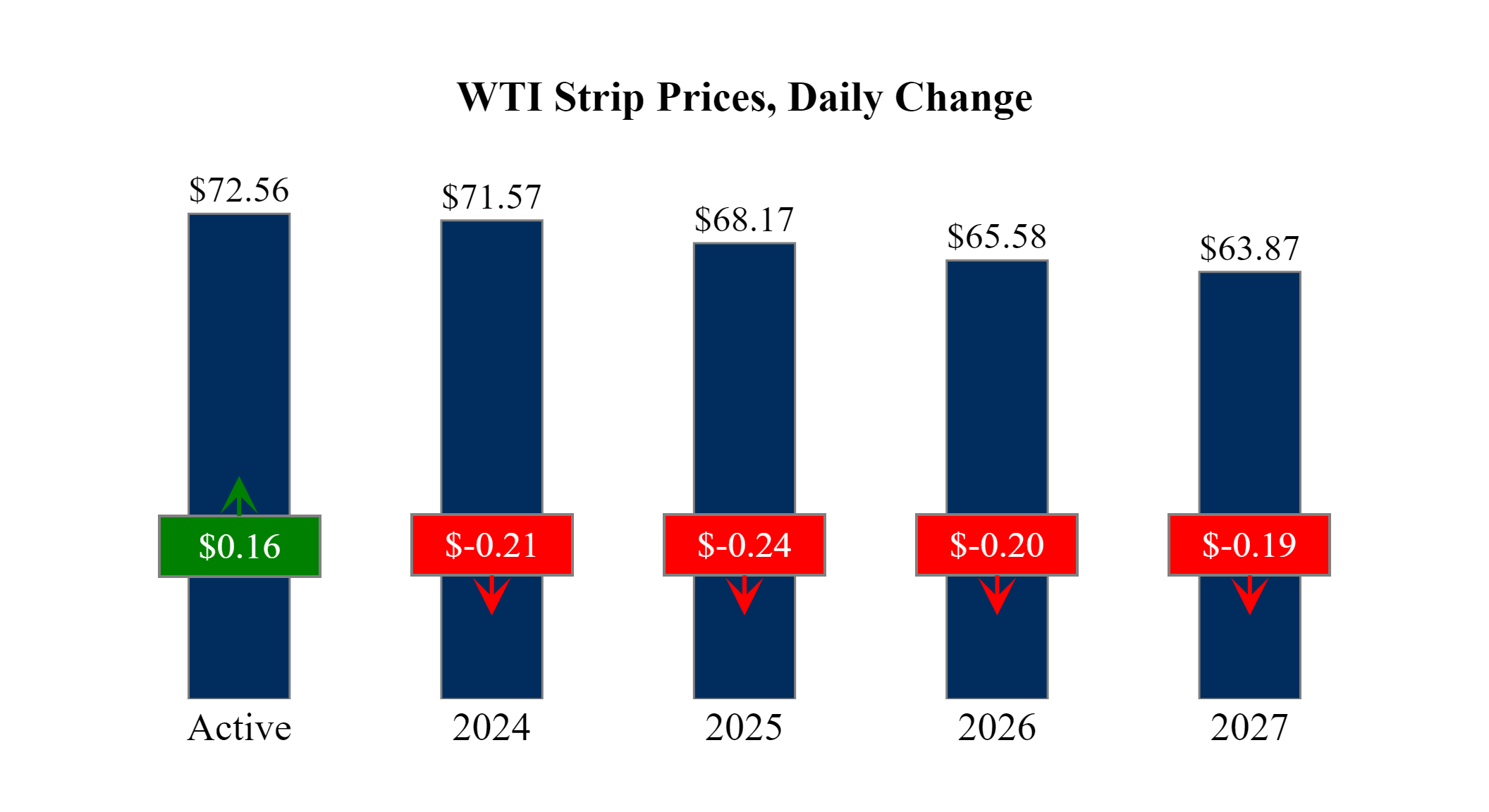 Prompt-Month WTI (Feb 24) was up $0.16 on the day, to settle at $72.56