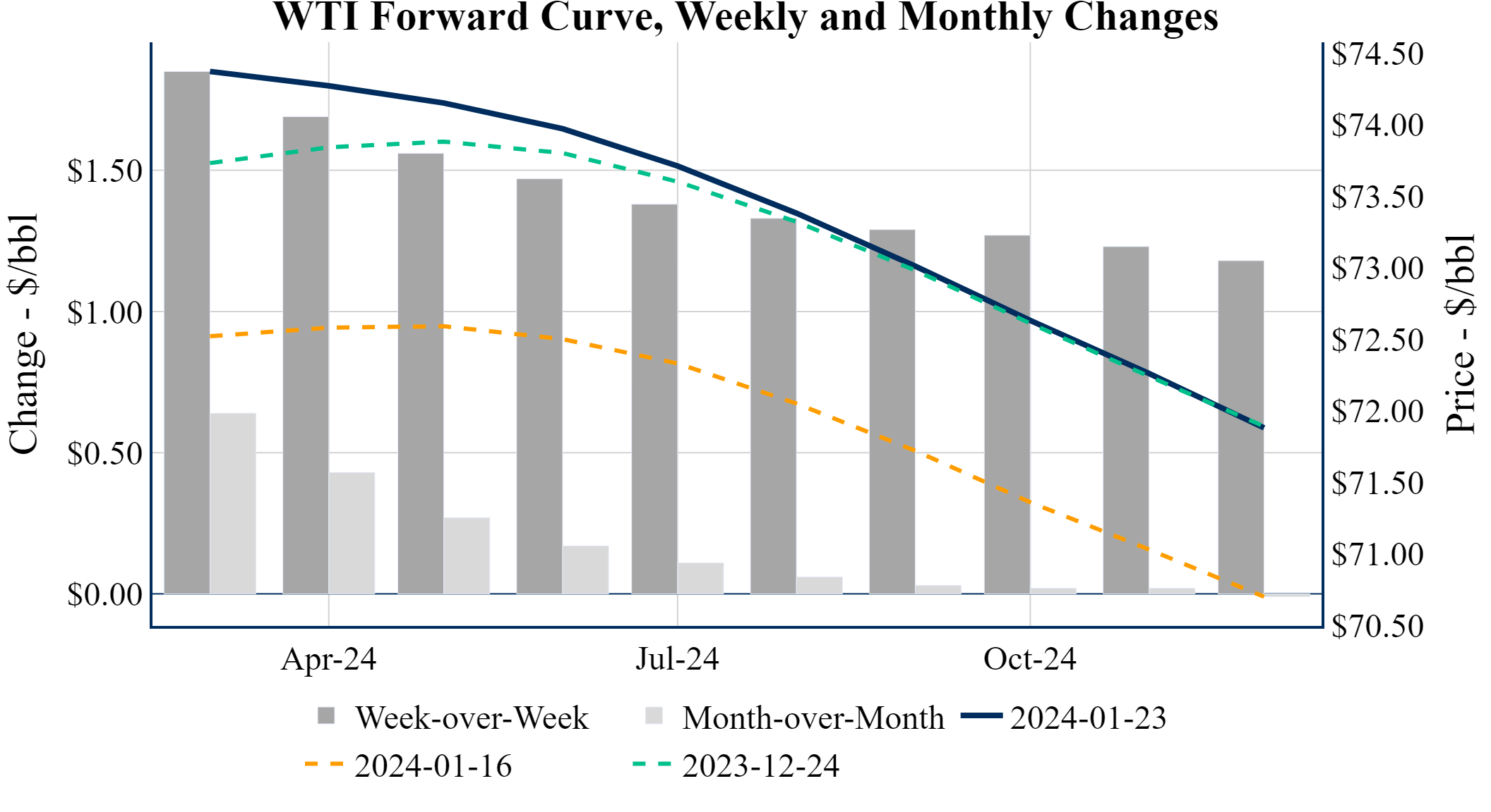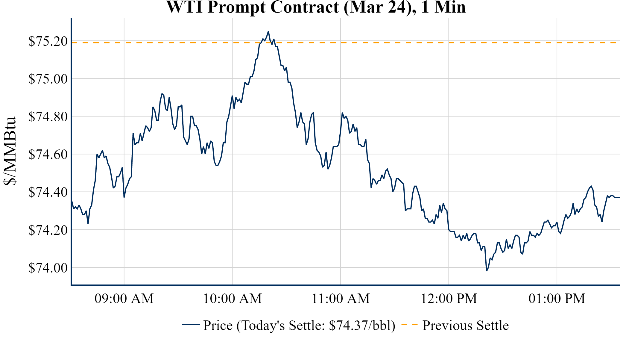 Prompt-Month WTI (Mar 24) was down $-0.39 on the day, to settle at $74.37