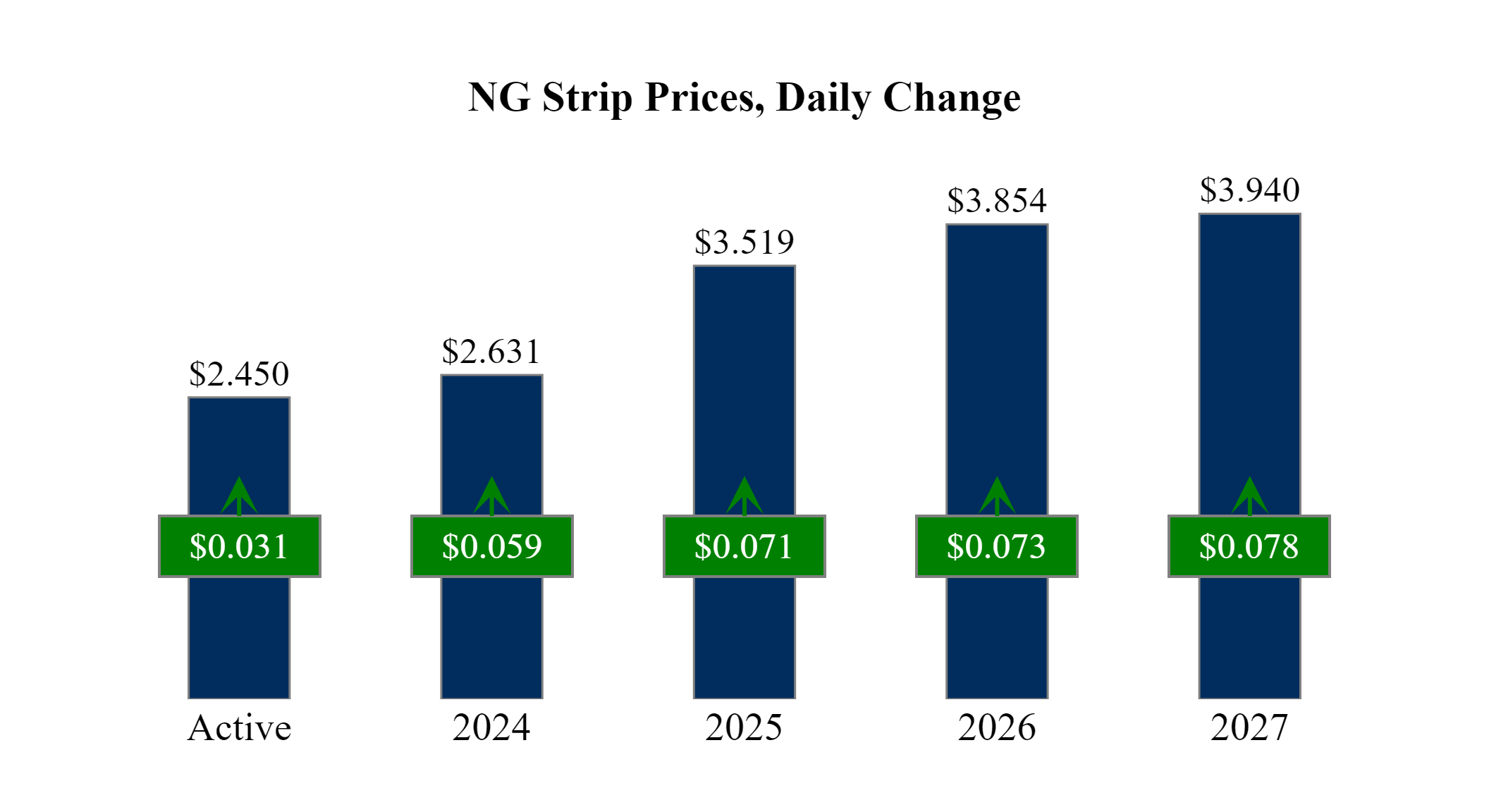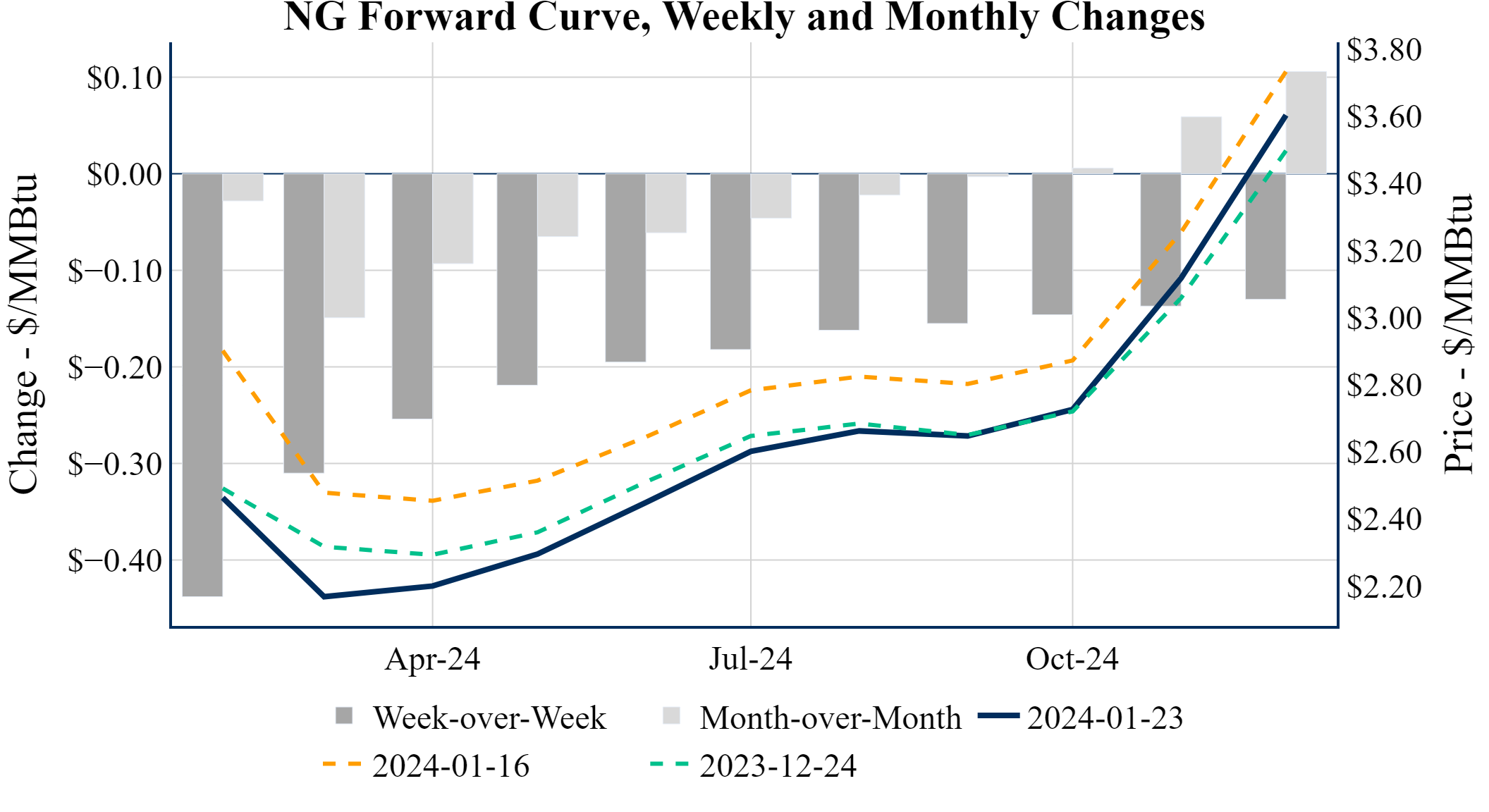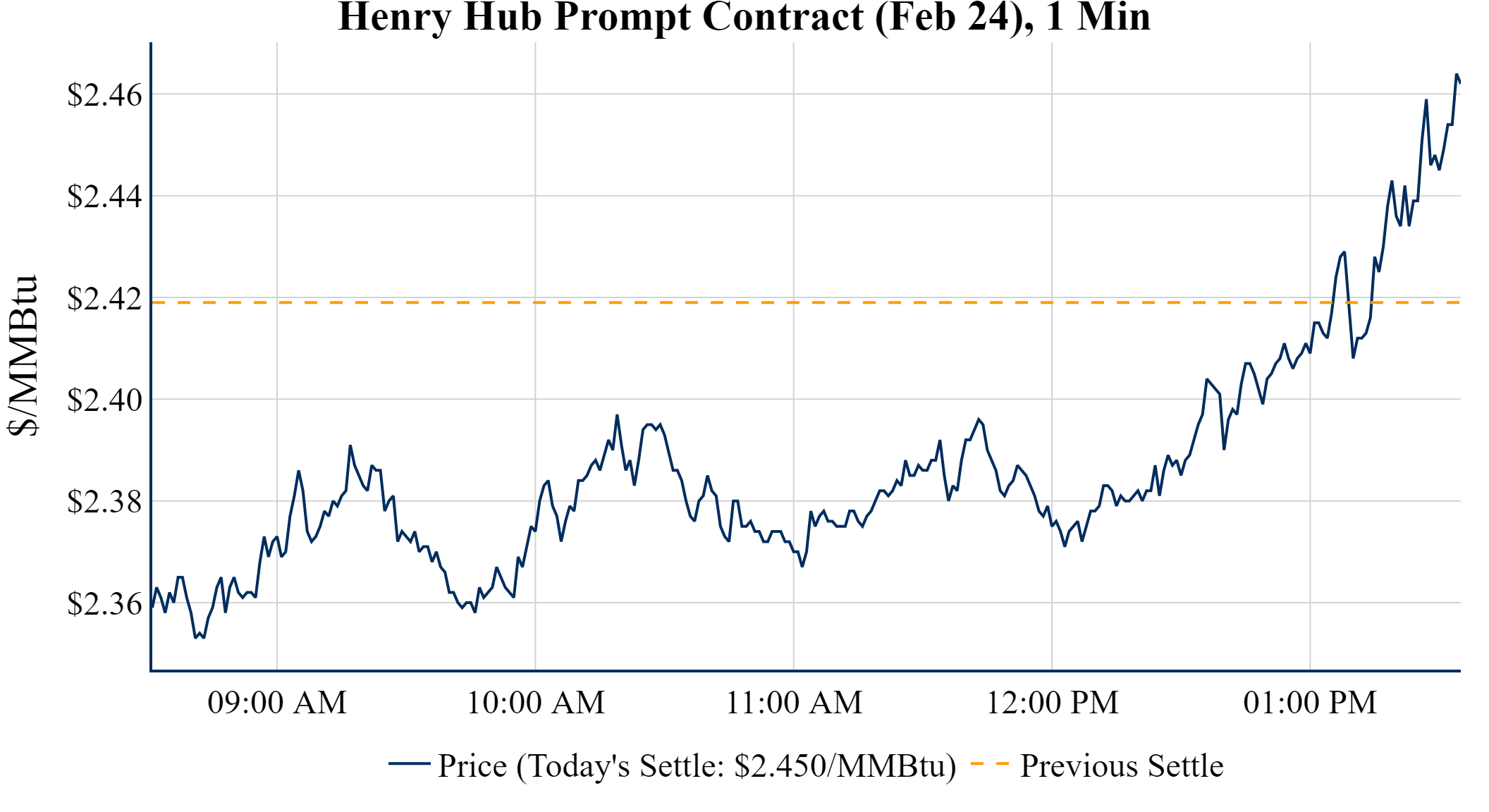 Prompt-Month Henry Hub (Feb 24) was up $0.031 on the day, to settle at $2.450