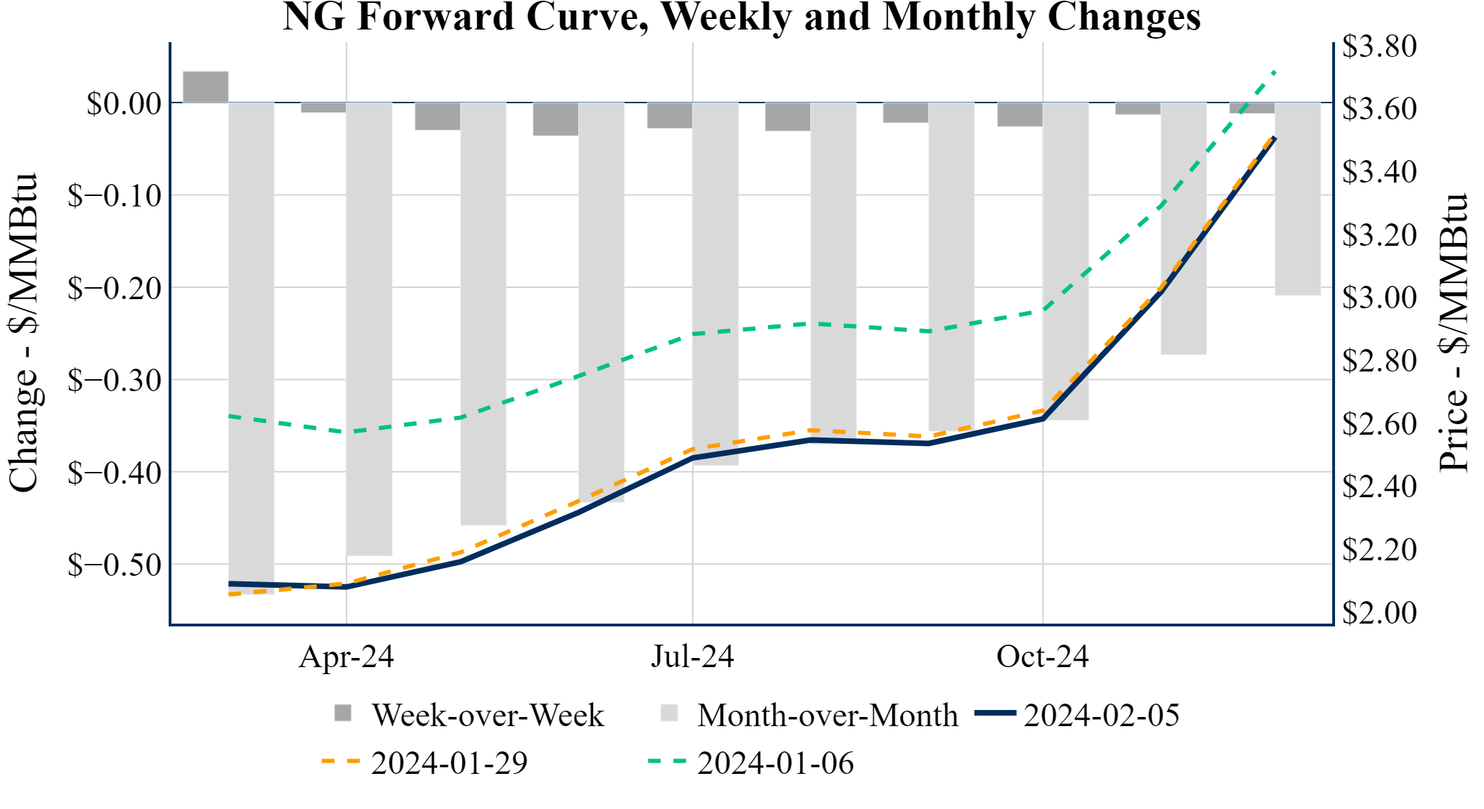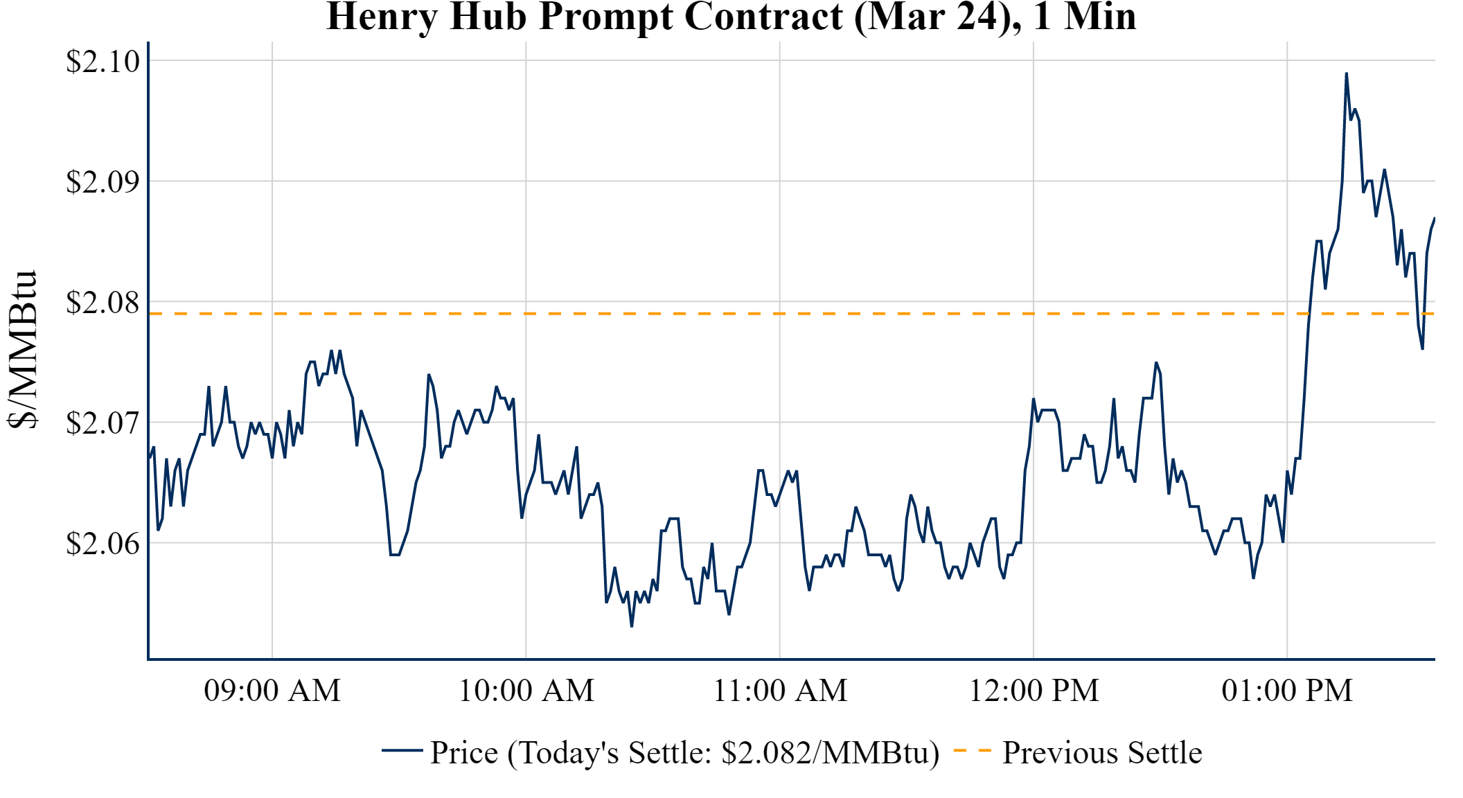 Prompt-Month Henry Hub (Mar 24) was up $0.003 on the day, to settle at $2.082