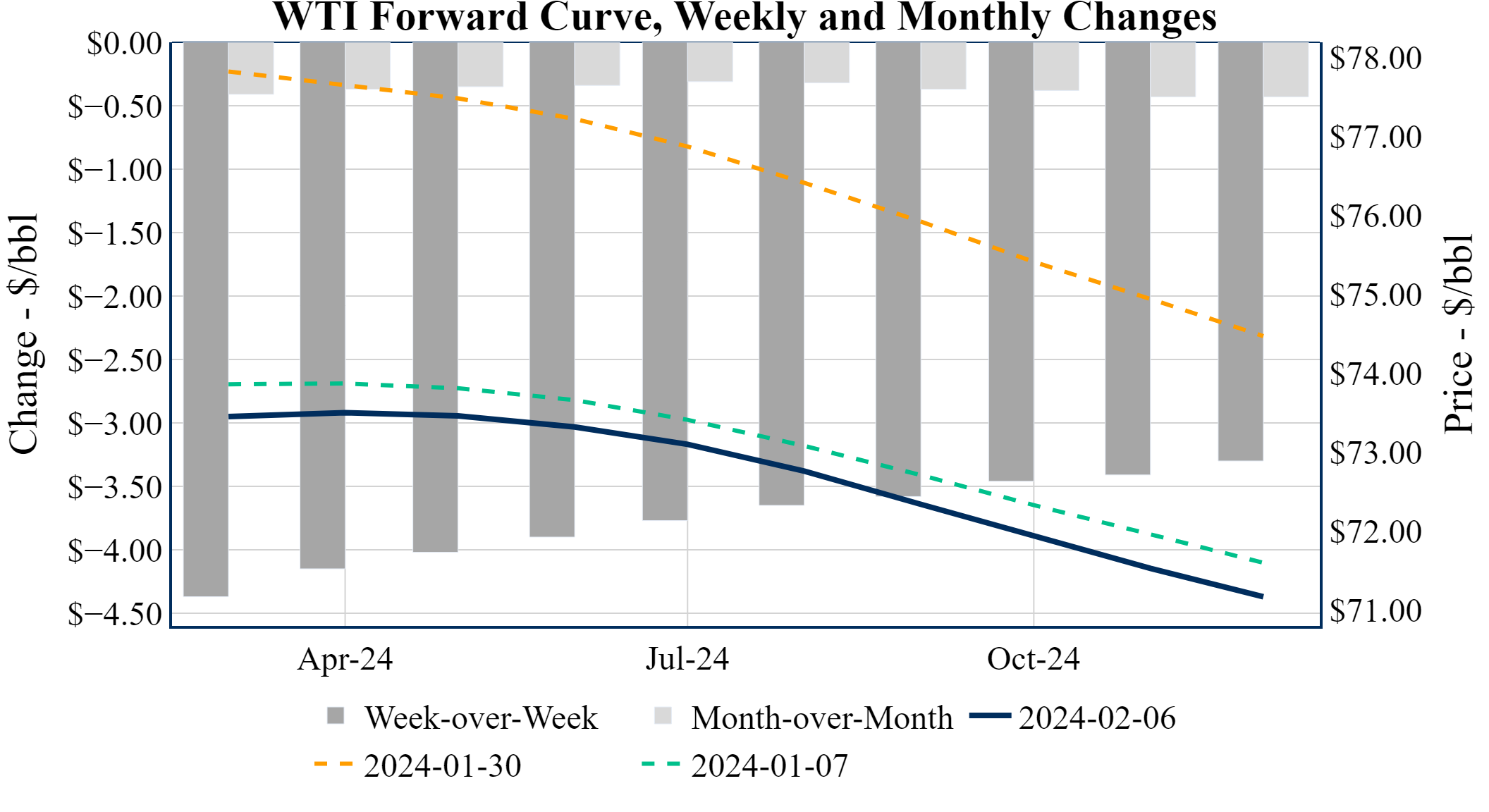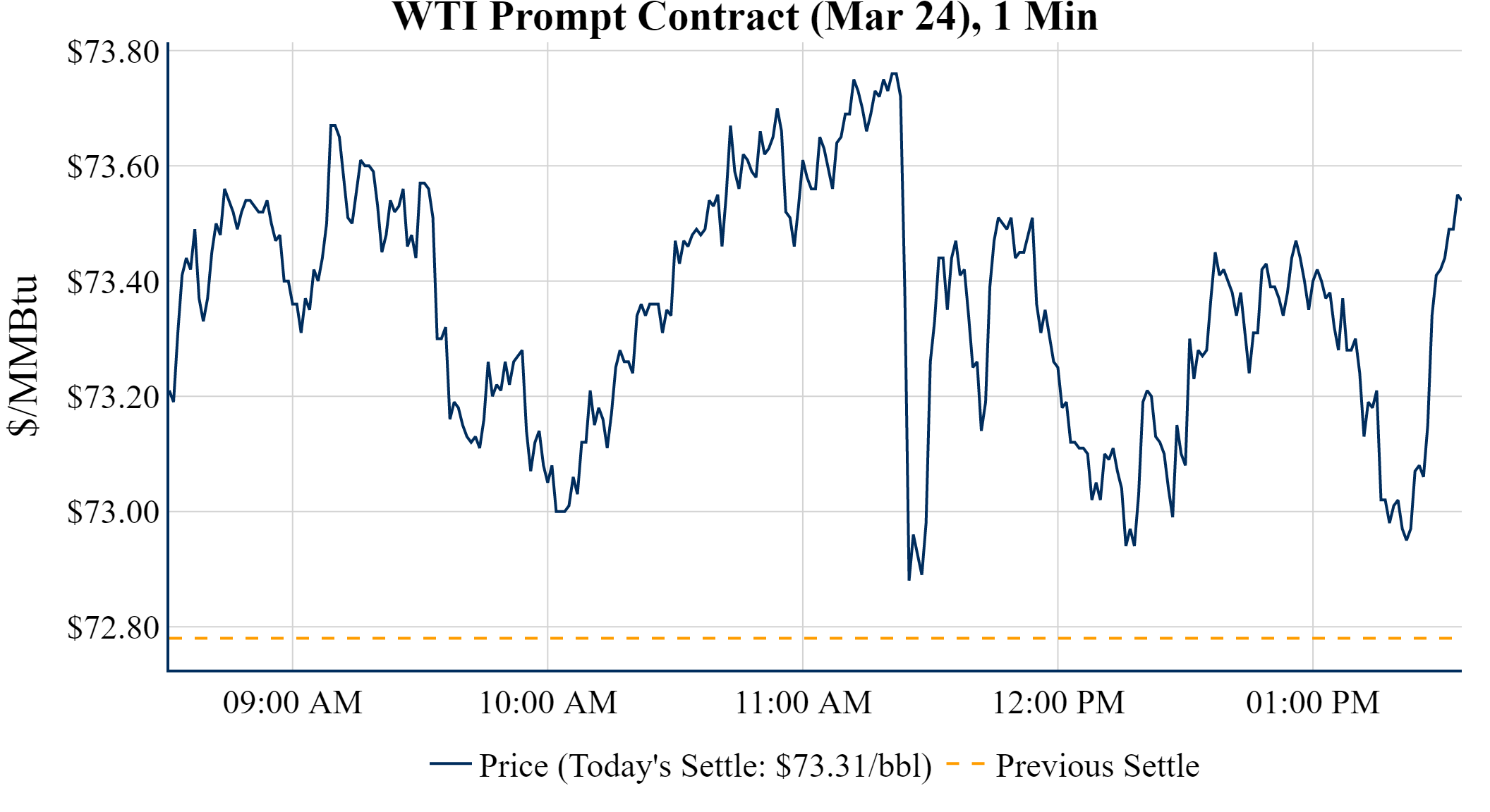 Prompt-Month WTI (Mar 24) was up $0.53 on the day, to settle at $73.31