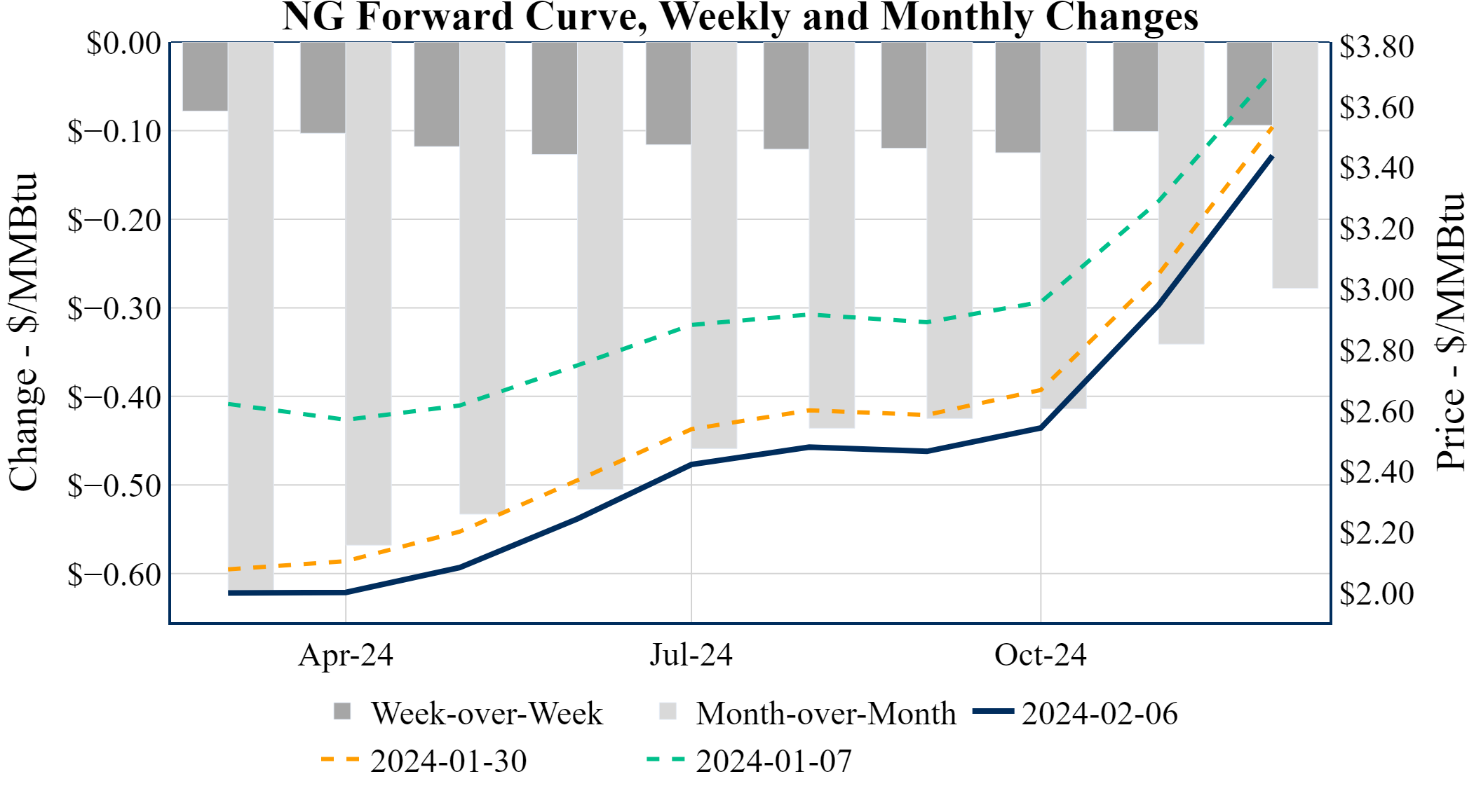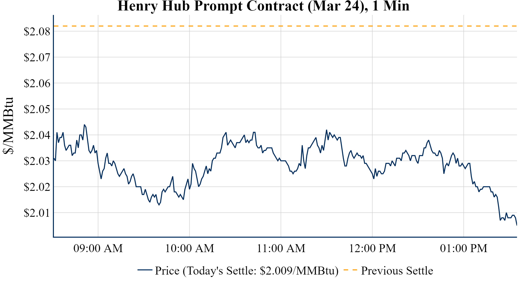 Prompt-Month Henry Hub (Mar 24) was down $-0.073 on the day, to settle at $2.009