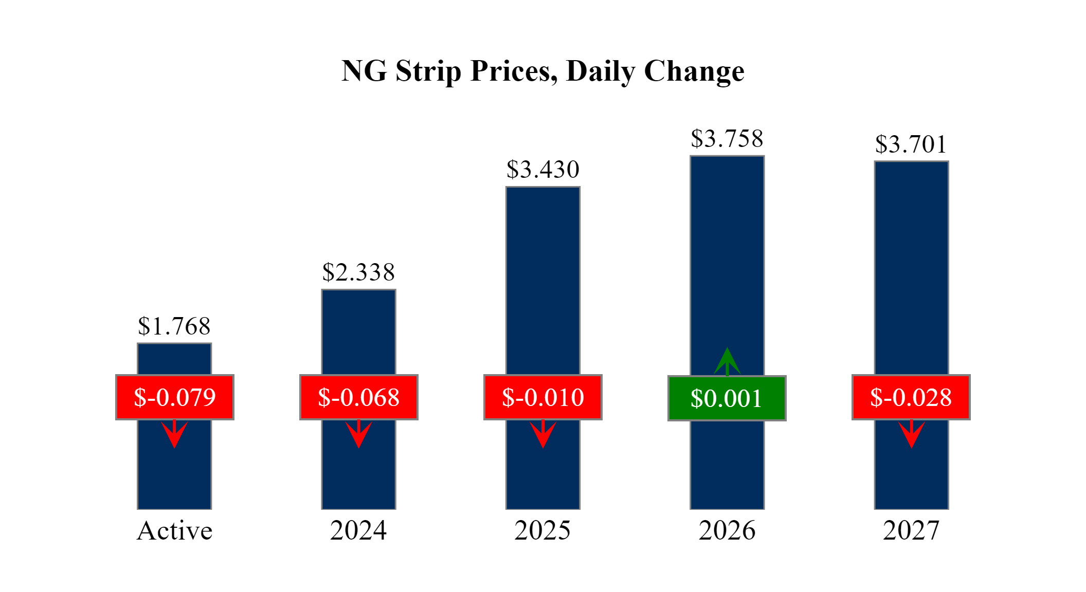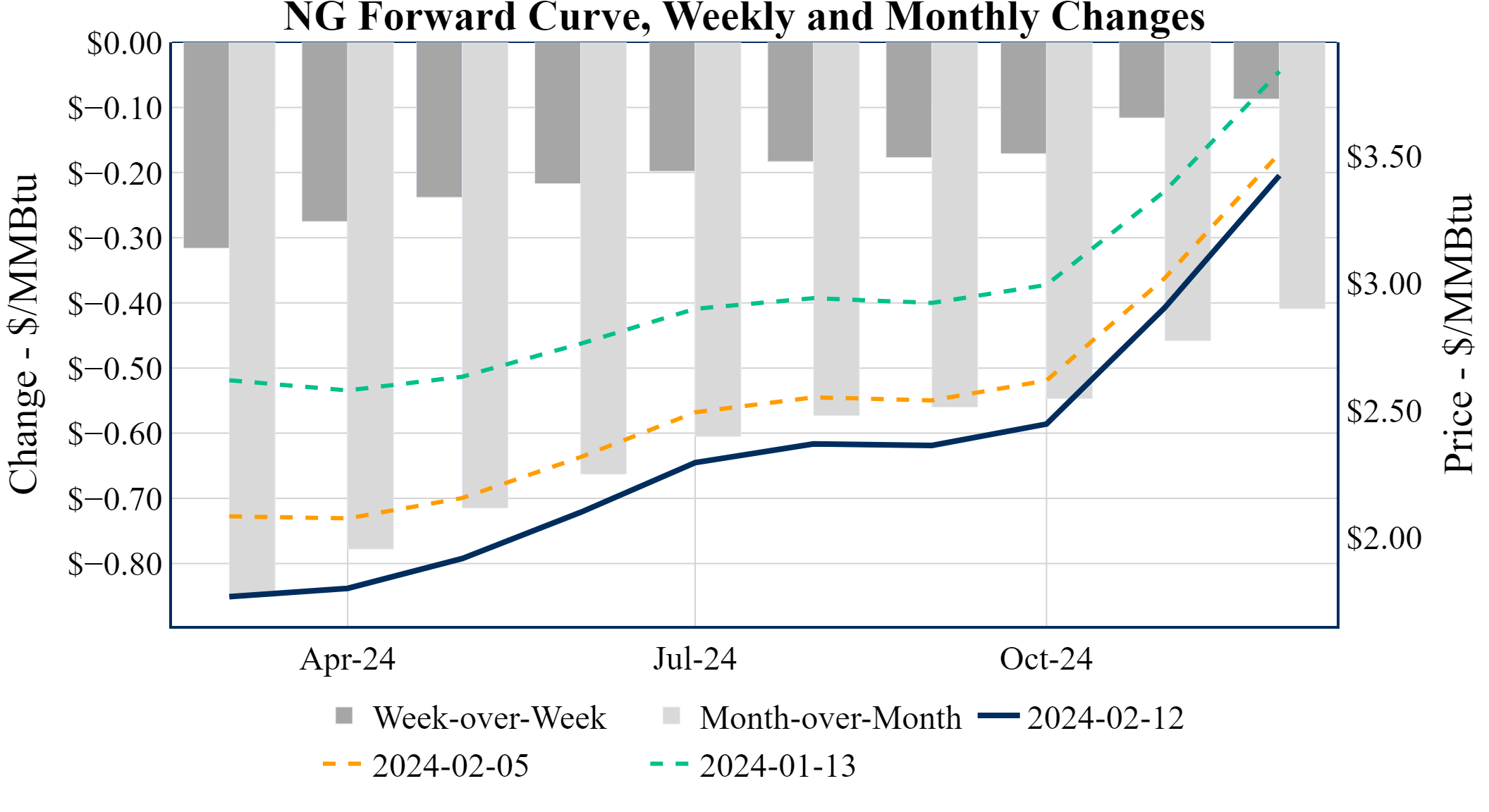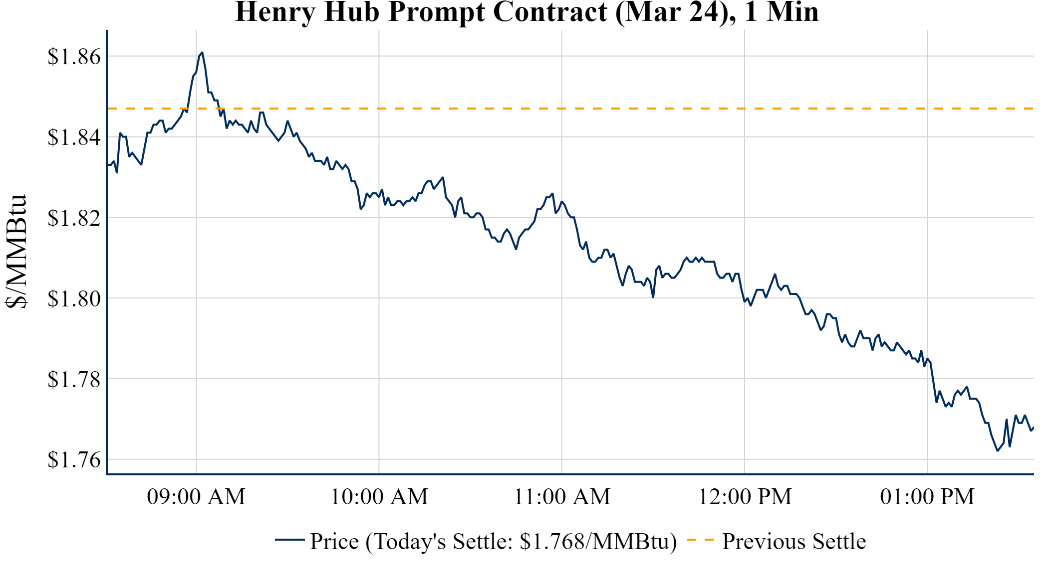 Prompt-Month Henry Hub (Mar 24) was down $-0.079 on the day, to settle at $1.768
