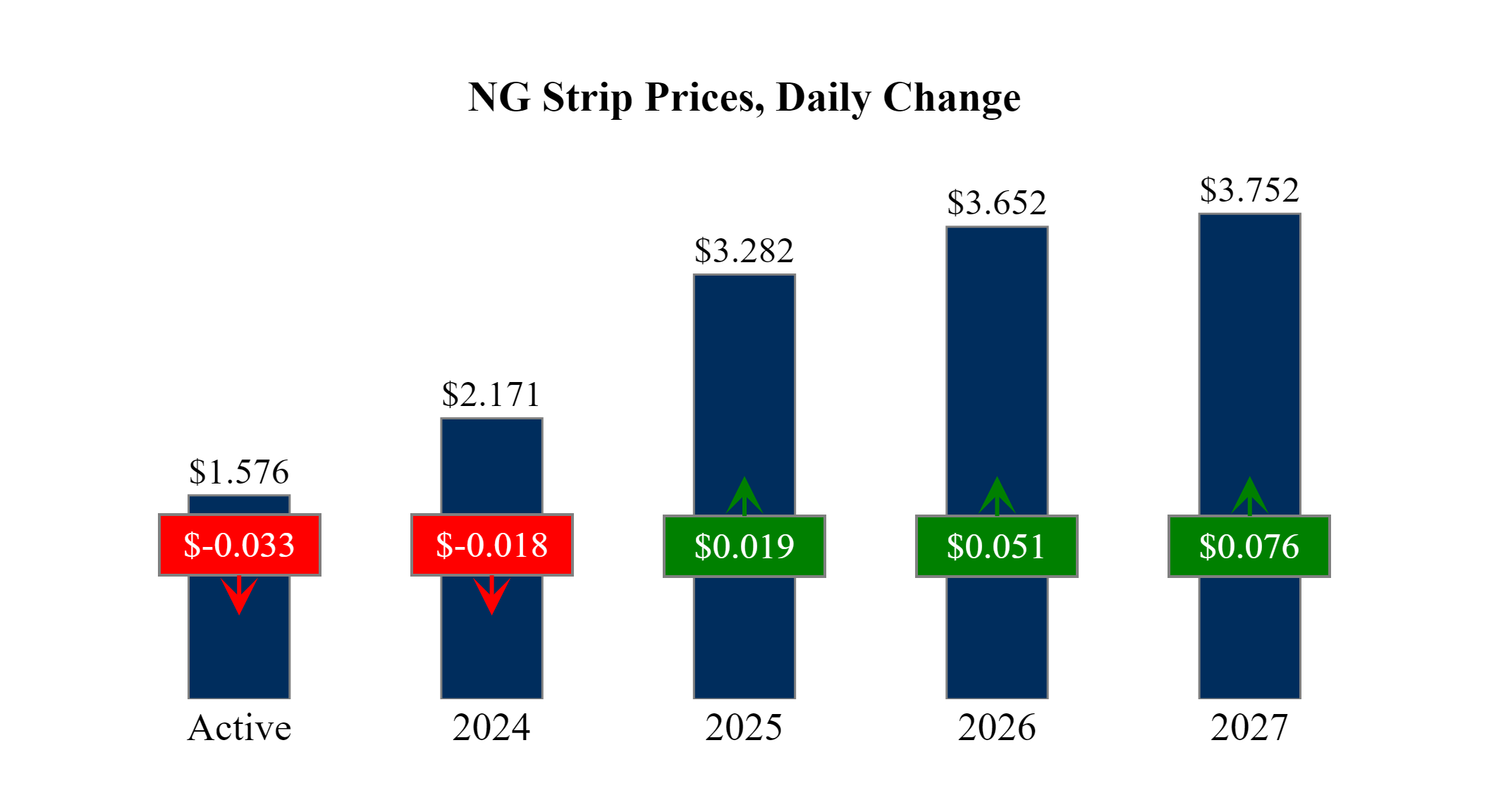 Prompt-Month Henry Hub (Mar 24) was down $-0.033 on the day, to settle at $1.576