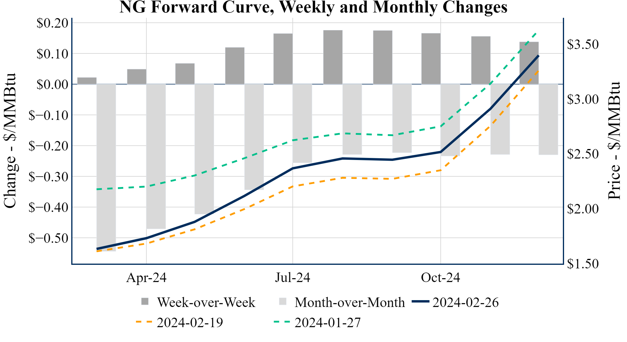Prompt-Month Henry Hub (Mar 24) was up $0.056 on the day, to settle at $1.659