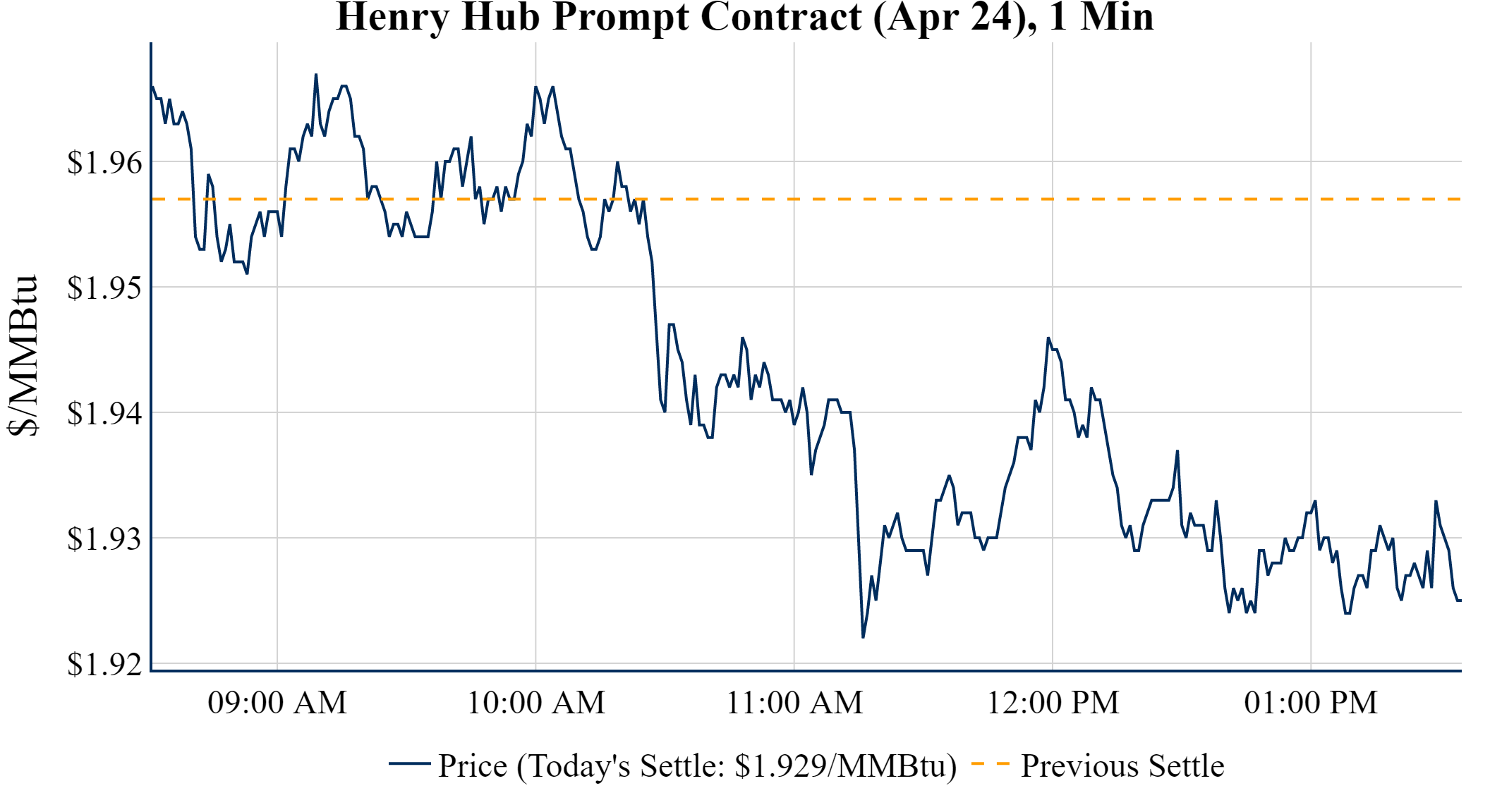 Prompt-Month Henry Hub (Apr 24) was down $-0.028 on the day, to settle at $1.929