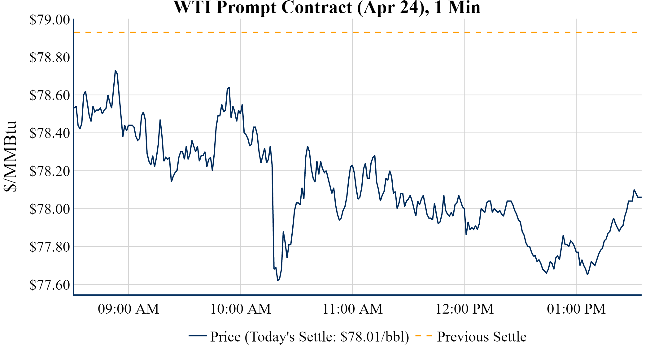 Prompt-Month WTI (Apr 24) was down $-0.92 on the day, to settle at $78.01