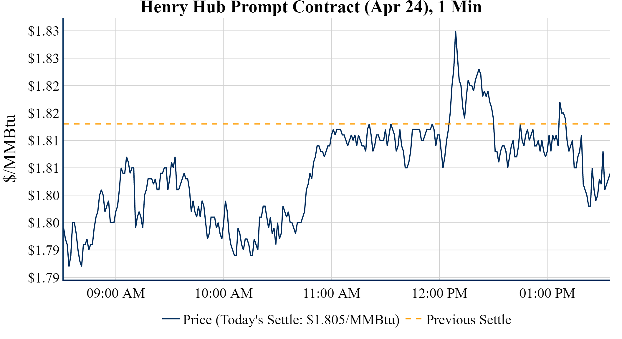 Prompt-Month Henry Hub (Apr 24) was down $-0.013 on the day, to settle at $1.805