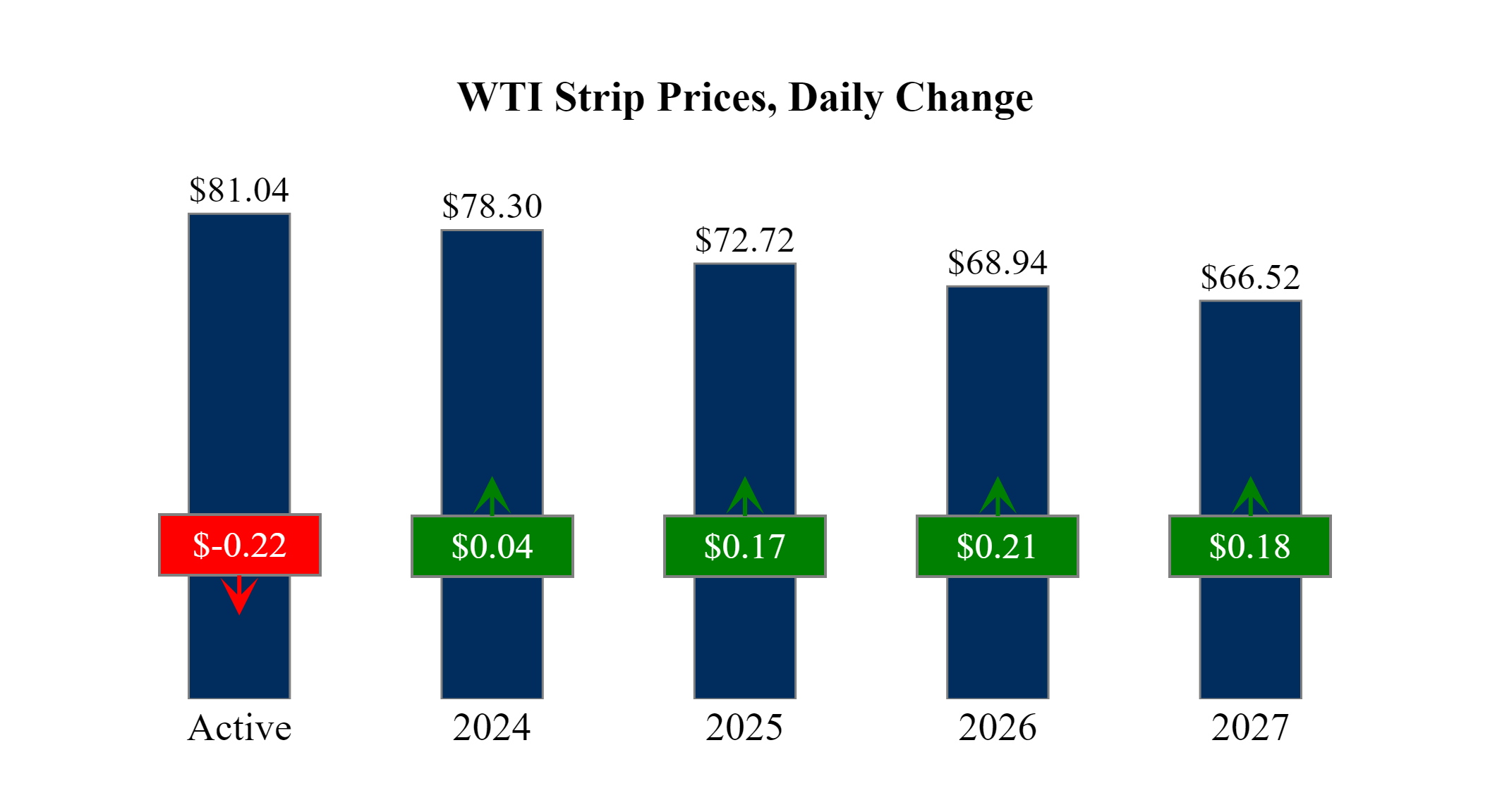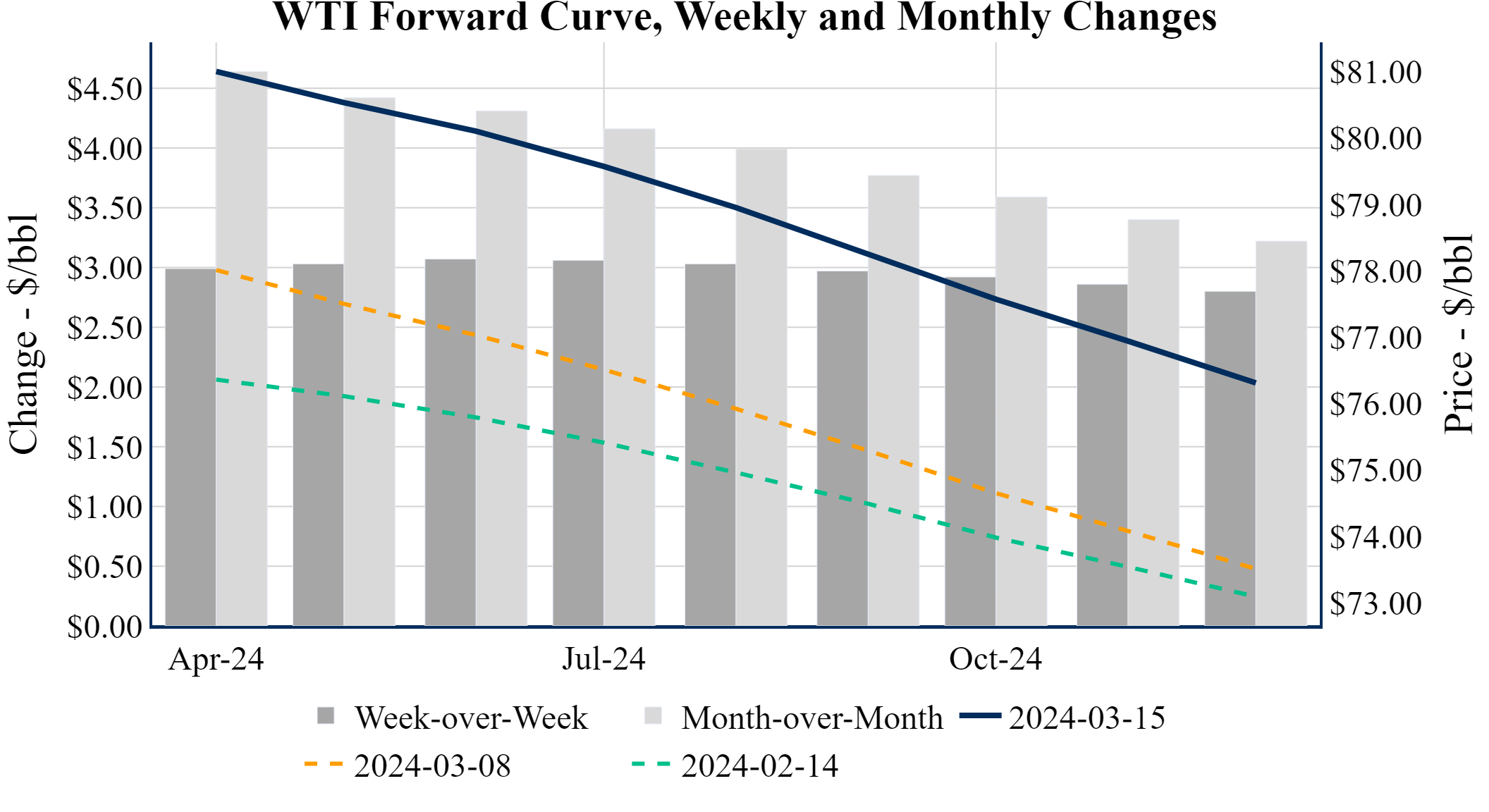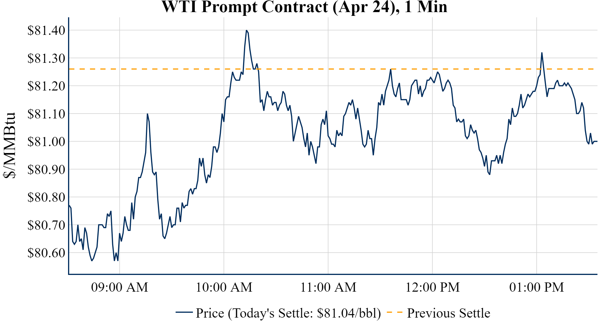 Prompt-Month WTI (Apr 24) was down $-0.22 on the day, to settle at $81.04