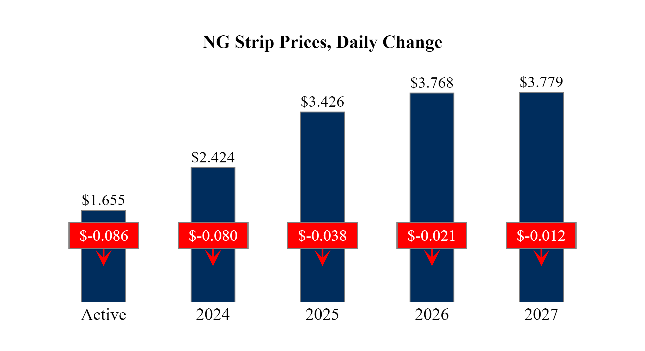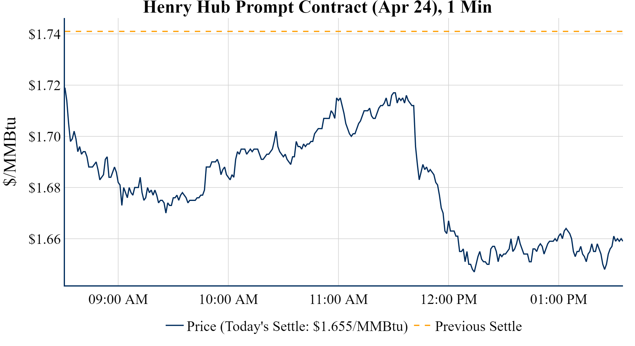 Prompt-Month Henry Hub (Apr 24) was down $-0.086 on the day, to settle at $1.655