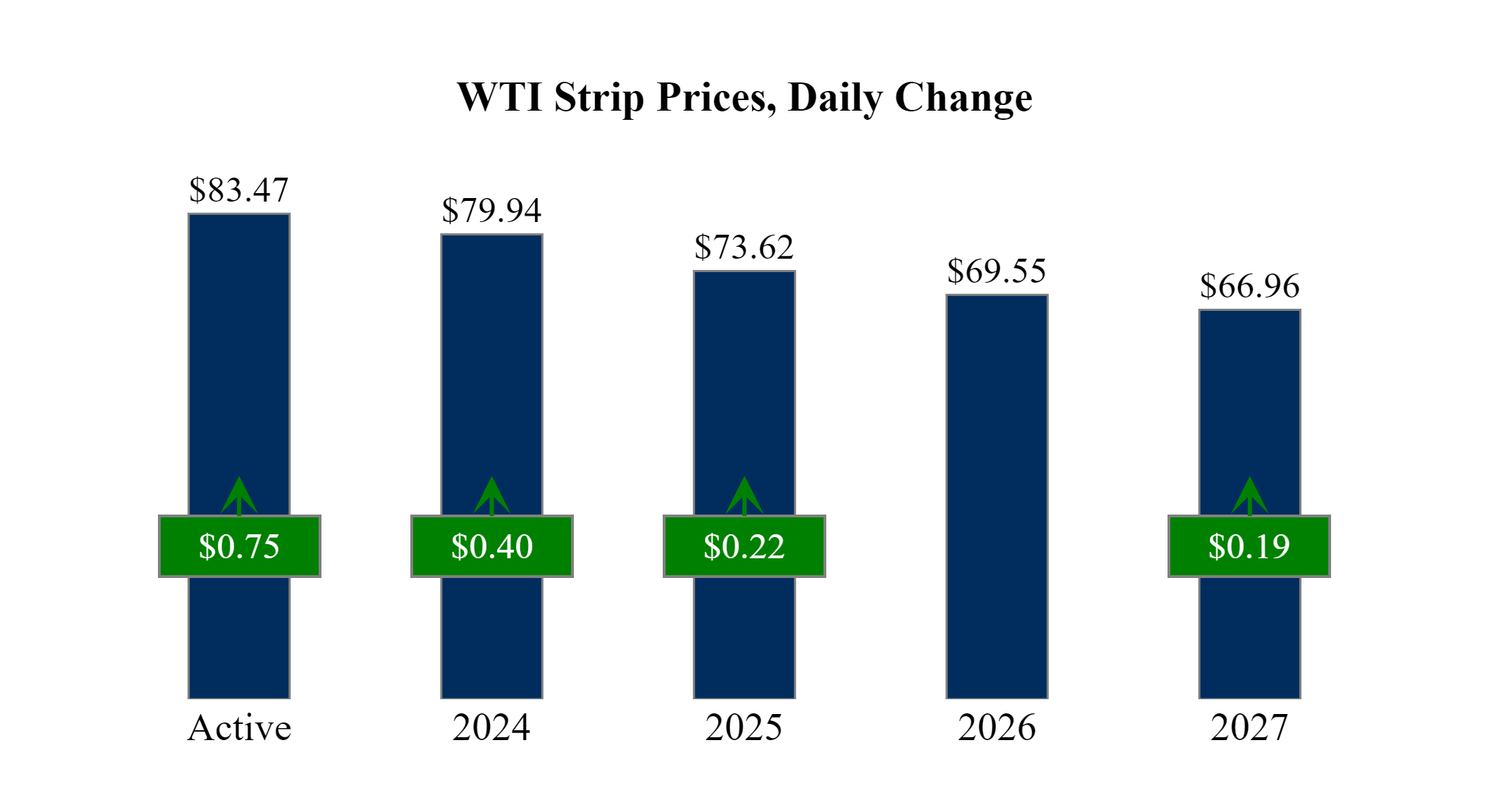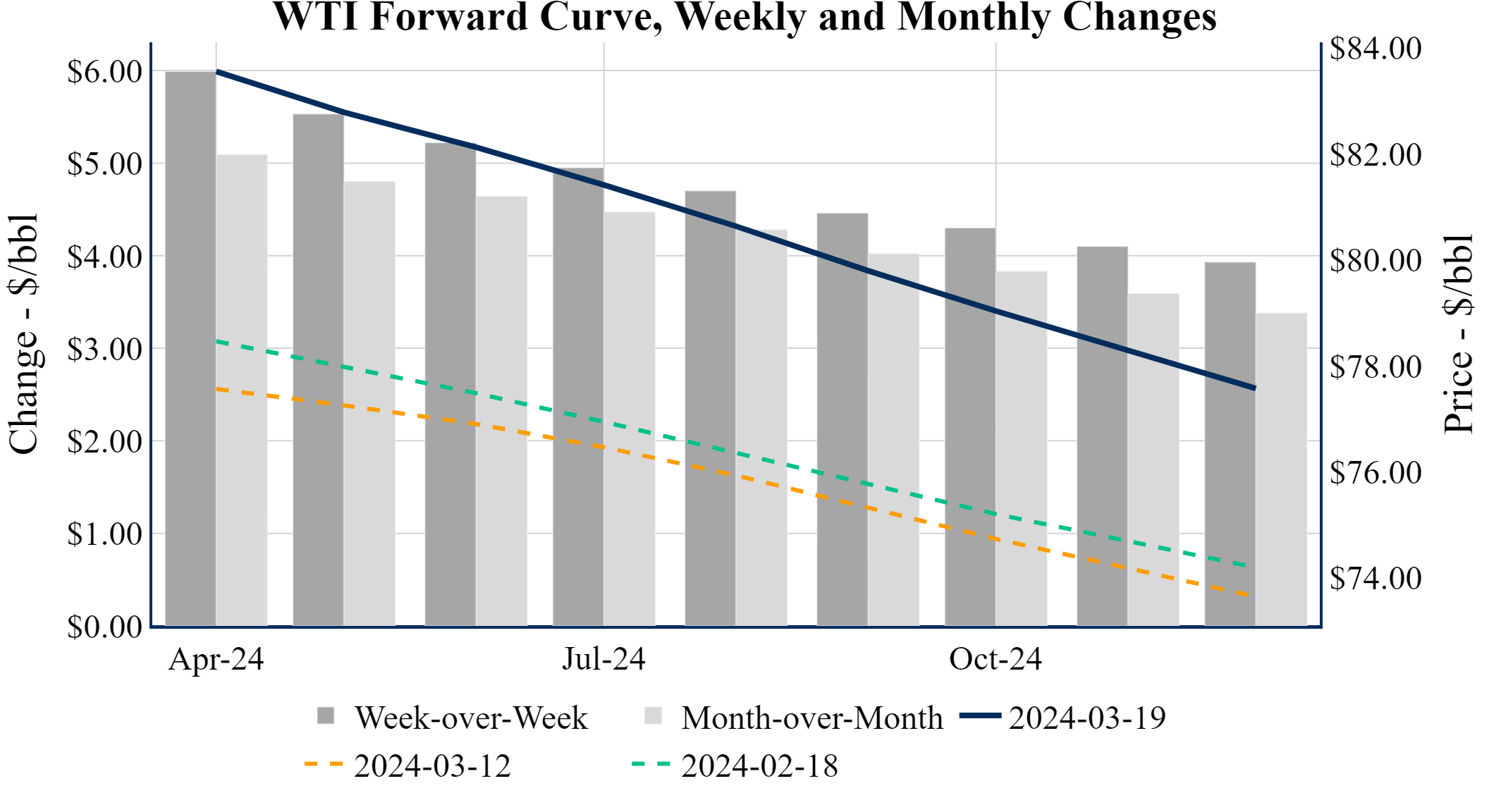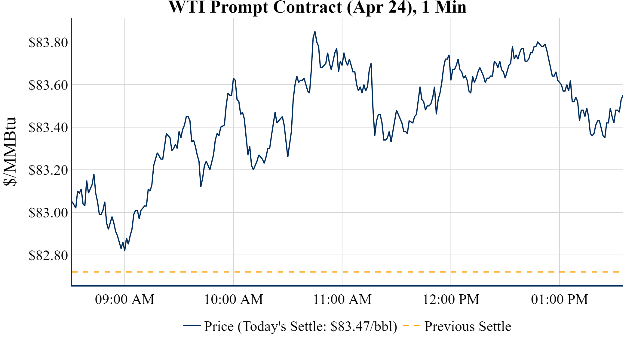 Prompt-Month WTI (Apr 24) was up $0.75 on the day, to settle at $83.47