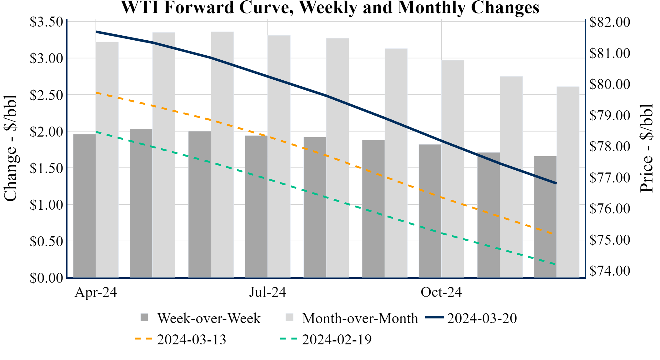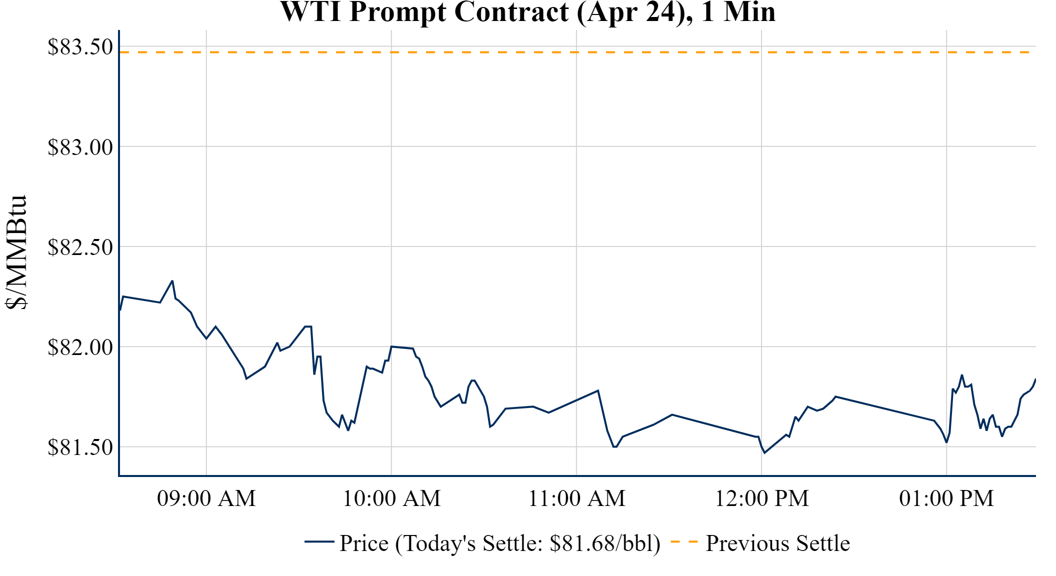 Prompt-Month WTI (Apr 24) was down $-1.79 on the day, to settle at $81.68