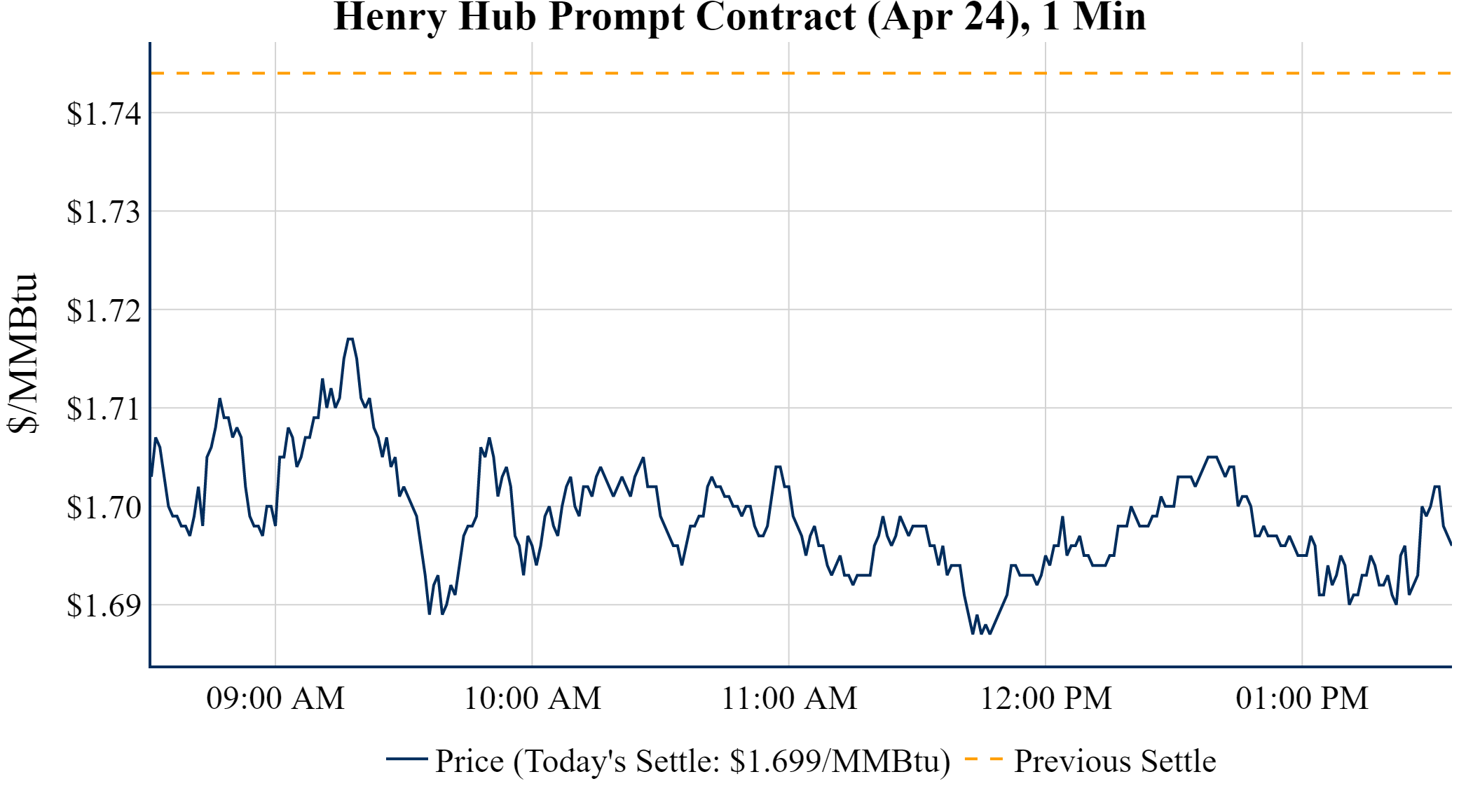 Prompt-Month Henry Hub (Apr 24) was down $-0.045 on the day, to settle at $1.699