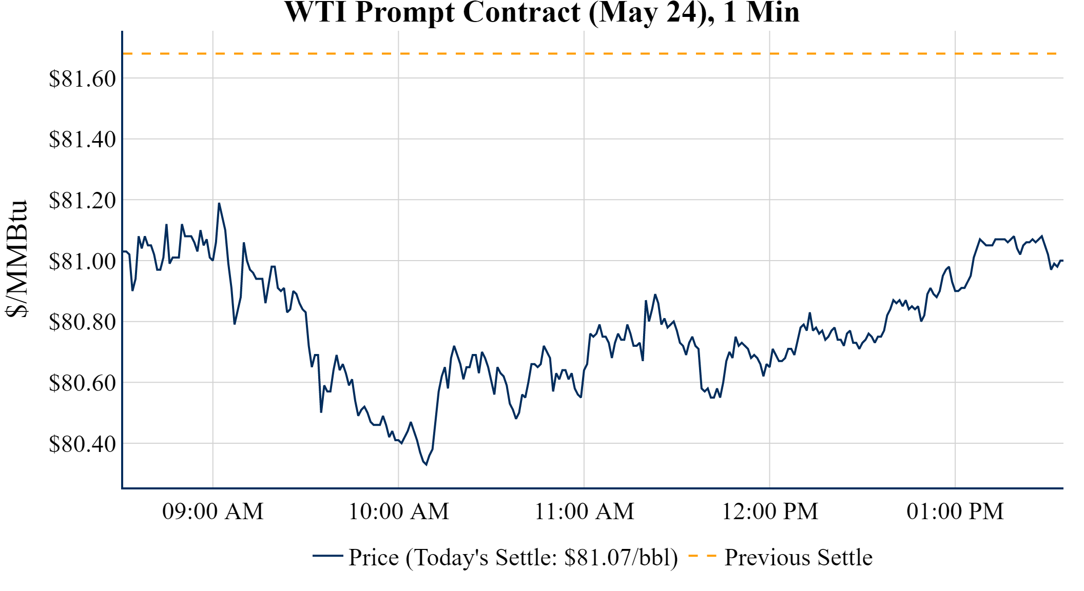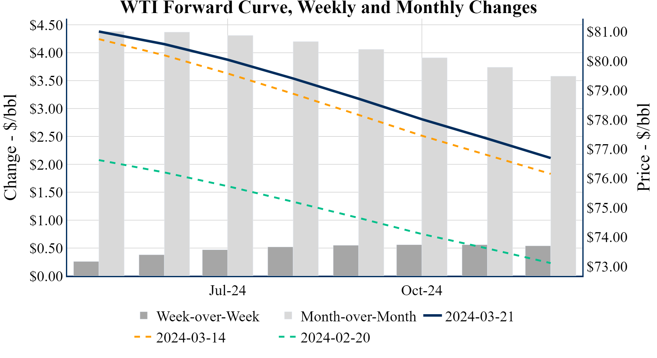 Prompt-Month WTI (May 24) was down $-0.20 on the day, to settle at $81.07