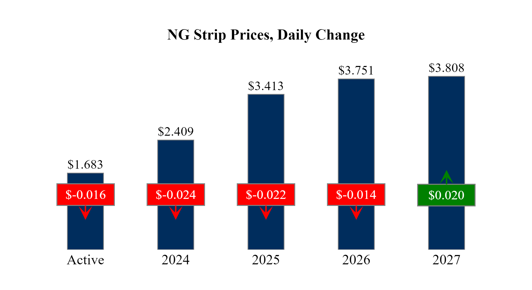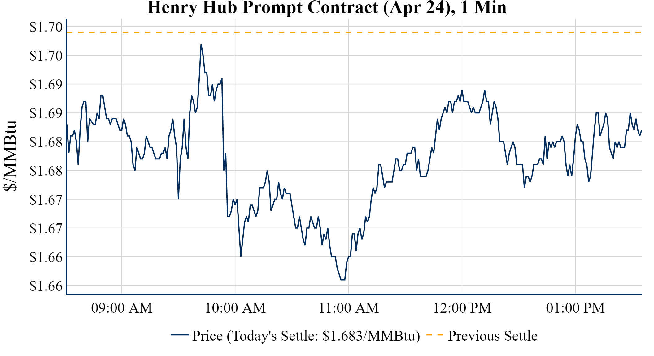 Prompt-Month Henry Hub (Apr 24) was down $-0.016 on the day, to settle at $1.683