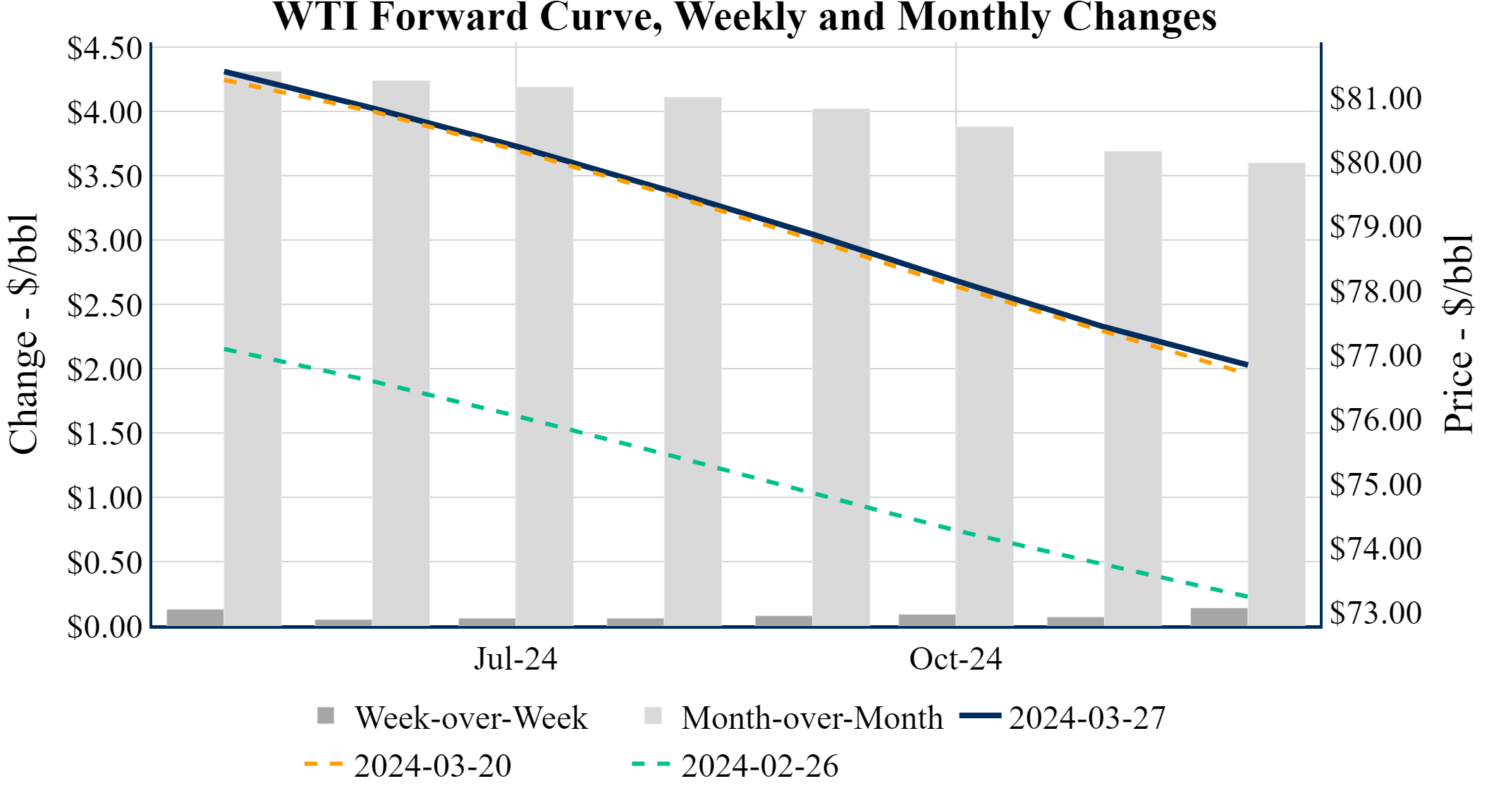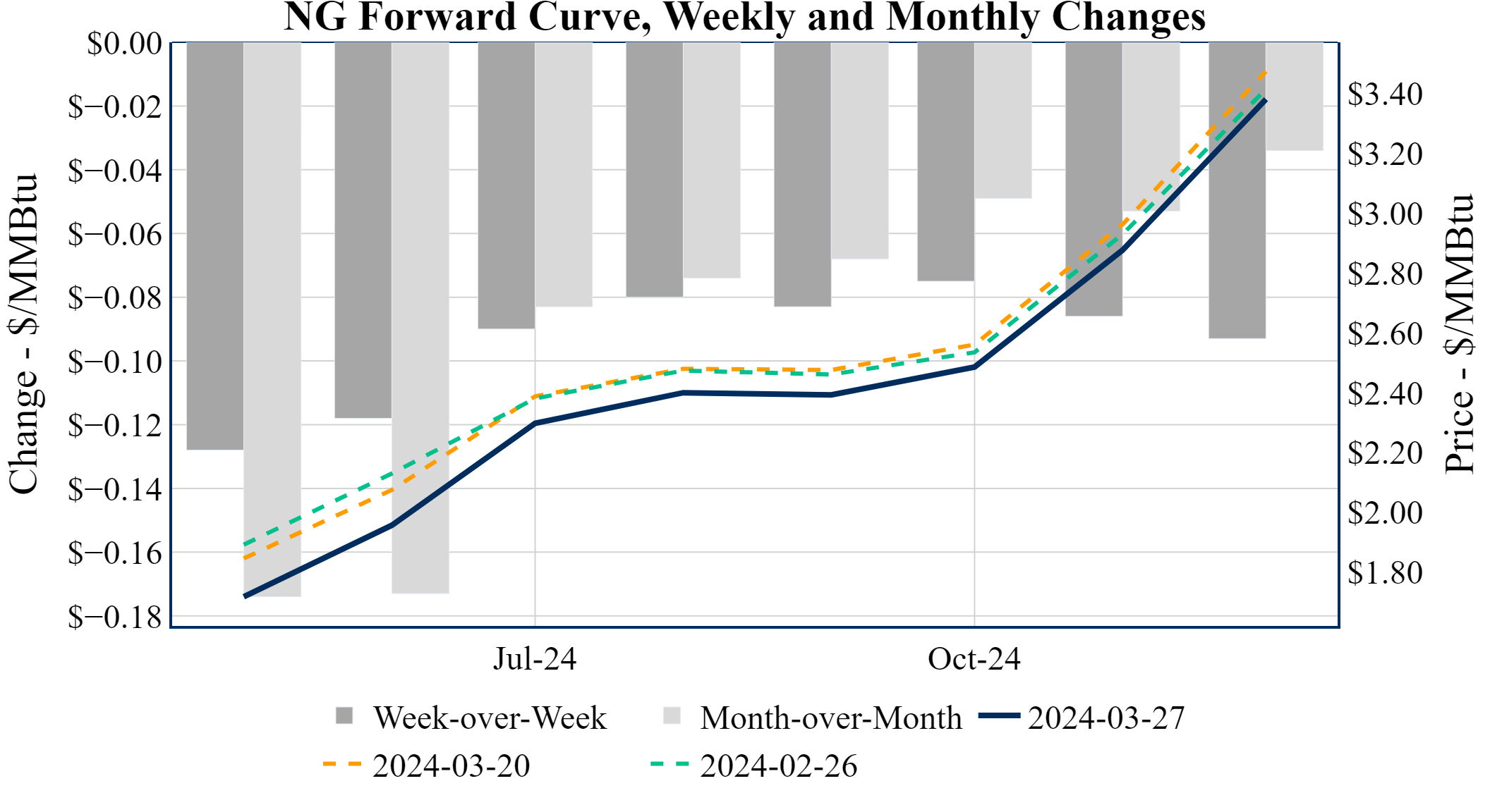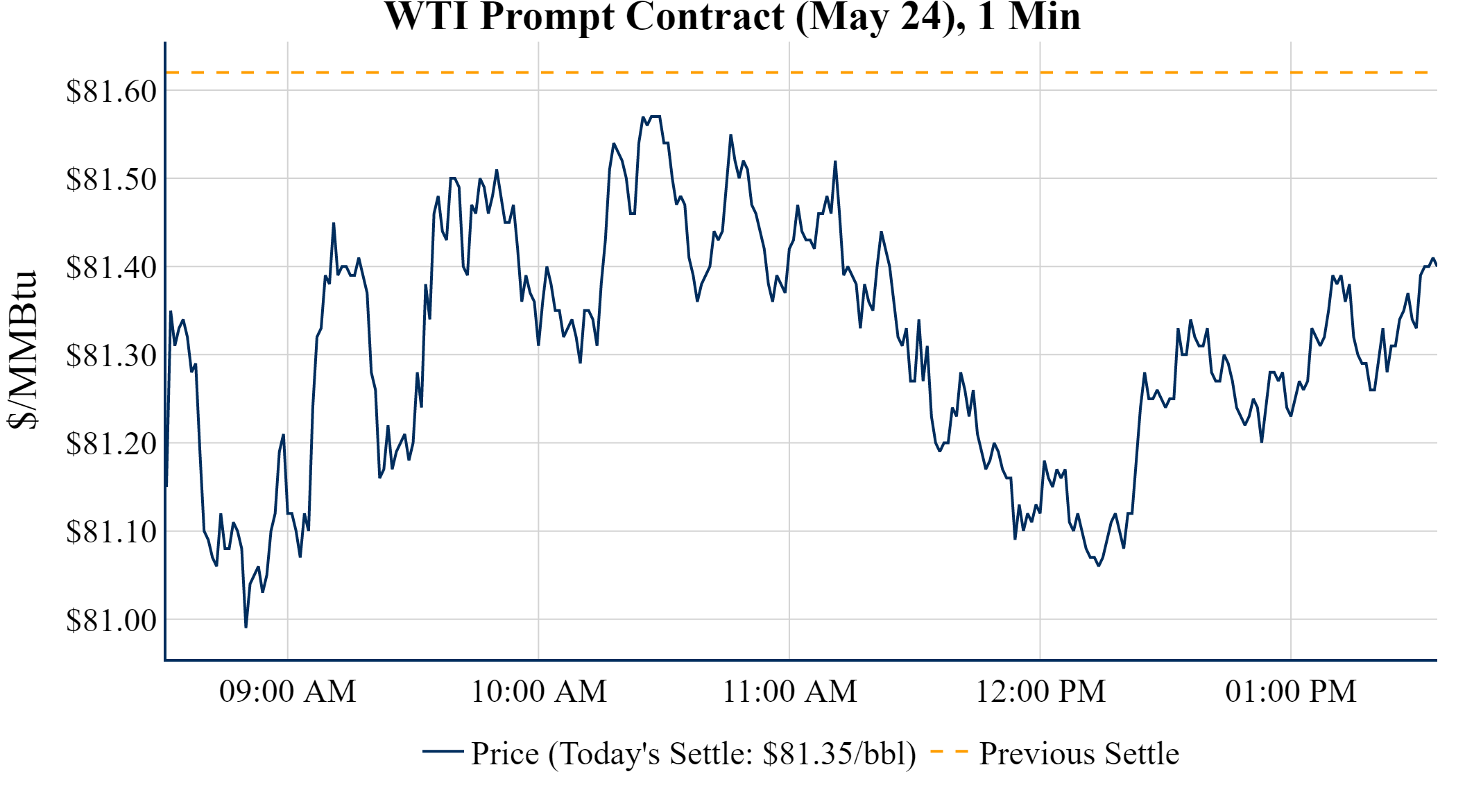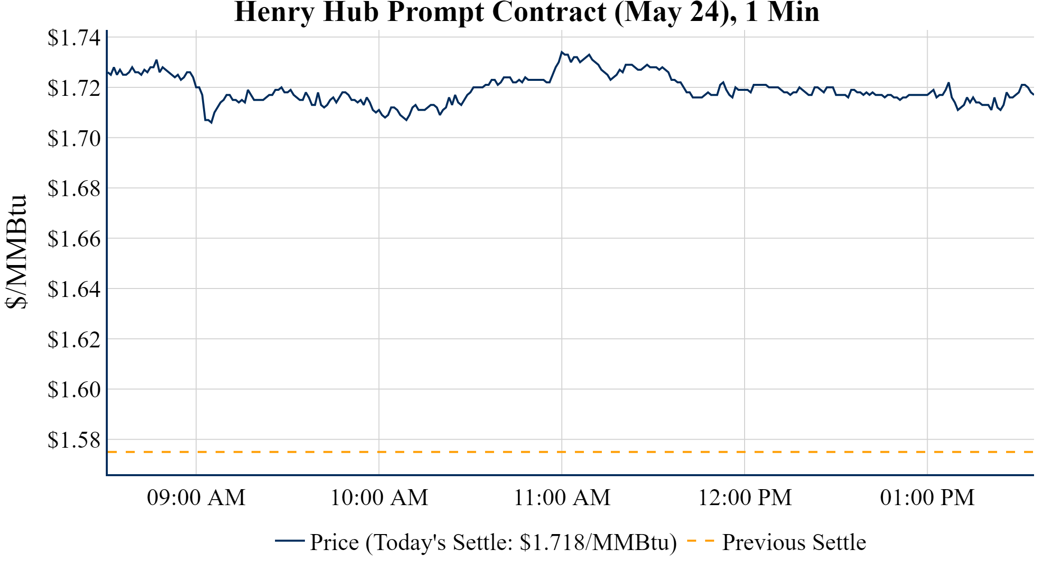 Prompt-Month Henry Hub (May 24) was down $-0.070 on the day, to settle at $1.718Prompt-Month WTI (May 24) was down $-0.27 on the day, to settle at $81.35