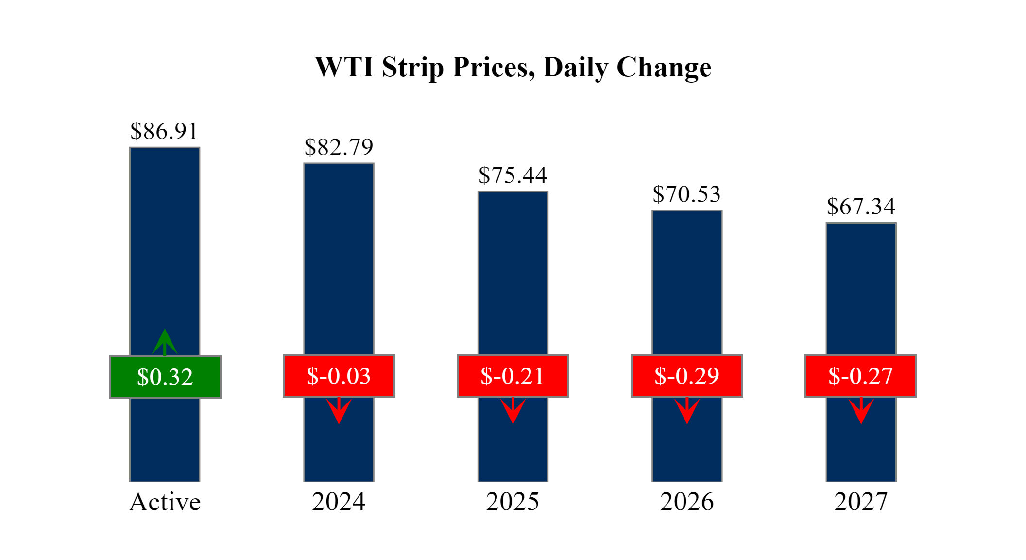 Prompt-Month Henry Hub (May 24) was up $0.011 on the day, to settle at $1.785Prompt-Month WTI (May 24) was up $0.32 on the day, to settle at $86.91
