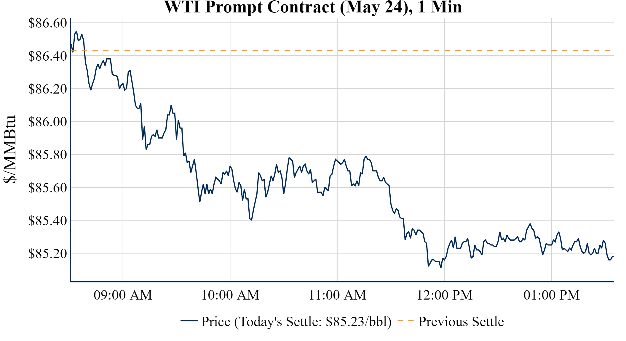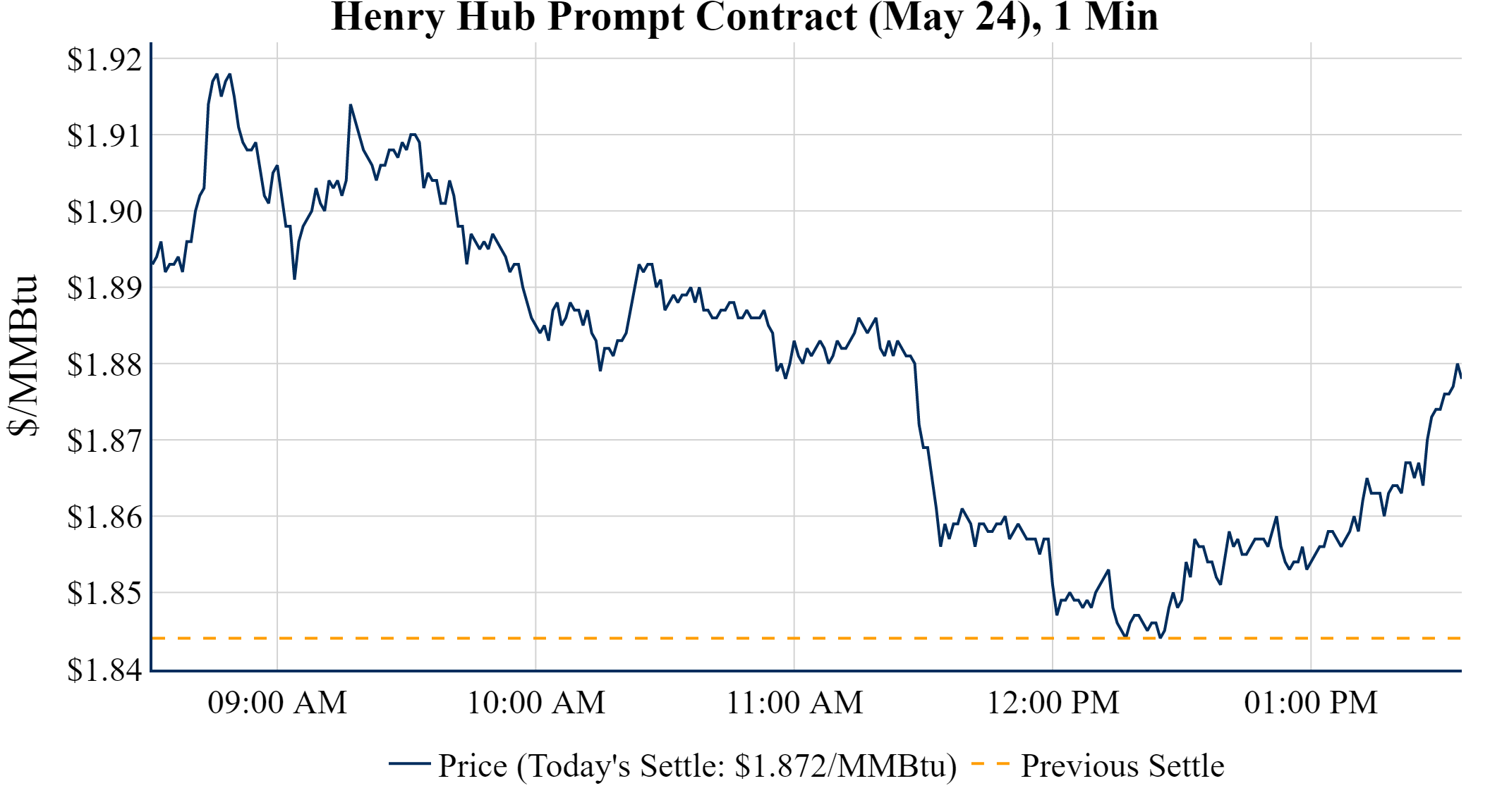 Prompt-Month Henry Hub (May 24) was up $0.028 on the day, to settle at $1.872Prompt-Month WTI (May 24) was down $-1.20 on the day, to settle at $85.23