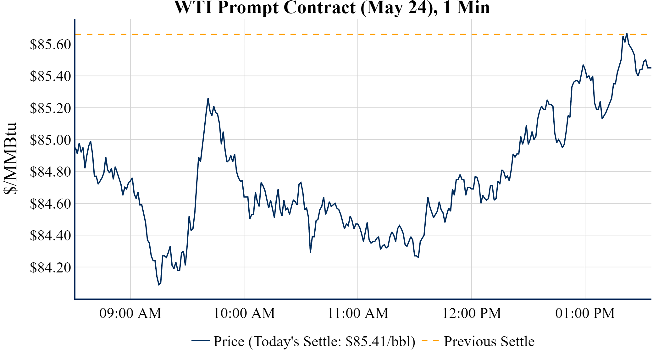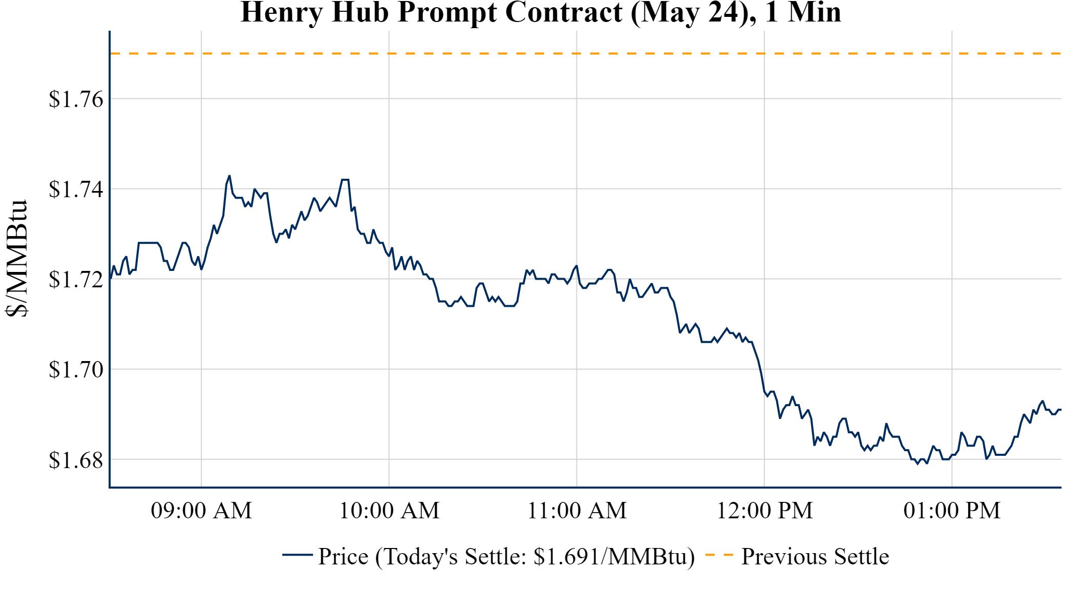Prompt-Month Henry Hub (May 24) was down $-0.079 on the day, to settle at $1.691Prompt-Month WTI (May 24) was down $-0.25 on the day, to settle at $85.41