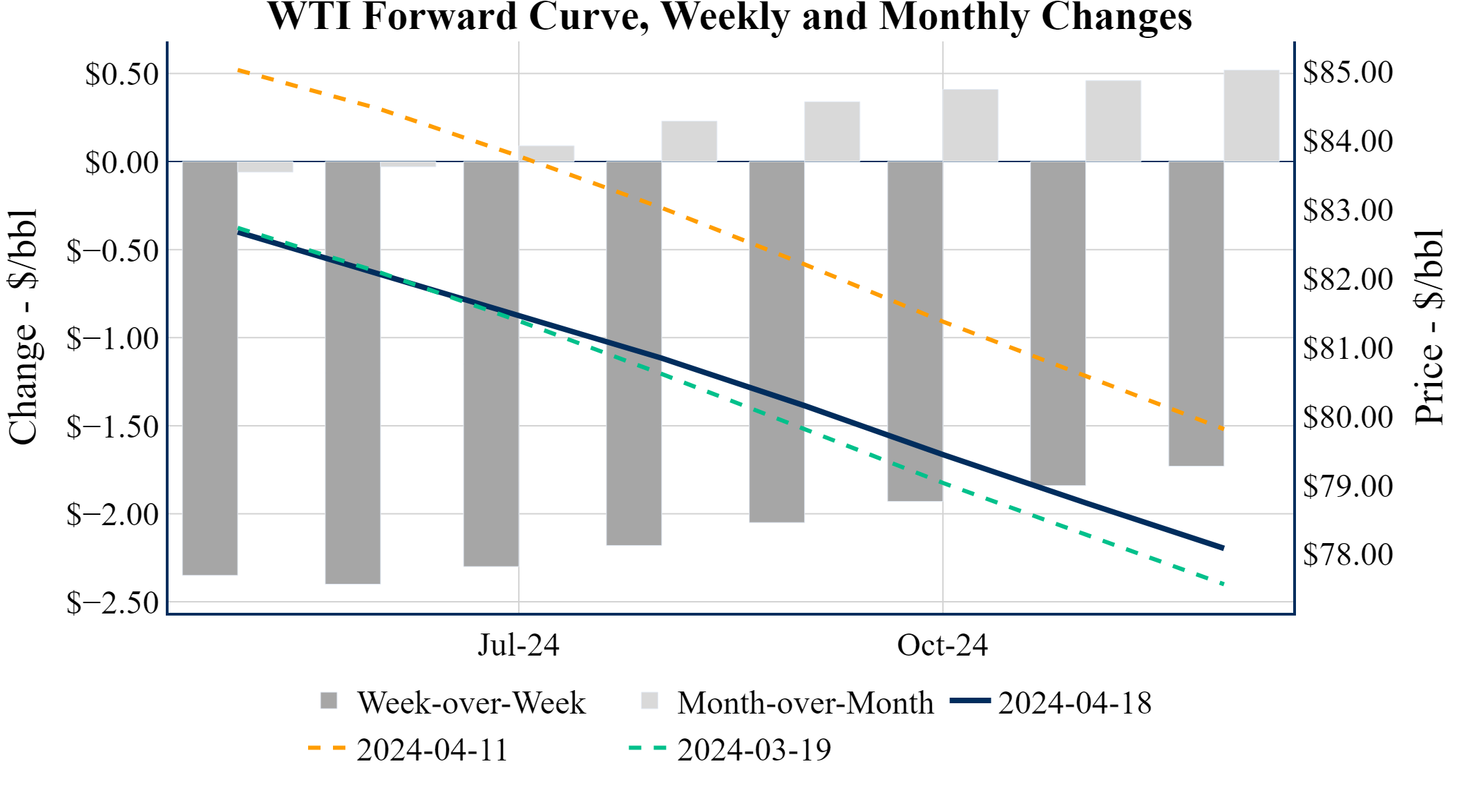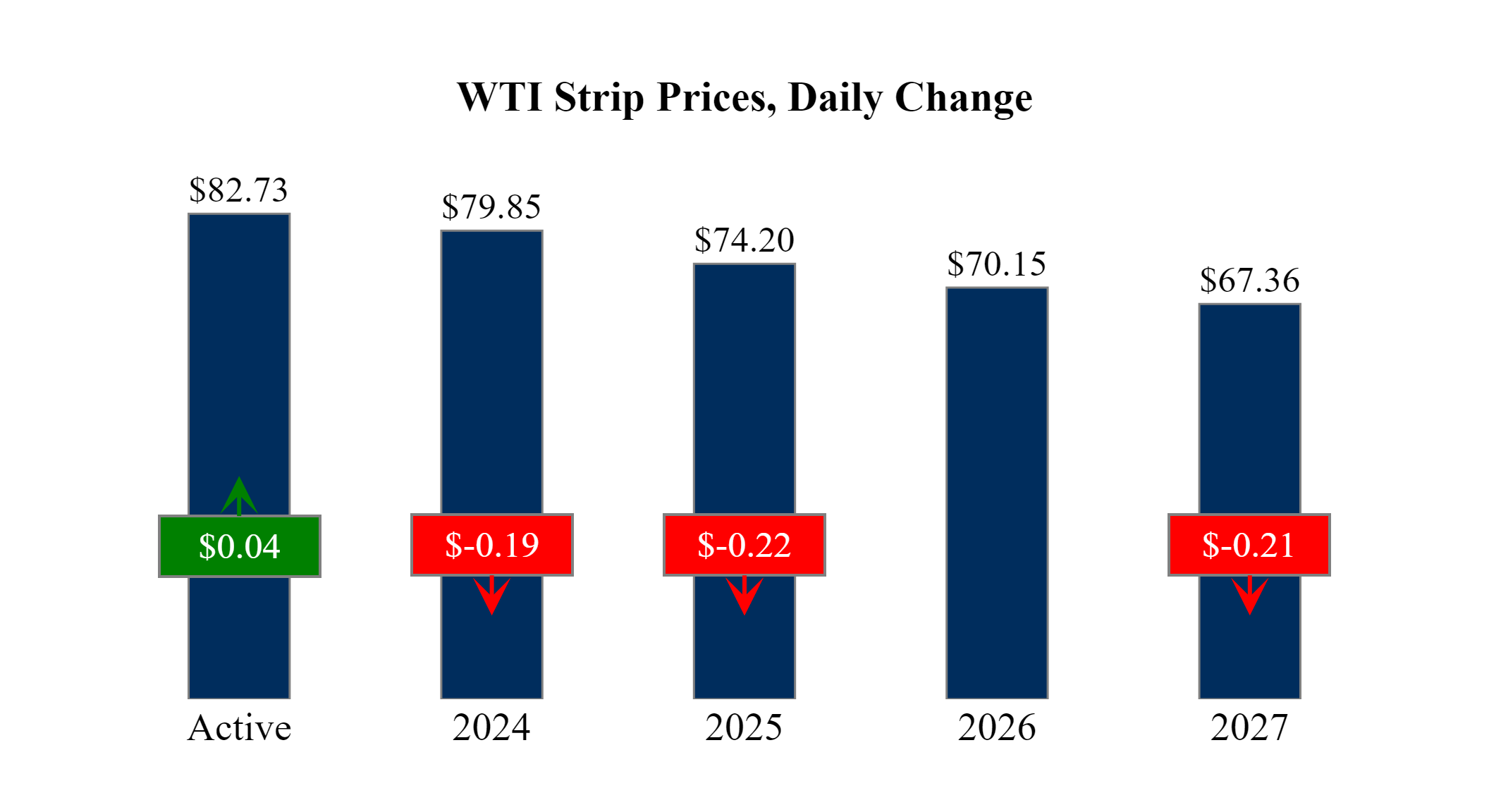 Prompt-Month WTI (May 24) was up $0.04 on the day, to settle at $82.73